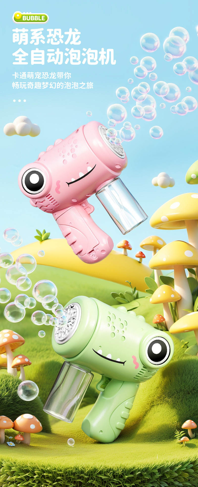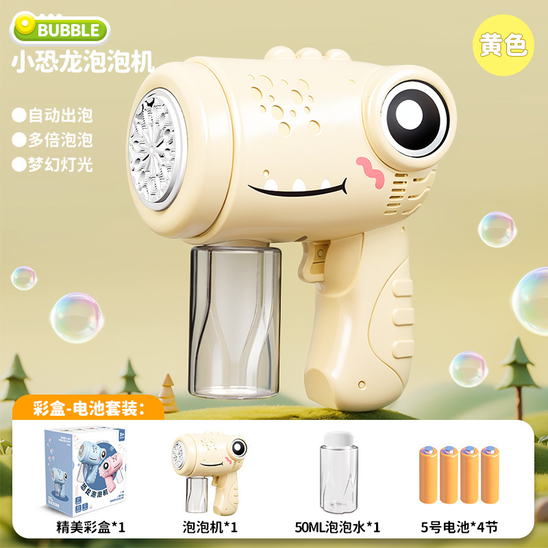 새로운 인터넷 인기 공룡 자동 버블건 어린이용 전동 버블머신 조명 버블블로워 크로스보더 장난감 도매스토어 가기