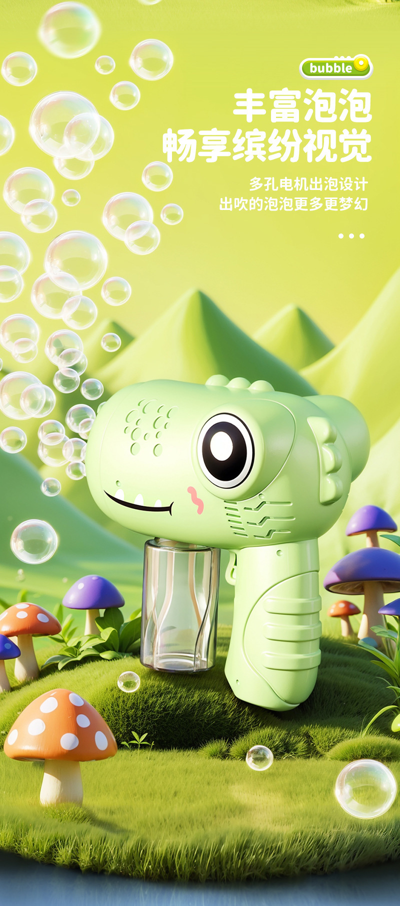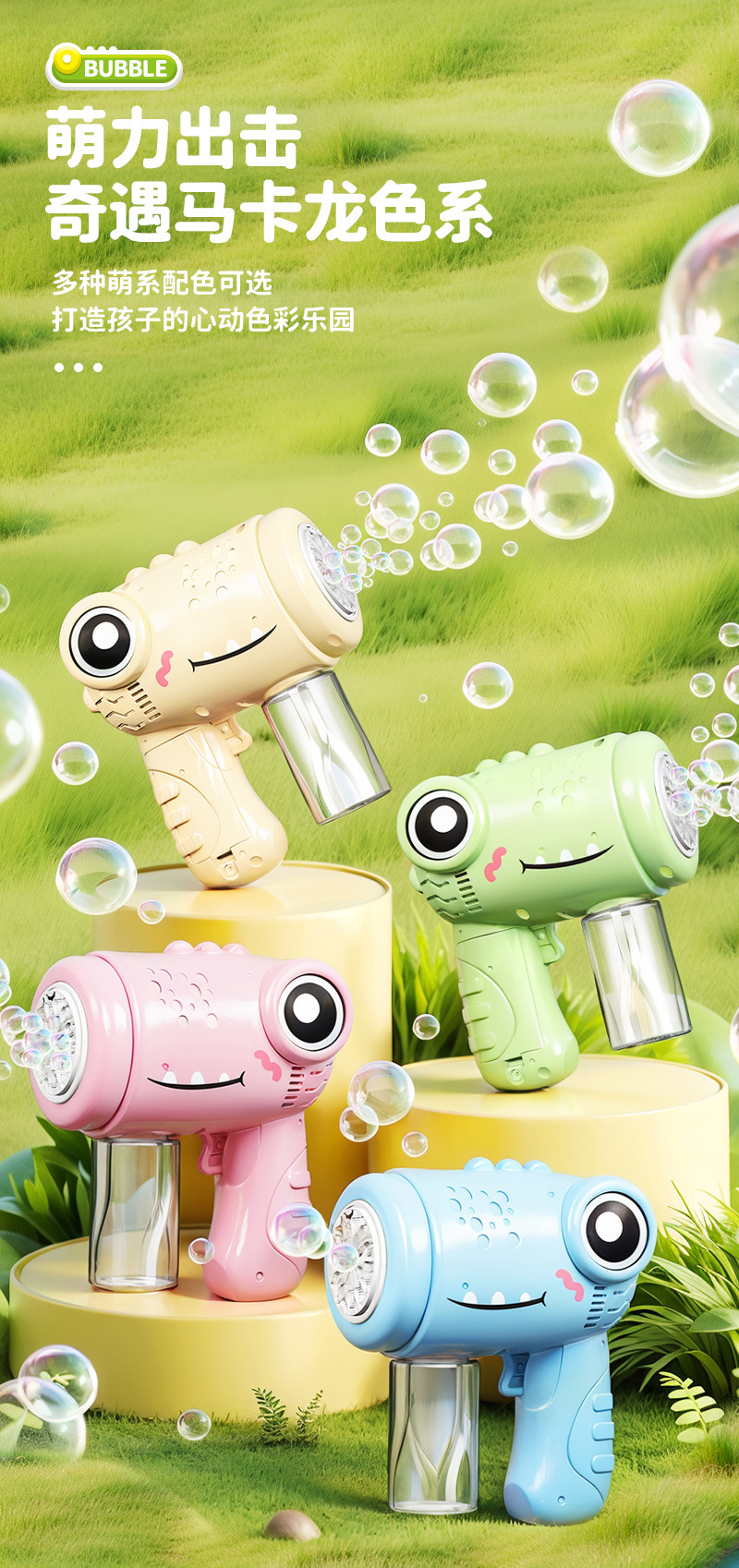 새로운 인터넷 인기 공룡 자동 버블건 어린이용 전동 버블머신 조명 버블블로워 크로스보더 장난감 도매