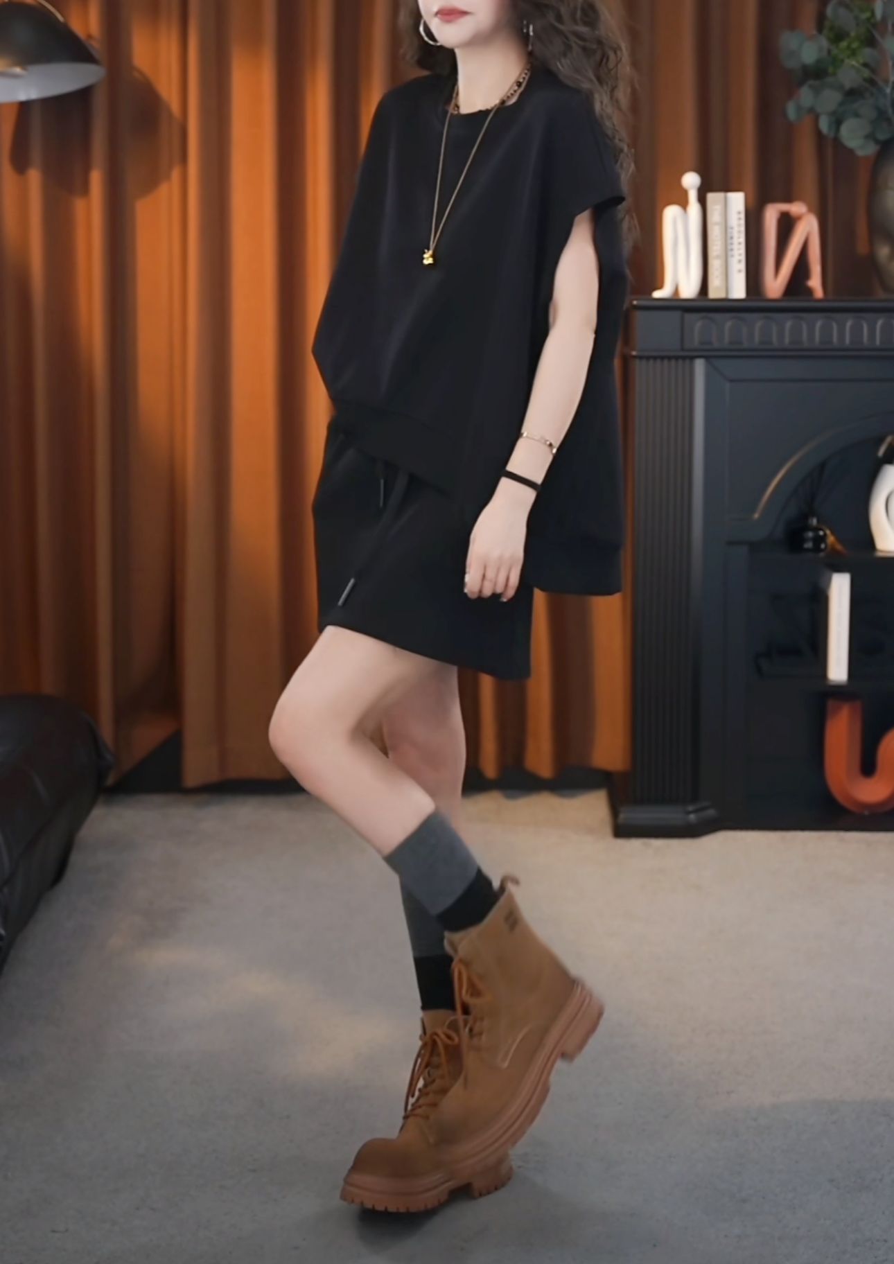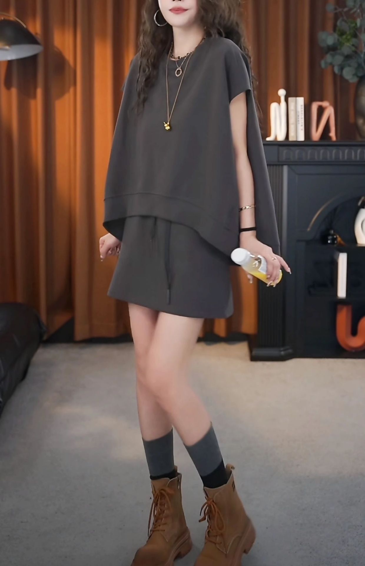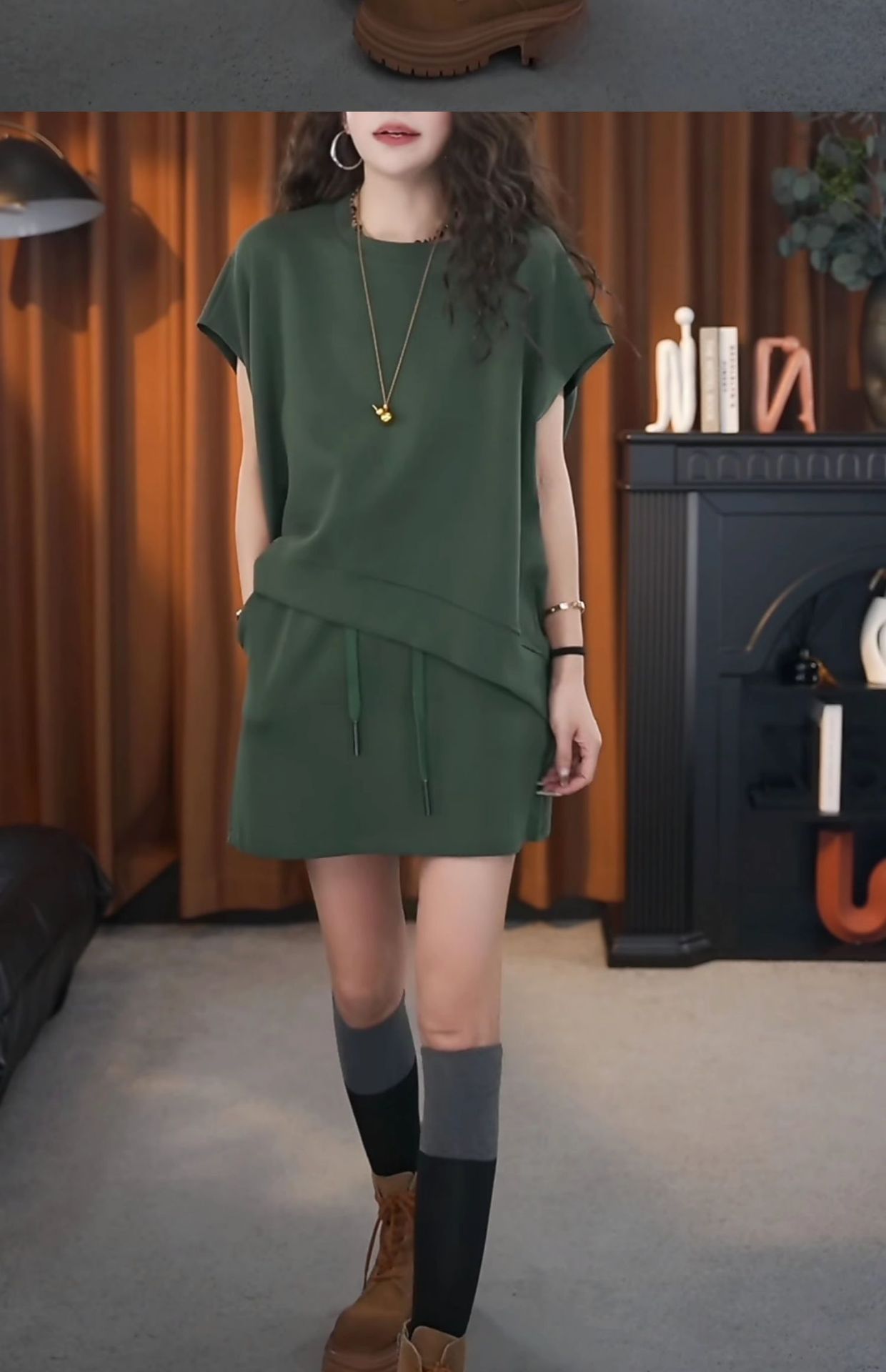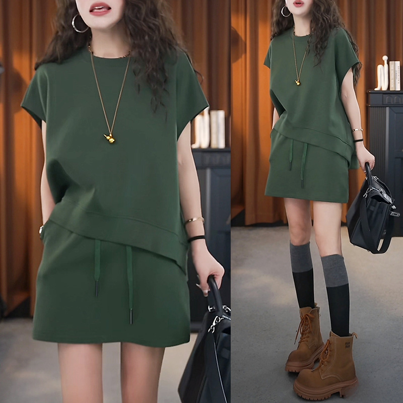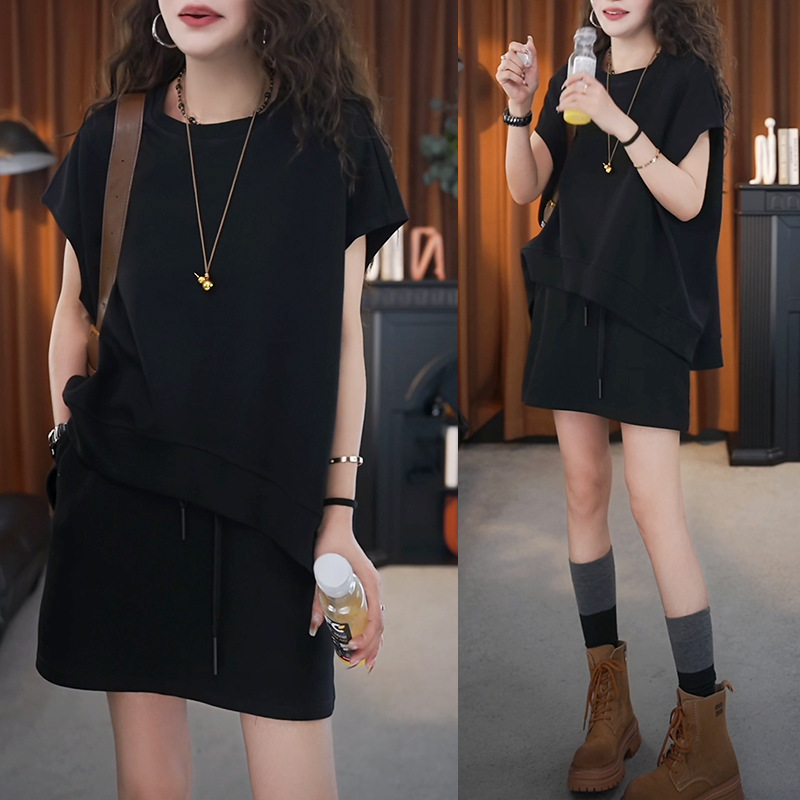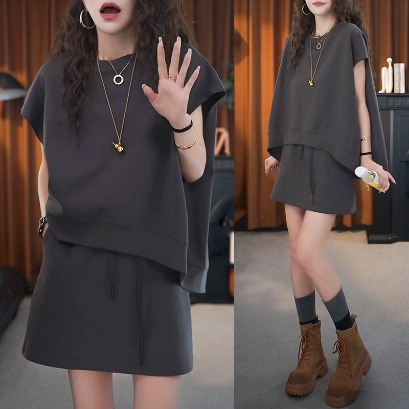 일본과 한국 패션 캐주얼 루즈한 대형 투피스 여성 여름 신작 스포츠 하이웨이스트 노출 방지 A라인 스커트 슈트스토어 가기