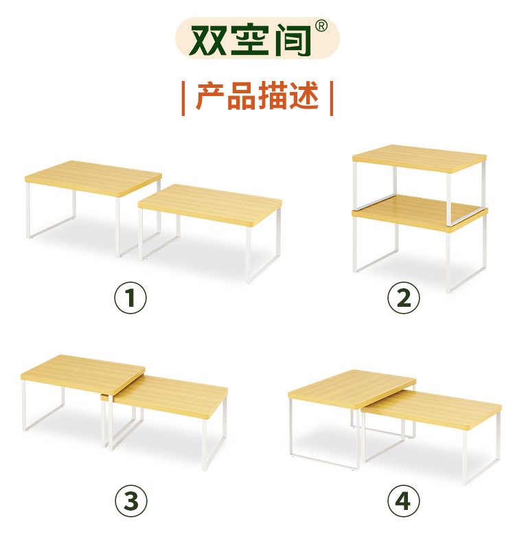家用厨房台面分层架 桌面杂物整理双层调料收纳储物架 橱柜置物架