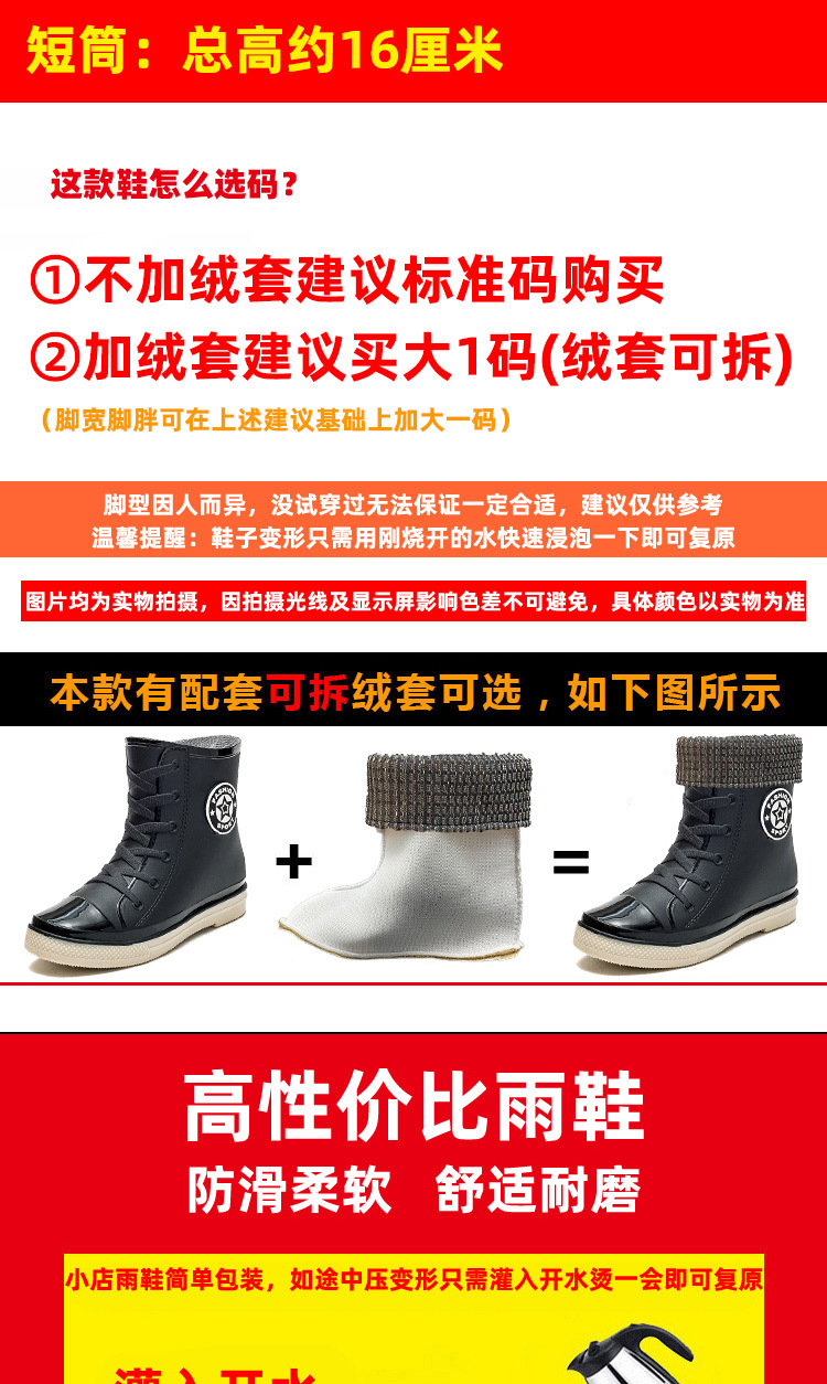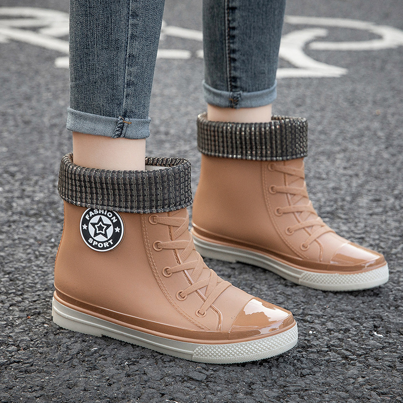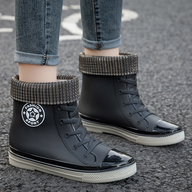 새로운 미끄럼 방지 짧은 튜브 방수 신발, 장화, 패셔너블한 성인 학생 한국식 여성 여름 고무 신발, 덧신, 워터 부츠스토어 가기