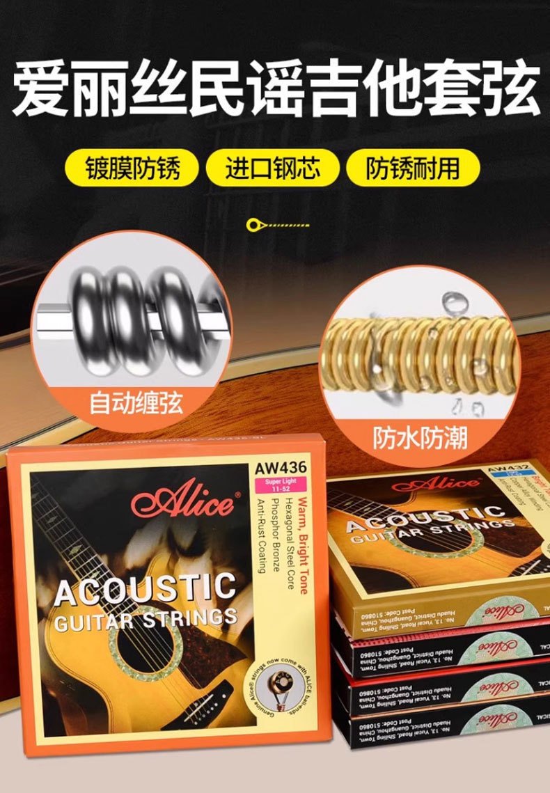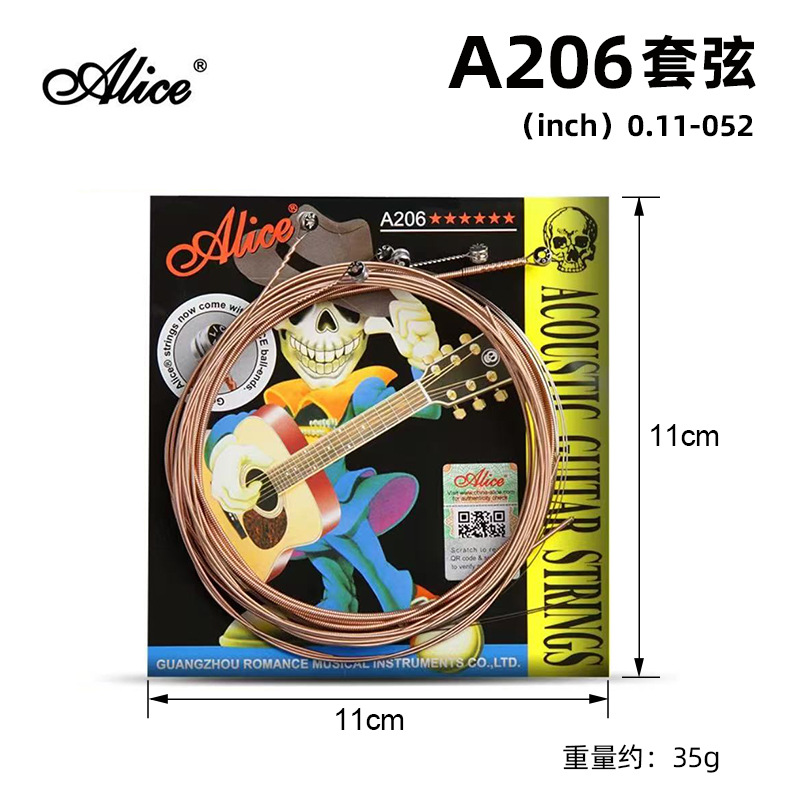 앨리스 AW436 스트링 A206 초보자 기타 스트링 코팅 정품 포크 어쿠스틱 기타 풀 세트 6개 앨리스