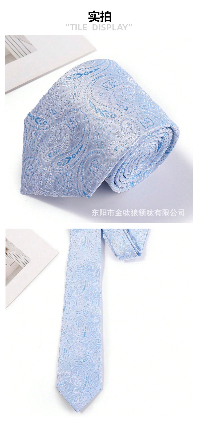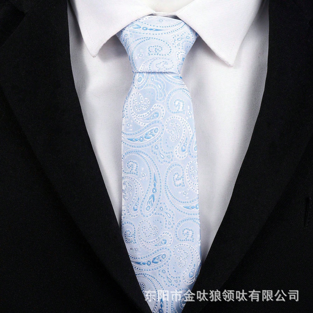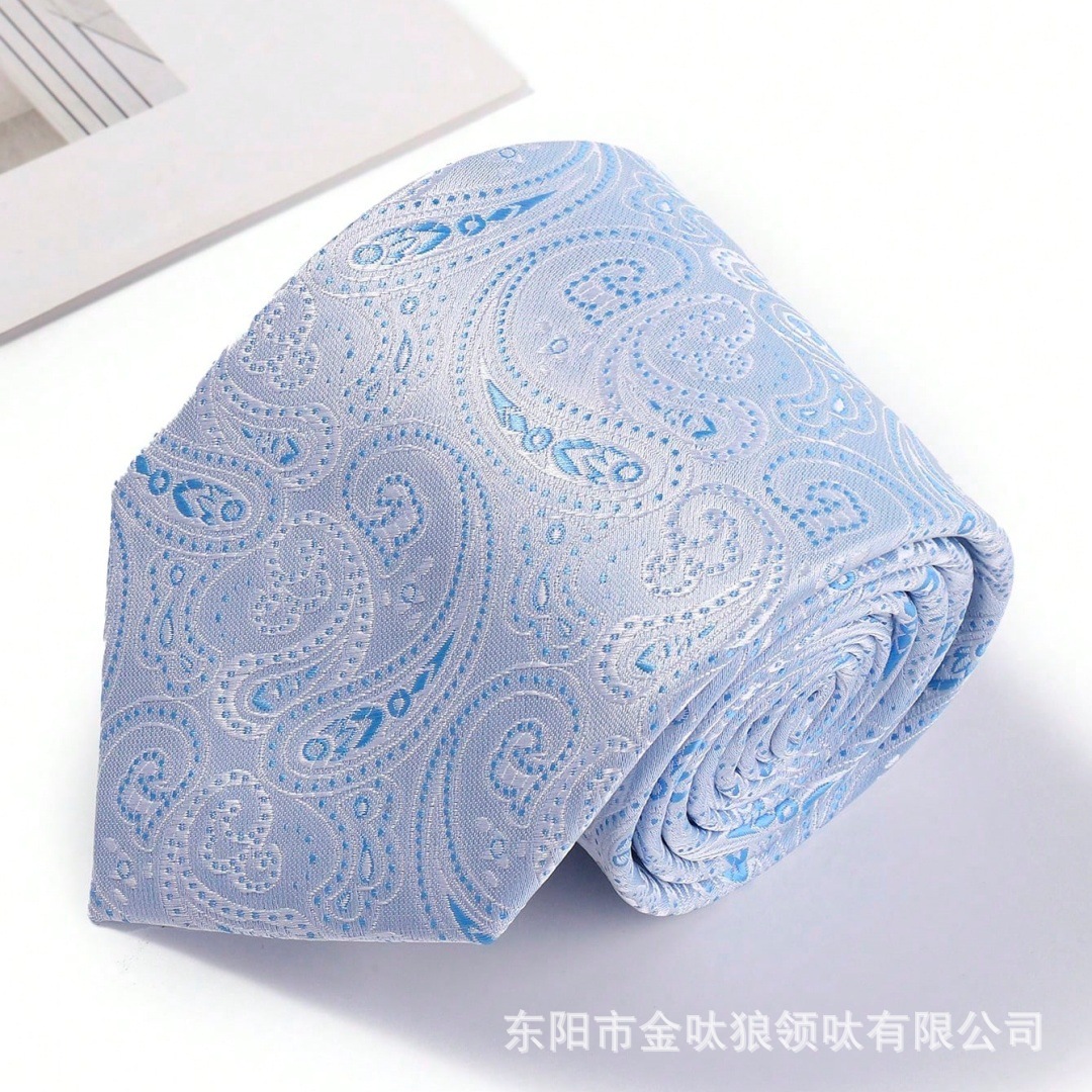 남성용 고급 하늘색 캐슈 패턴 정장 캐주얼 넥타이 8cm 공장 직모 정장스토어 가기