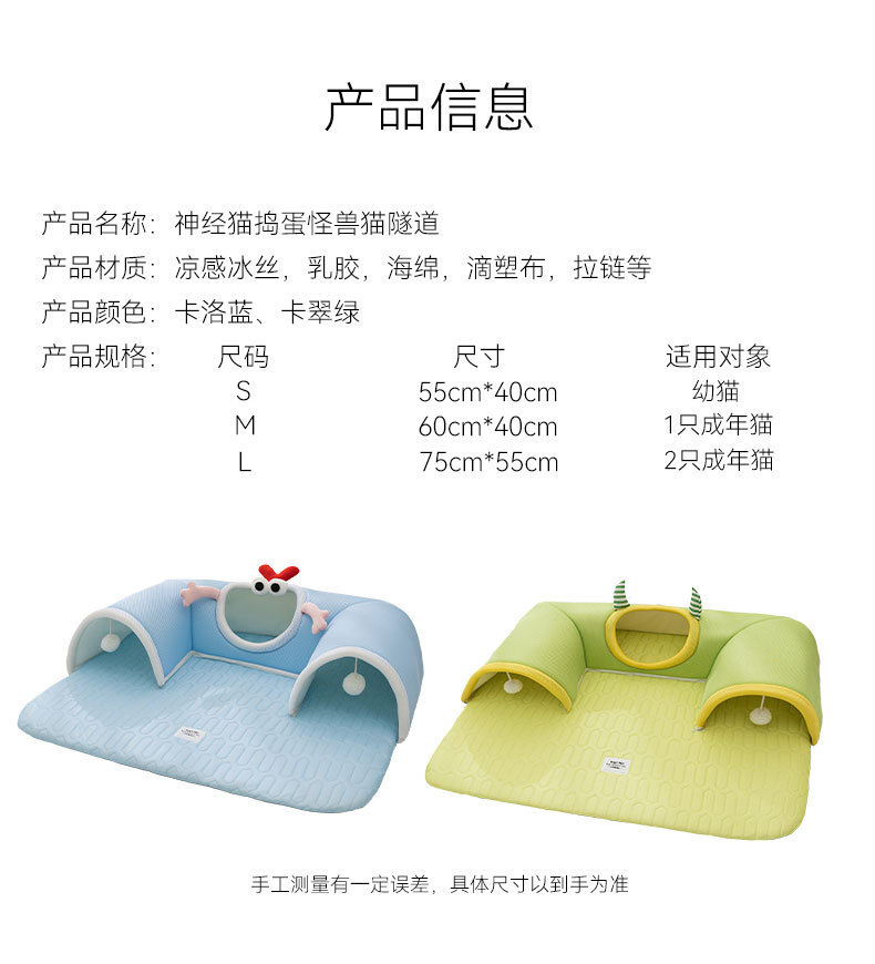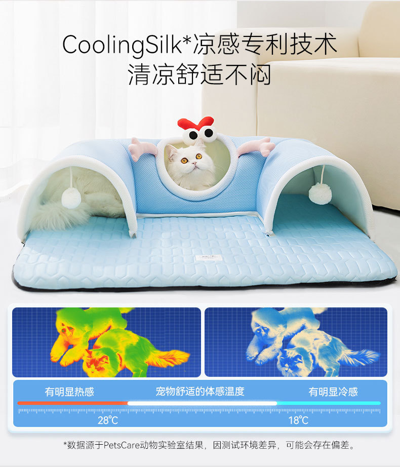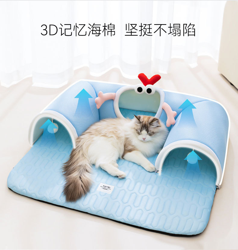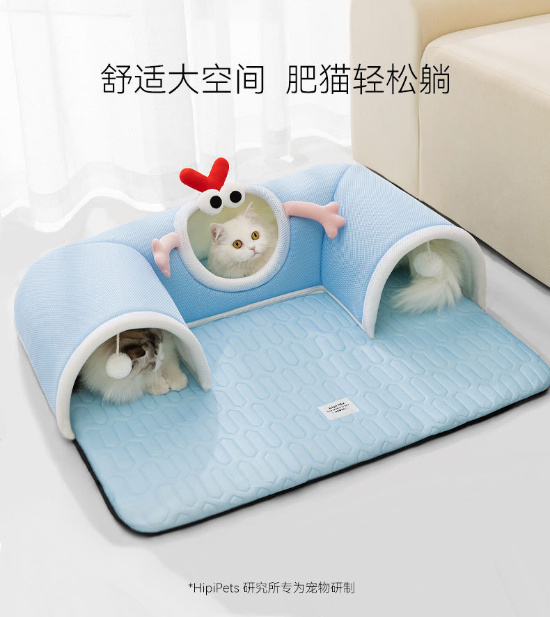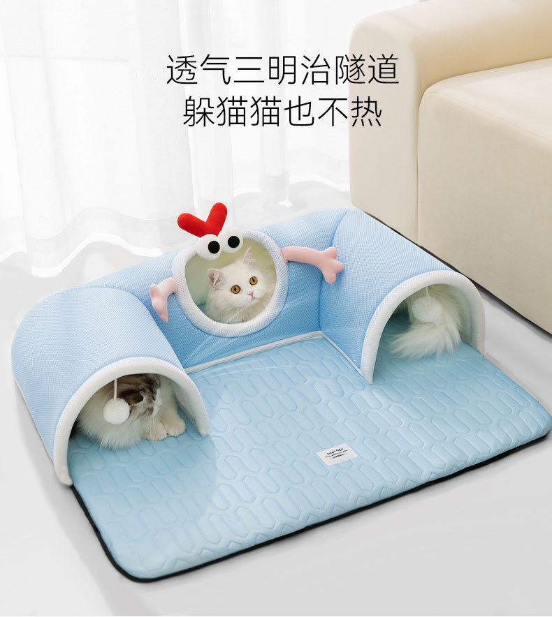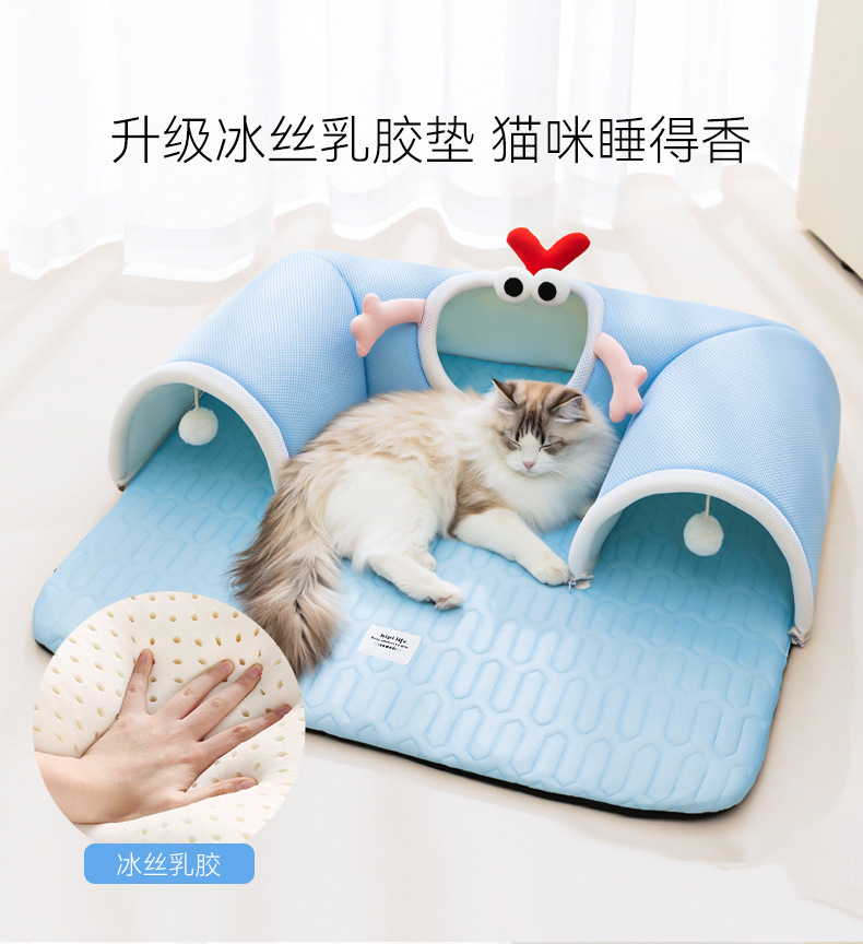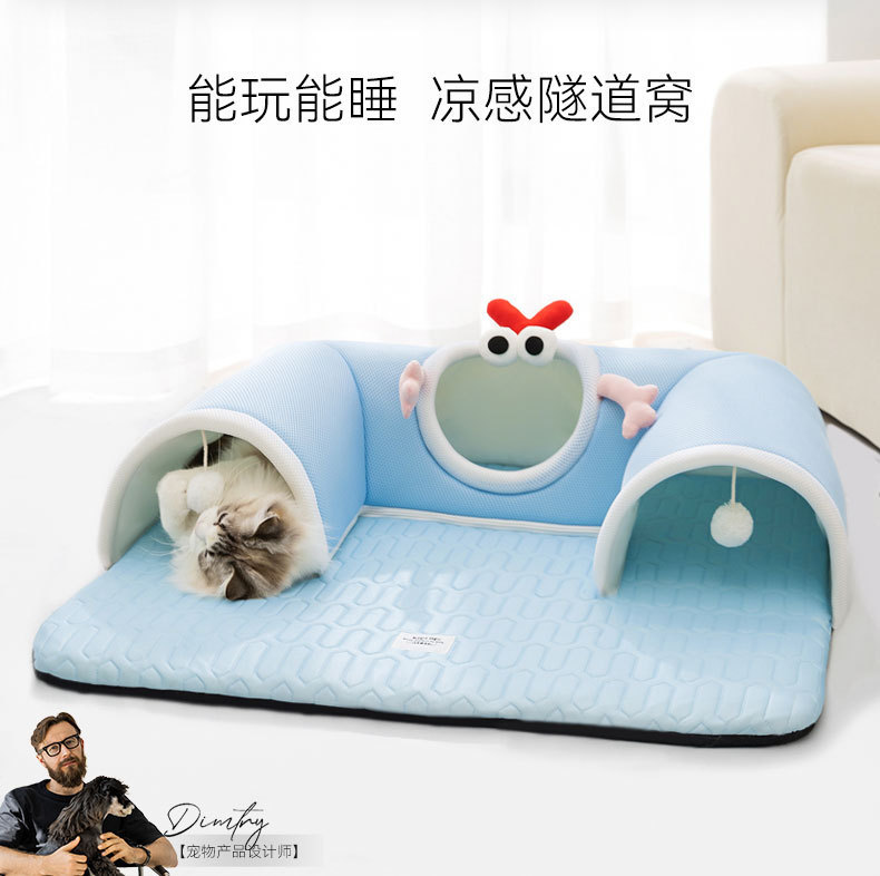 봄과 여름용 고양이 숨바꼭질 놀이와 수면을 위한 일체형 고양이 터널, 여름철 시원한 고양이 집, 라텍스 소재의 애완동물 고양이 집