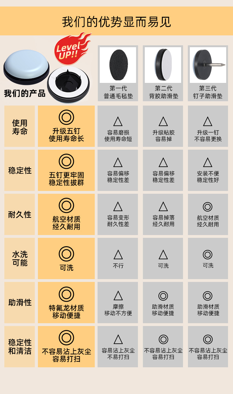 의자 발 패드, 테프론 미끄럼 방지 패드, 테이블 및 의자 발 패드, 카펫 미끄럼 방지 패드, 내마모성 목재 가구 보호 바닥
