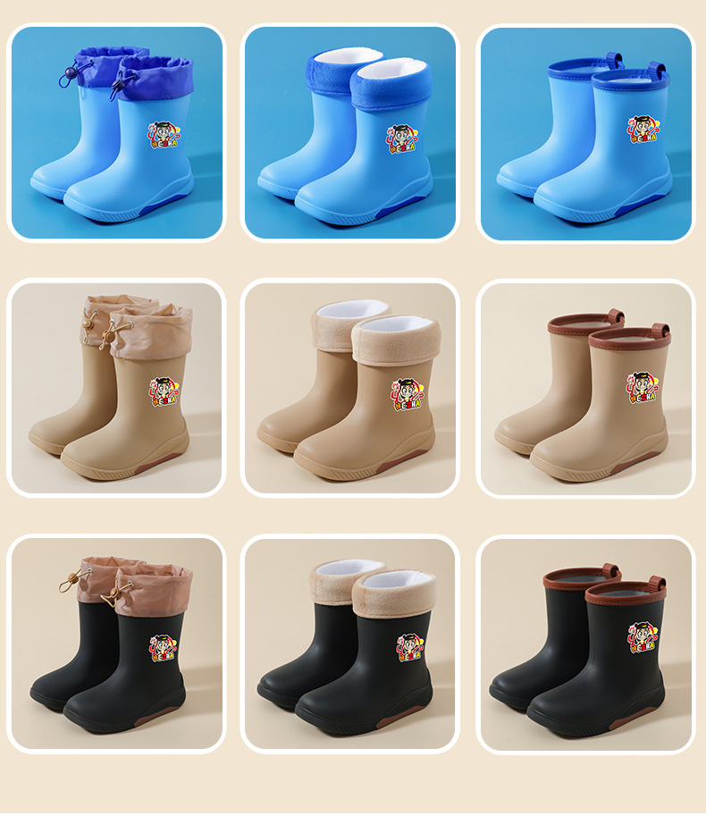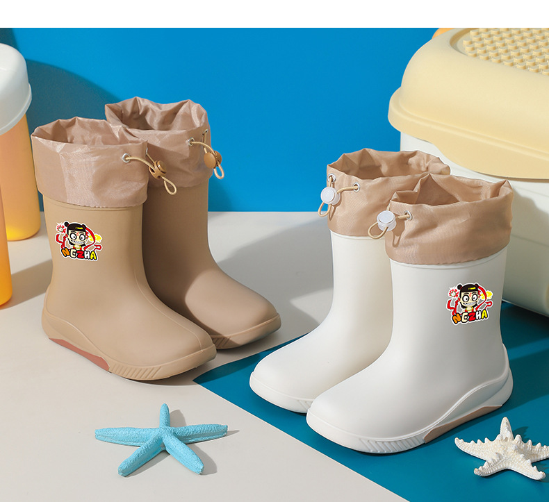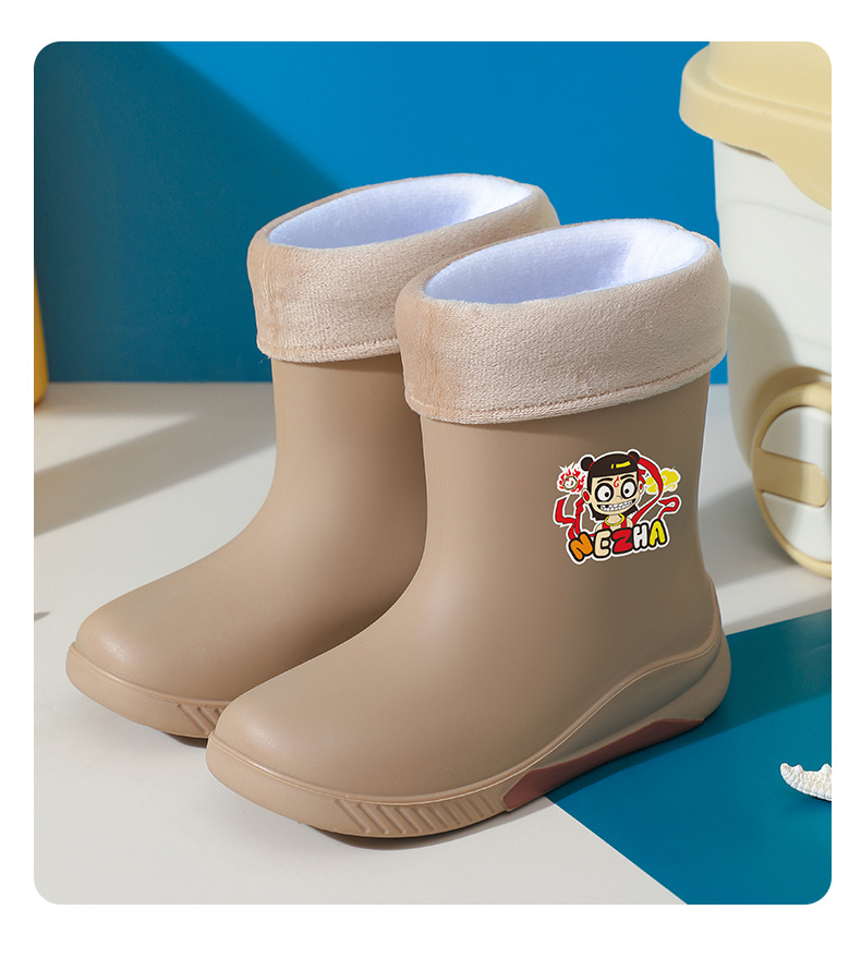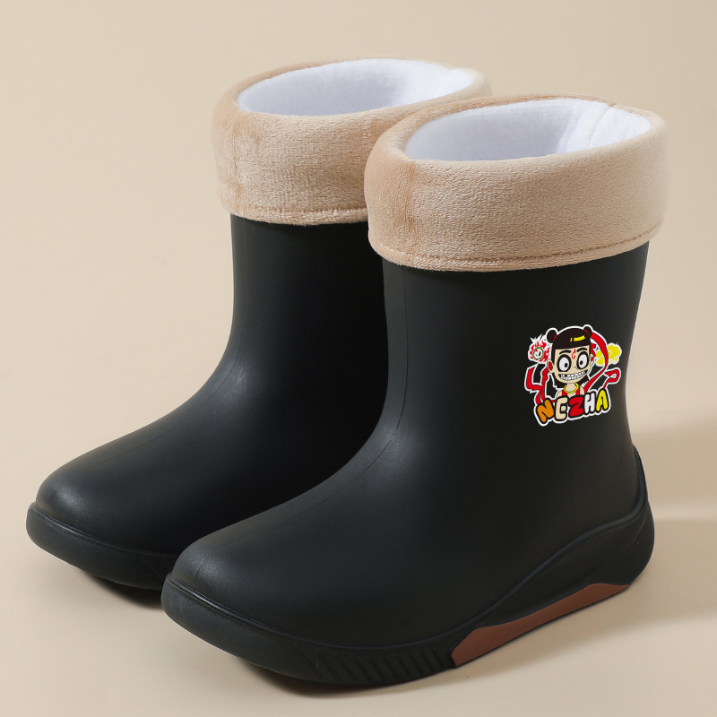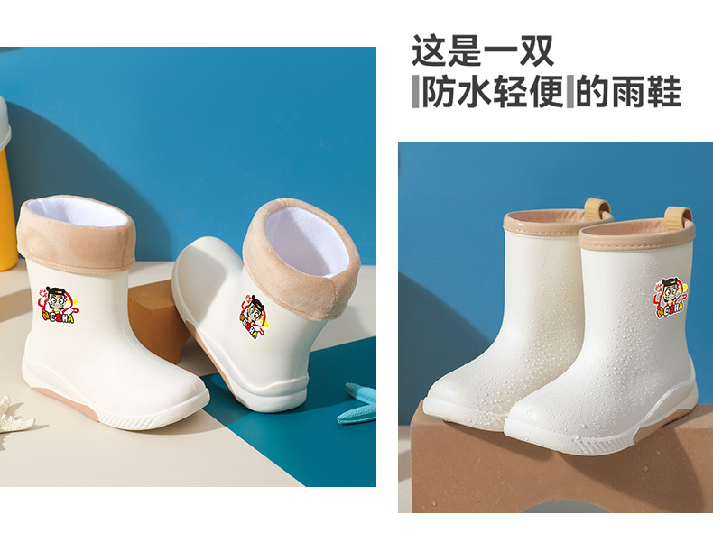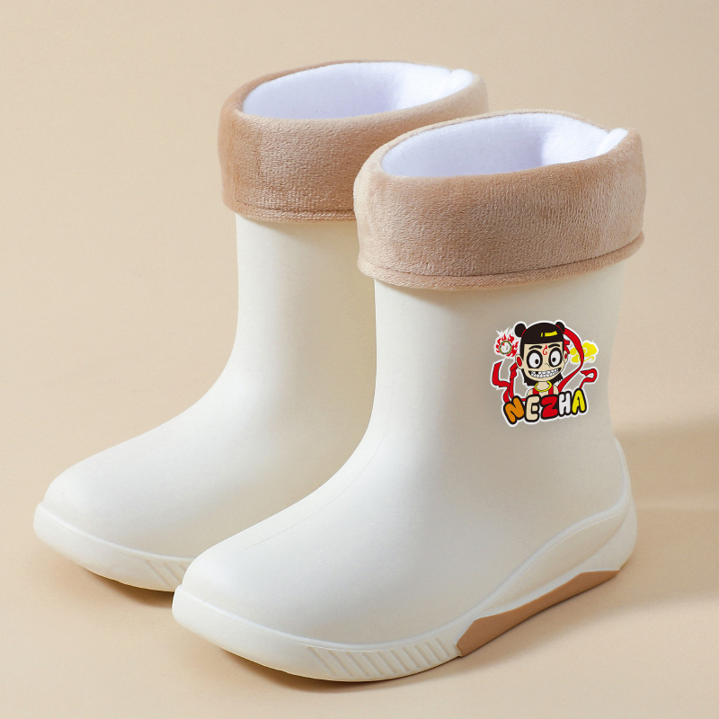 어린이 장화 2024 새로운 워터 부츠 소년 미끄럼 방지 유아 장화 소녀 방수 벨벳 워터 슈즈 소년 중간 튜브