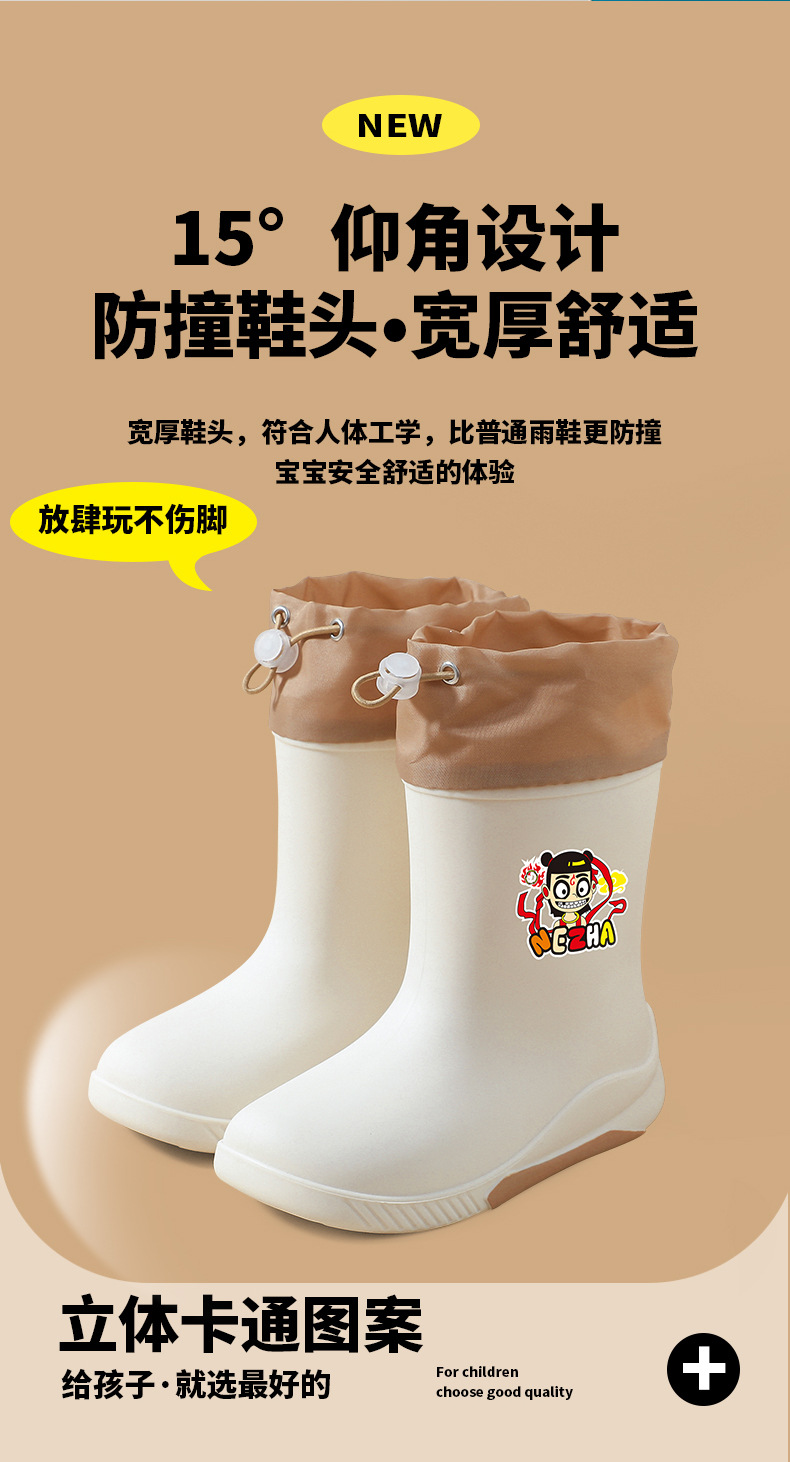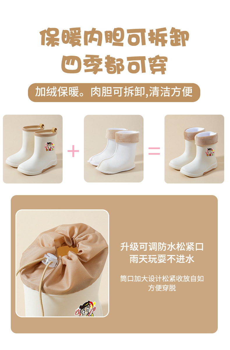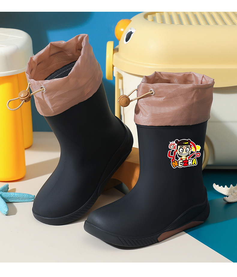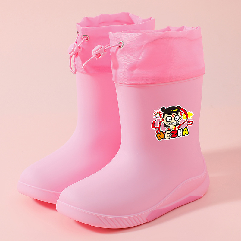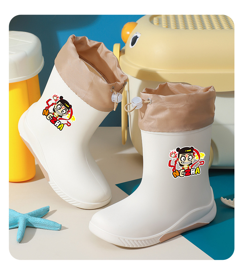 어린이 장화 2024 새로운 워터 부츠 소년 미끄럼 방지 유아 장화 소녀 방수 벨벳 워터 슈즈 소년 중간 튜브