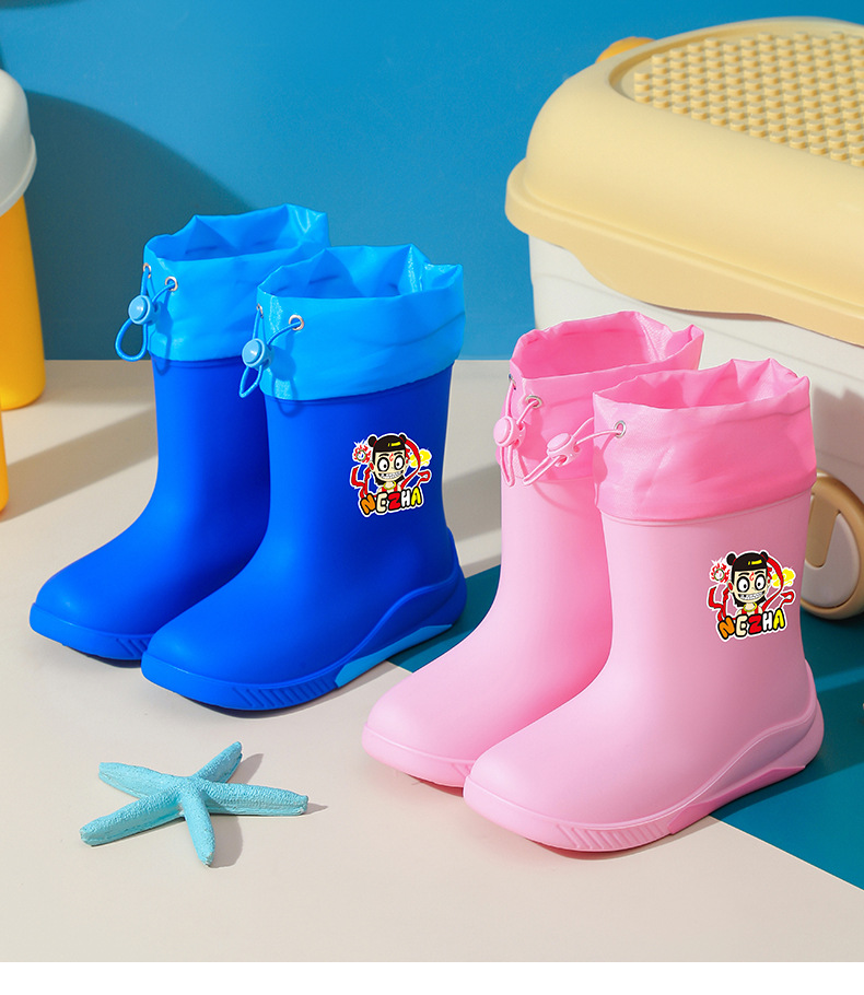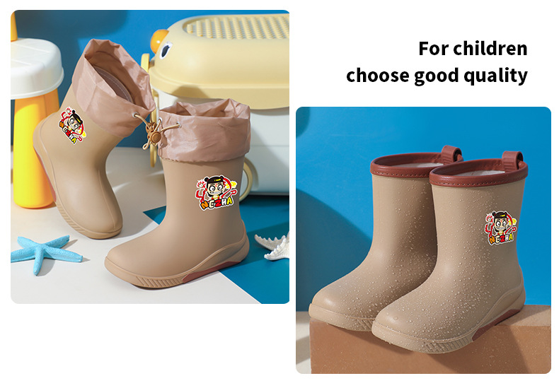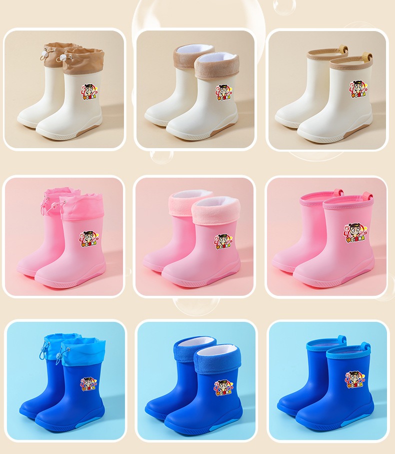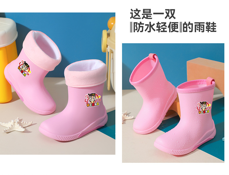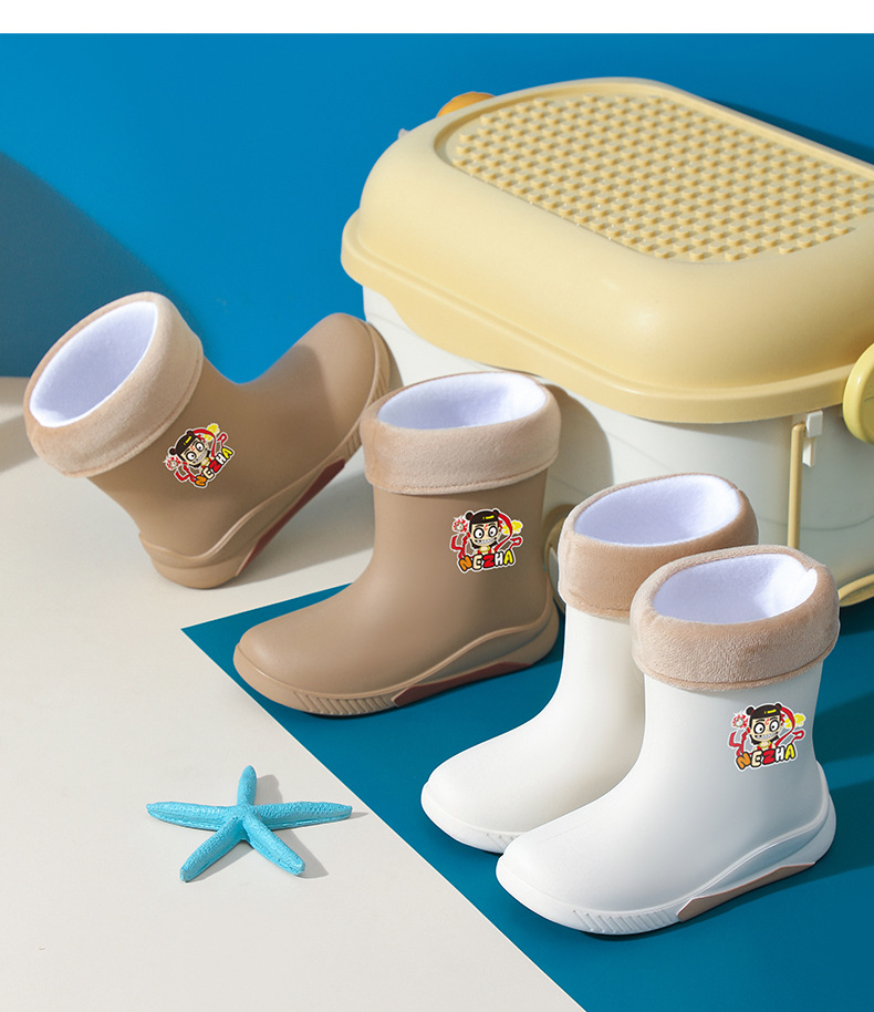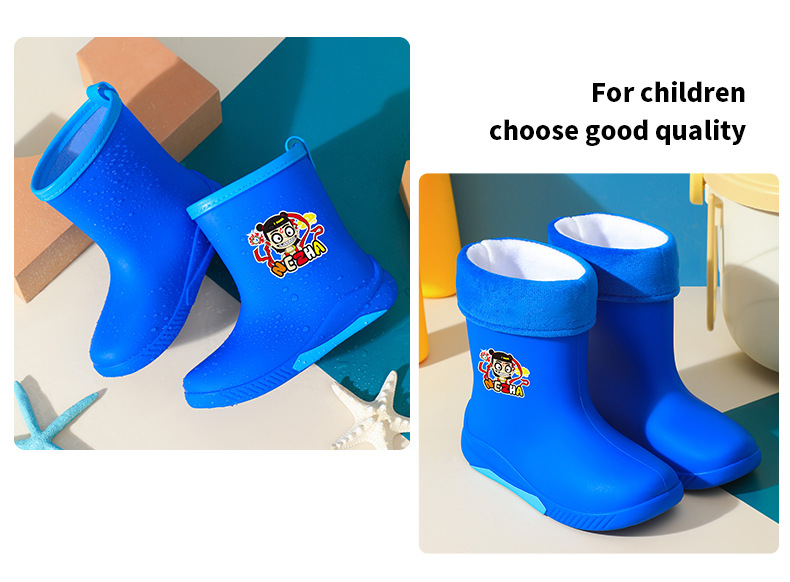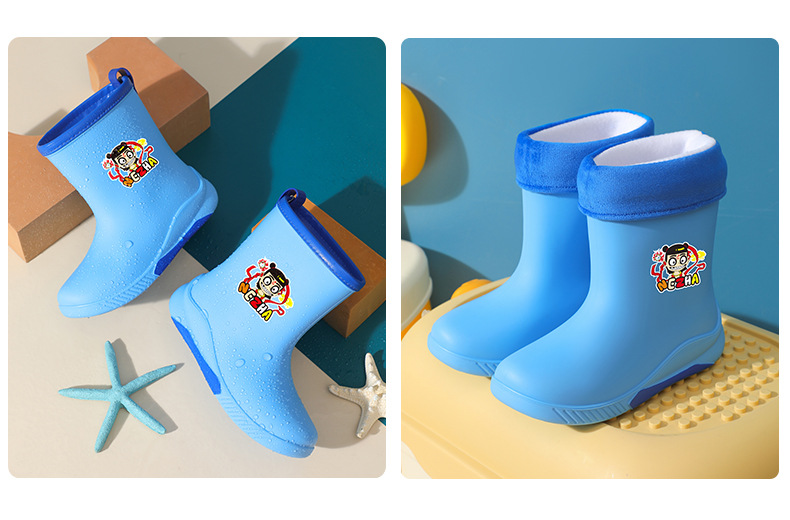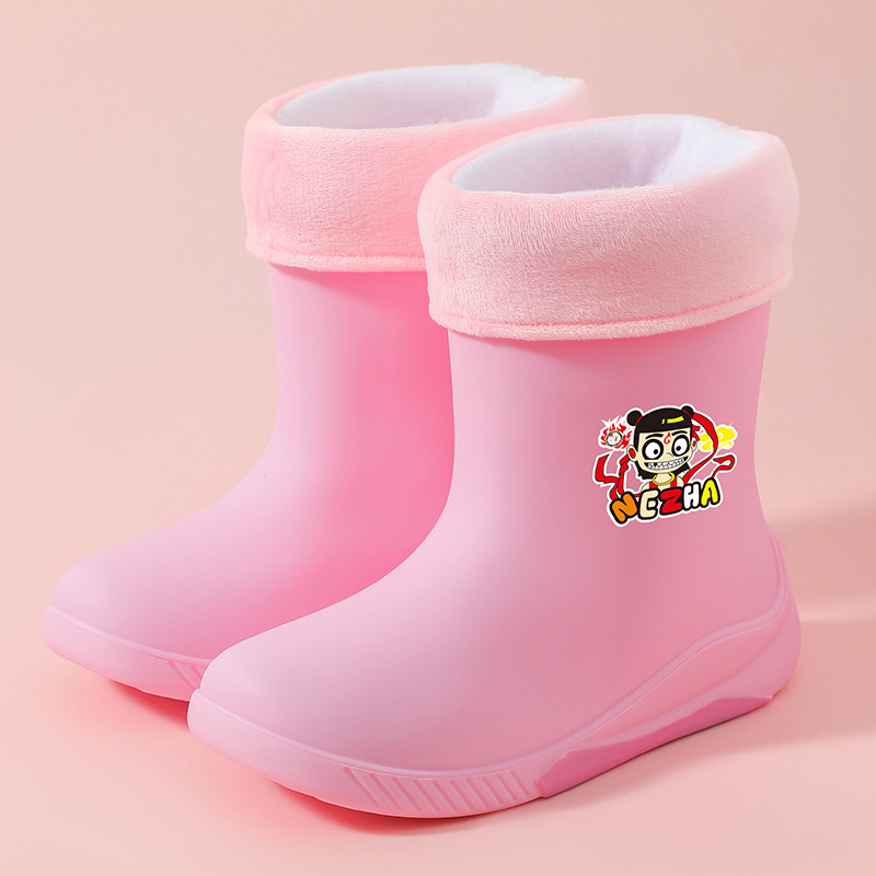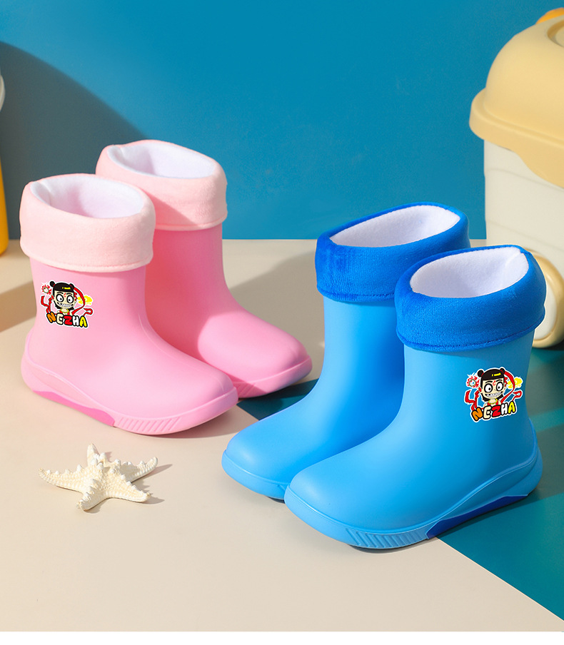 어린이 장화 2024 새로운 워터 부츠 소년 미끄럼 방지 유아 장화 소녀 방수 벨벳 워터 슈즈 소년 중간 튜브스토어 가기