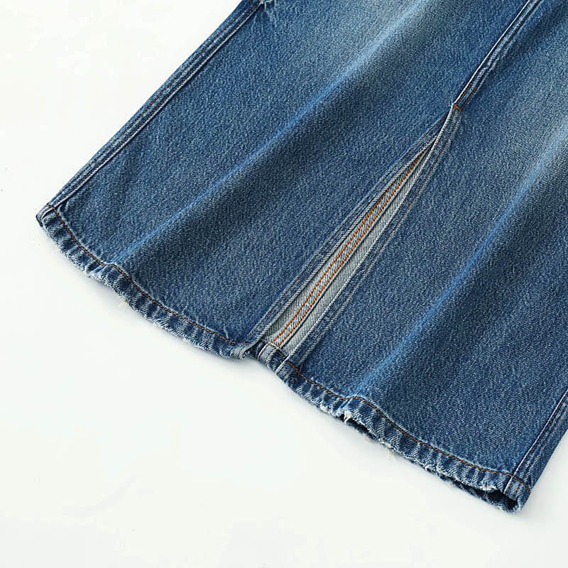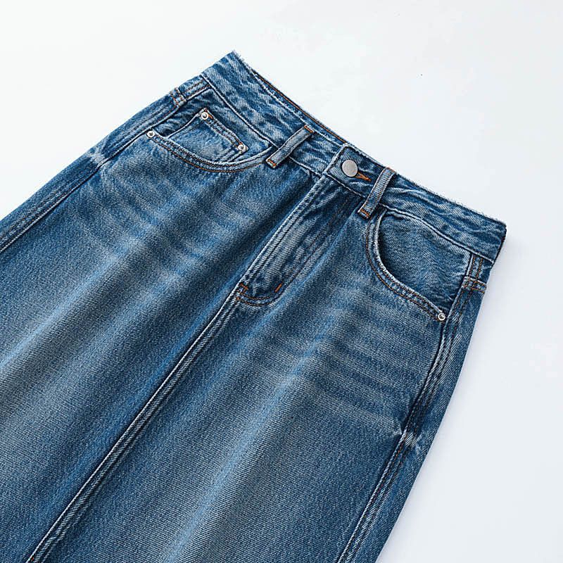 Kumeipai 2025 봄 하이 엔드 데님 스커트 여성 슬림 다용도 스커트 퓨어 코튼 프론트 슬릿 워시 미디 스커트스토어 가기