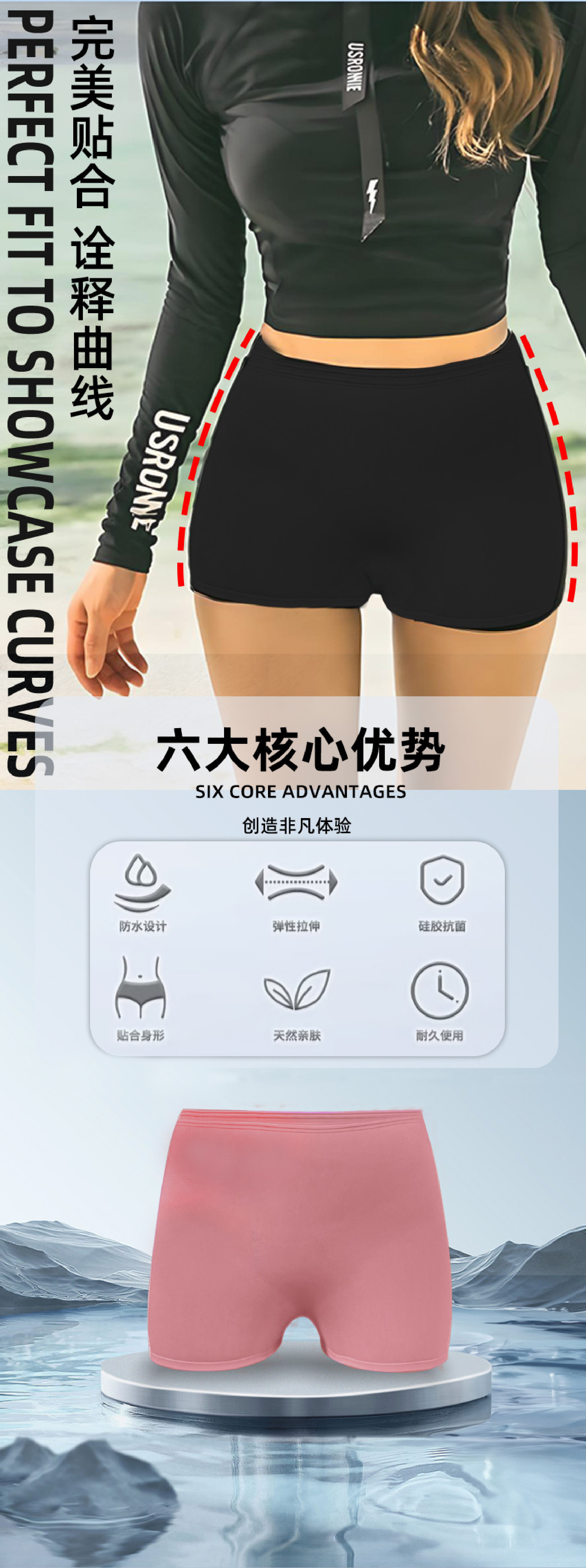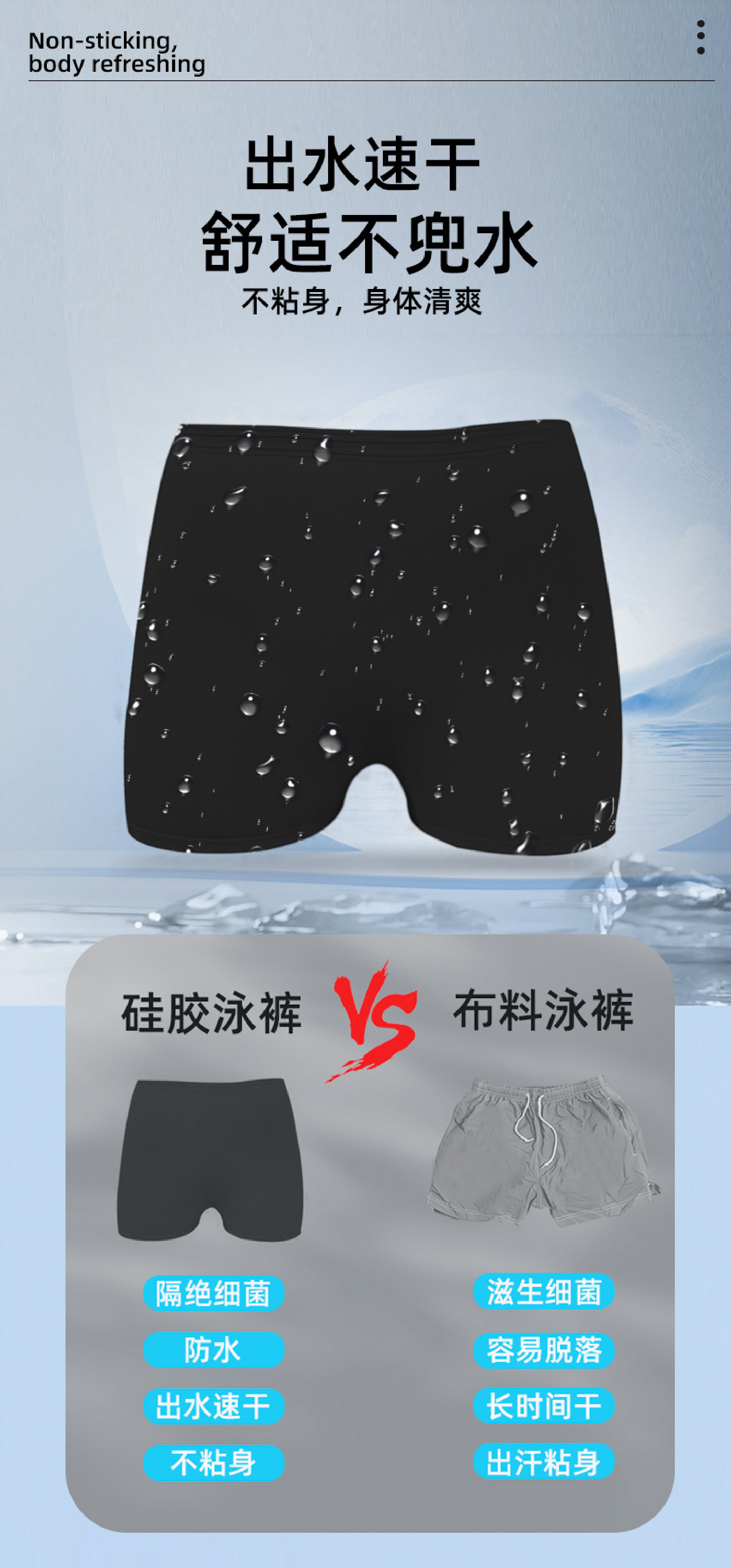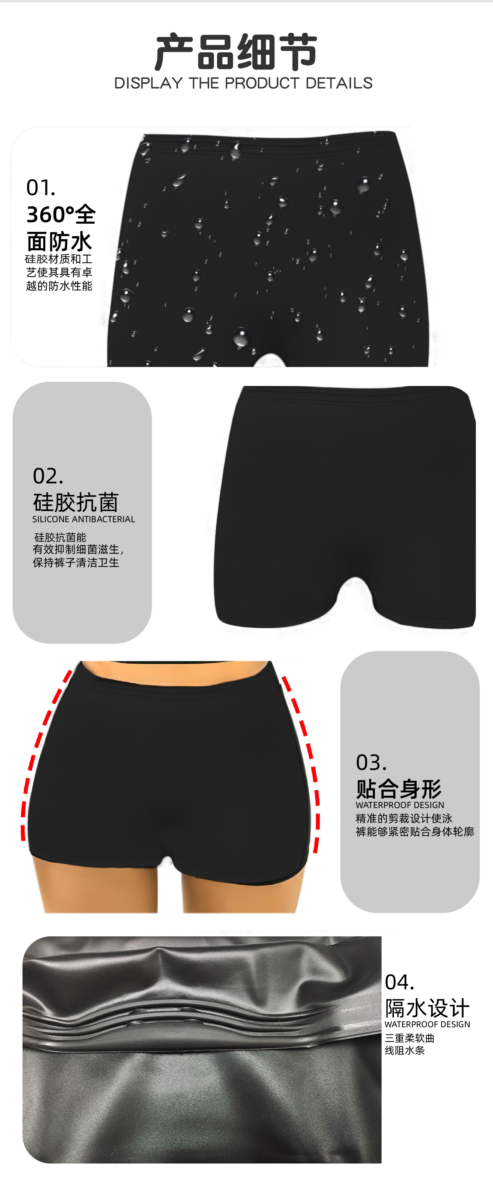 여름 인기 실리콘 수영 팬티, 남녀공용 수평 각도 방지 수영 팬티, 실리콘 고탄성 사각 수영 팬티스토어 가기