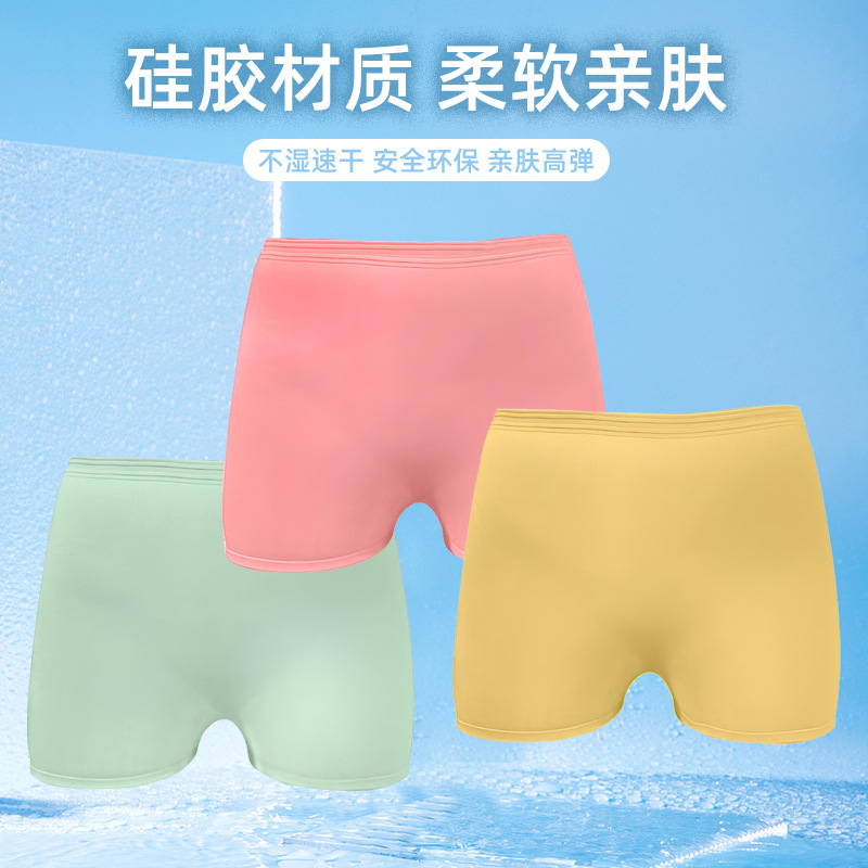 여름 인기 실리콘 수영 팬티, 남녀공용 수평 각도 방지 수영 팬티, 실리콘 고탄성 사각 수영 팬티