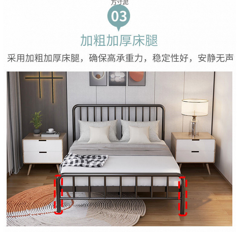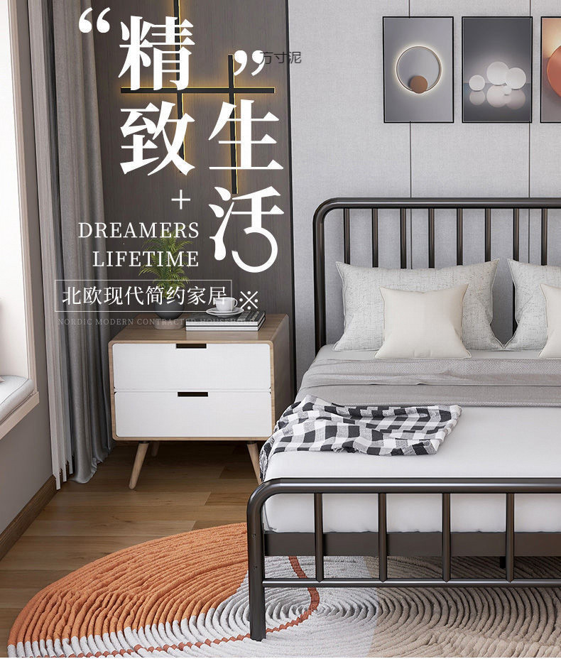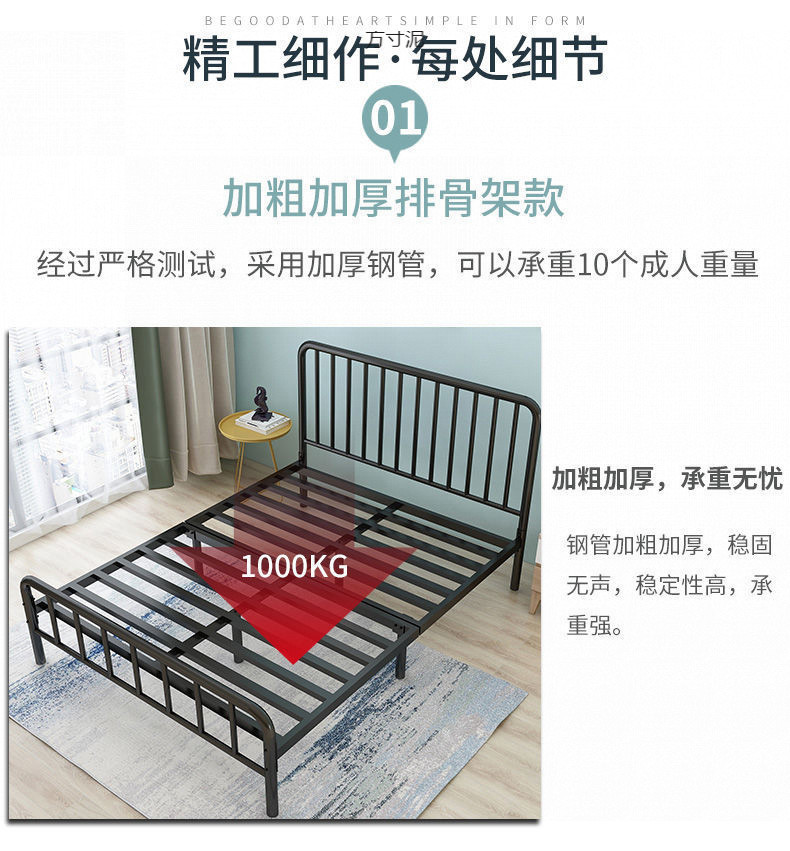 철제 침대 더블 철제 침대 싱글 1.5 철제 프레임 침대 1.8m 모던 심플 1.2 임대실 공장 국경 간 도매스토어 가기
