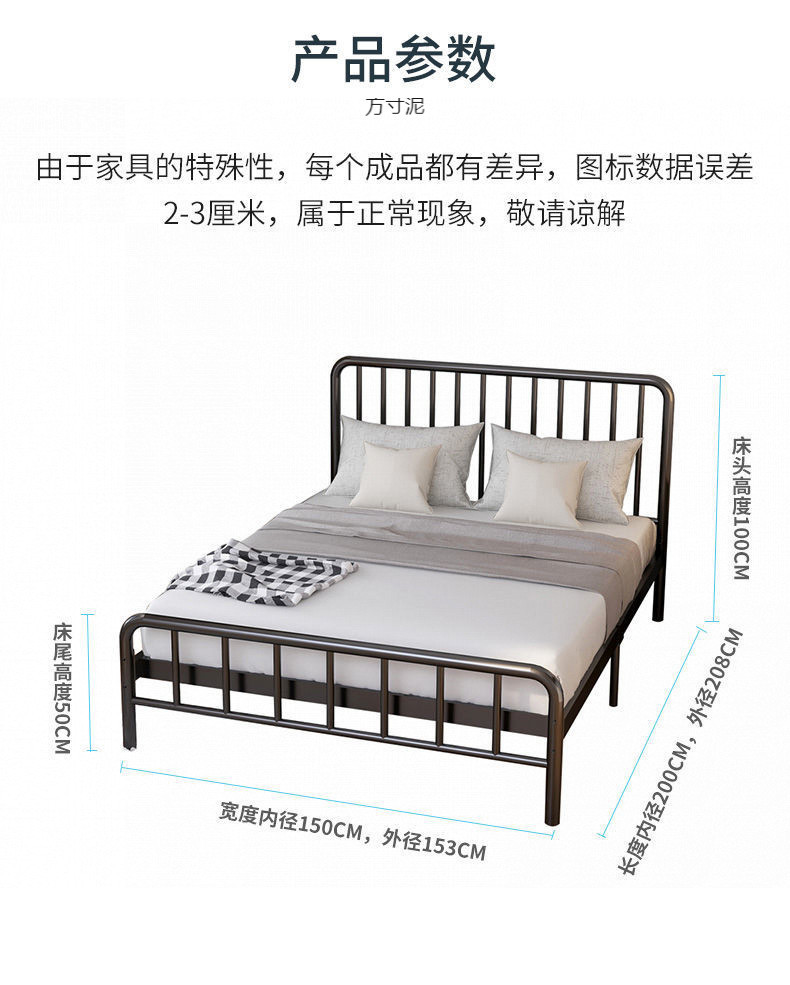 철제 침대 더블 철제 침대 싱글 1.5 철제 프레임 침대 1.8m 모던 심플 1.2 임대실 공장 국경 간 도매