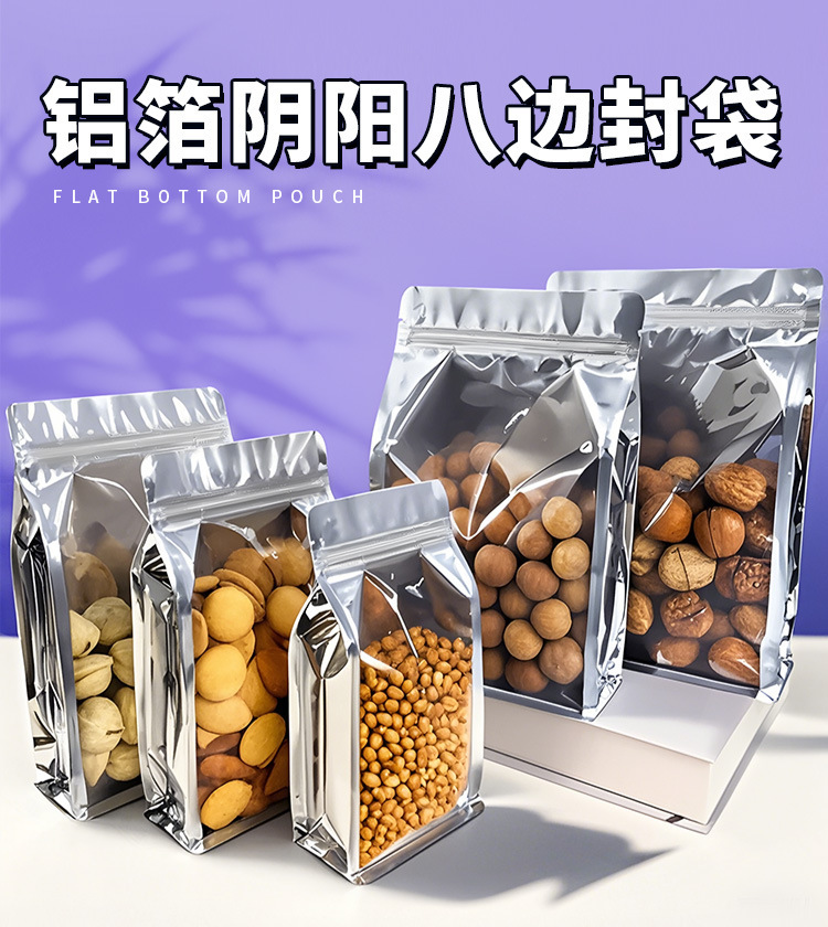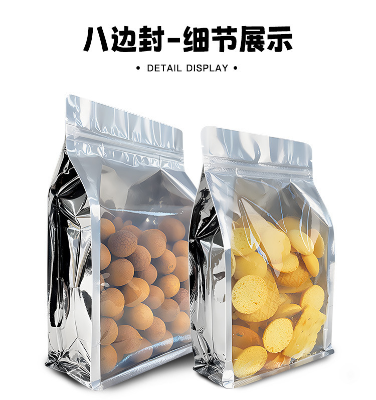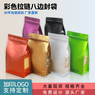 彩色八边封铝箔开窗加厚自封密封袋零食茶叶干果食品压条包装袋