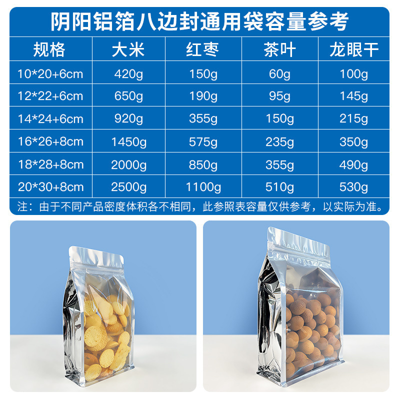 창문 차 8면 밀봉 알루미늄 호일 가방 맞춤형 두꺼운 붉은 대추 건조 식품 꽃 차 식품 범용 플라스틱 음양 가방