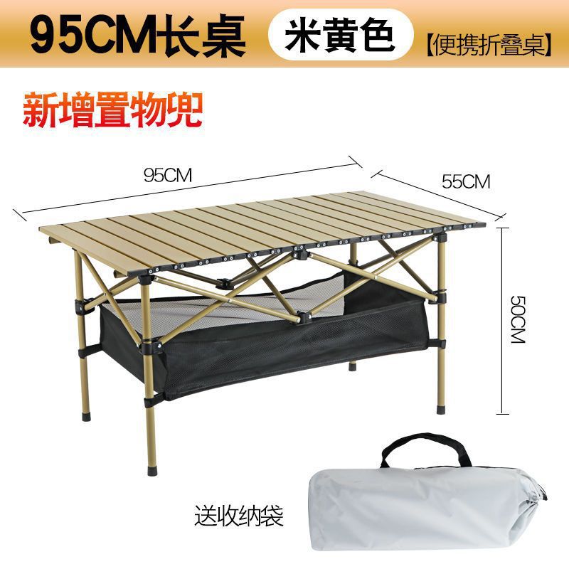 • [접이식 계란말이 테이블] 노란색 + 긁힘 방지 무료 수납가방 - 롱 테이블 95*55*50 [고정 메쉬백 스타일] 접이식 테이블 ✓