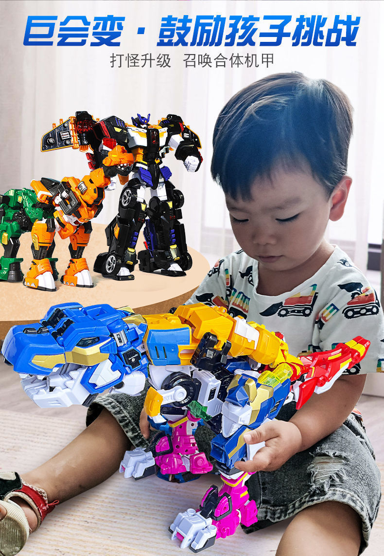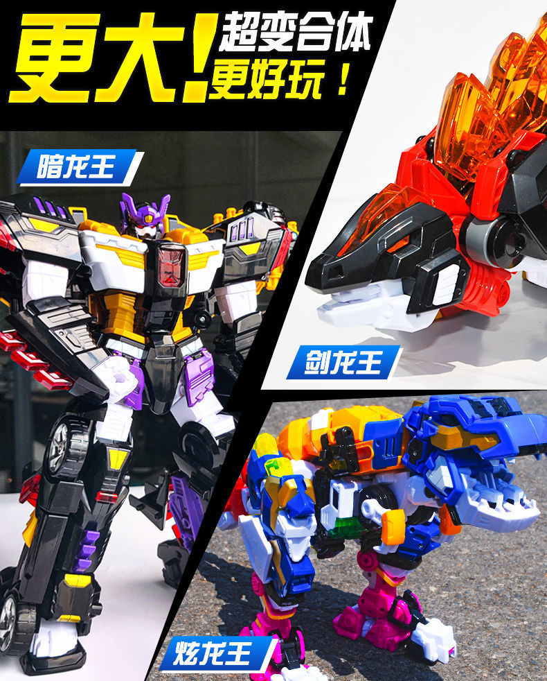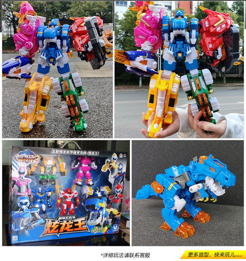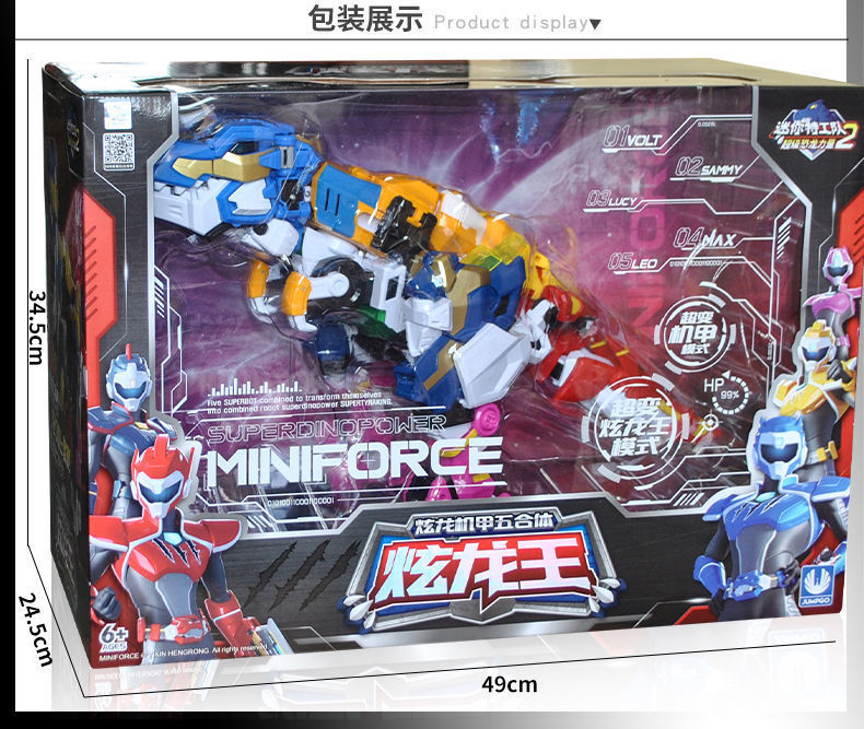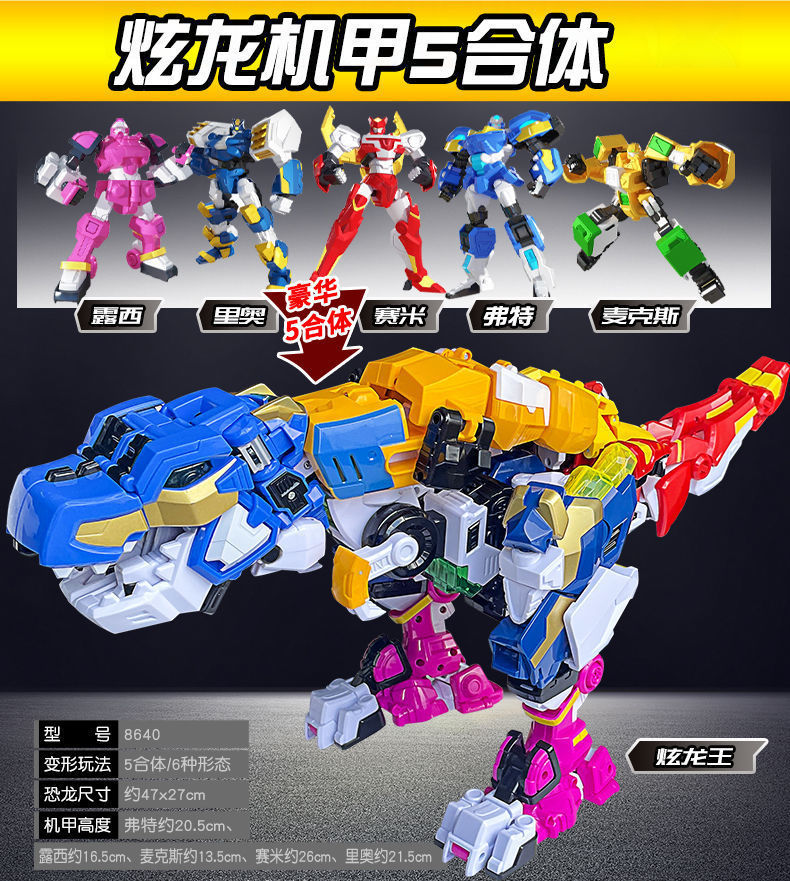 정품 미니 에이전트 슈퍼 공룡 파워 드래곤 킹 5인용 변형 티라노사우루스 렉스 로봇 장난감 2