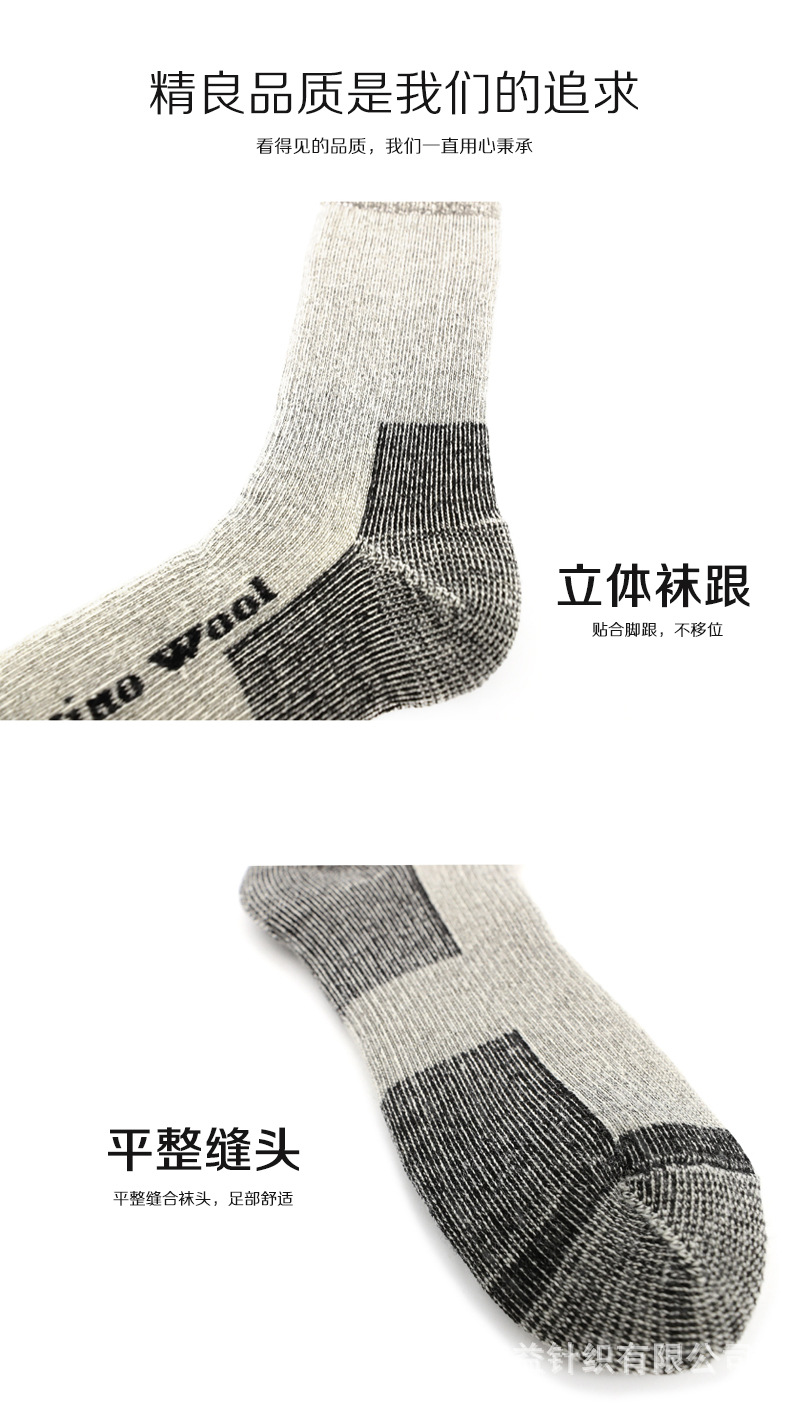 남성과 여성을 위한 국경을 넘는 맞춤형 두꺼운 메리노 울 등산 스포츠 양말, 땀 흡수성, 항균, 탈취성, 보온성 중간 길이 양말스토어 가기