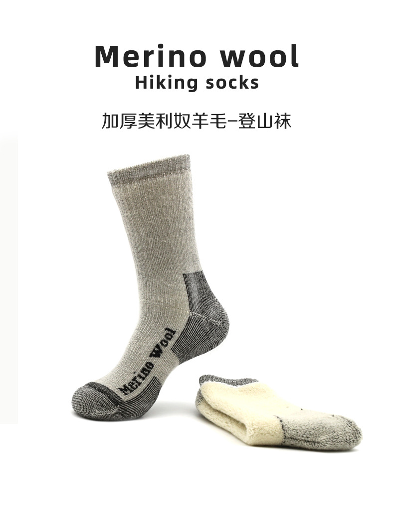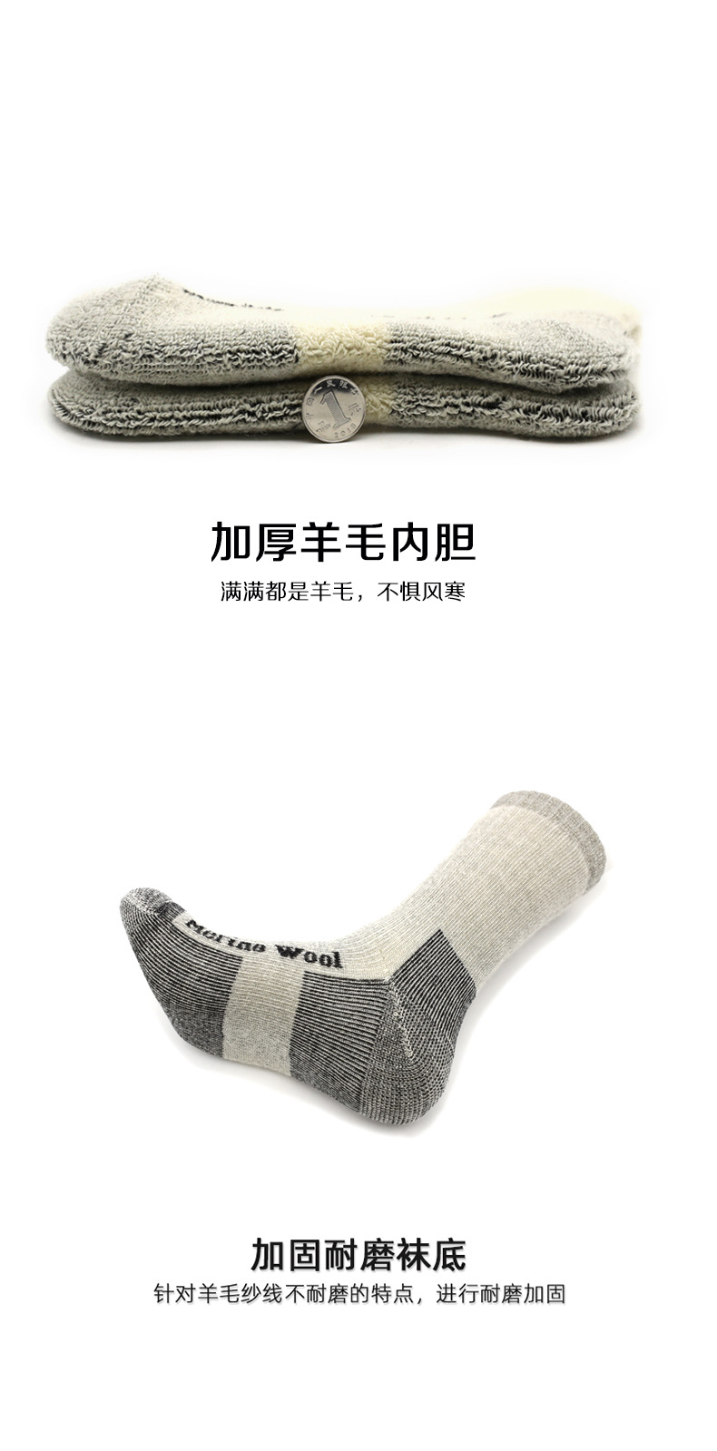 남성과 여성을 위한 국경을 넘는 맞춤형 두꺼운 메리노 울 등산 스포츠 양말, 땀 흡수성, 항균, 탈취성, 보온성 중간 길이 양말