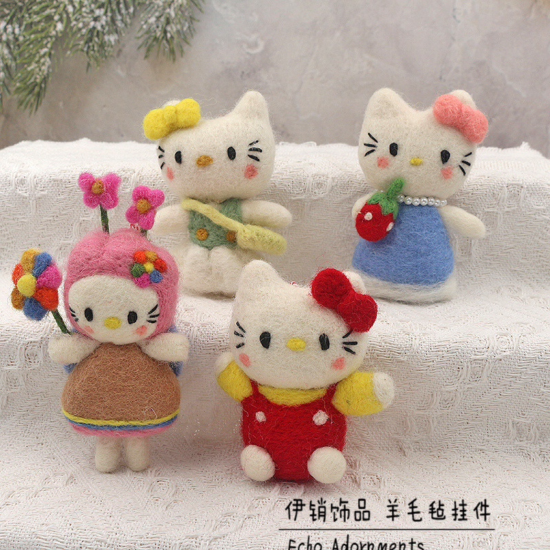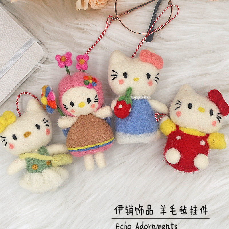 만화 양모 펠트 새끼 고양이 펜던트 키티 고양이 인형 부드러운 귀여운 Kt 고양이 학교 가방 펜던트 쥬얼리 액세서리
