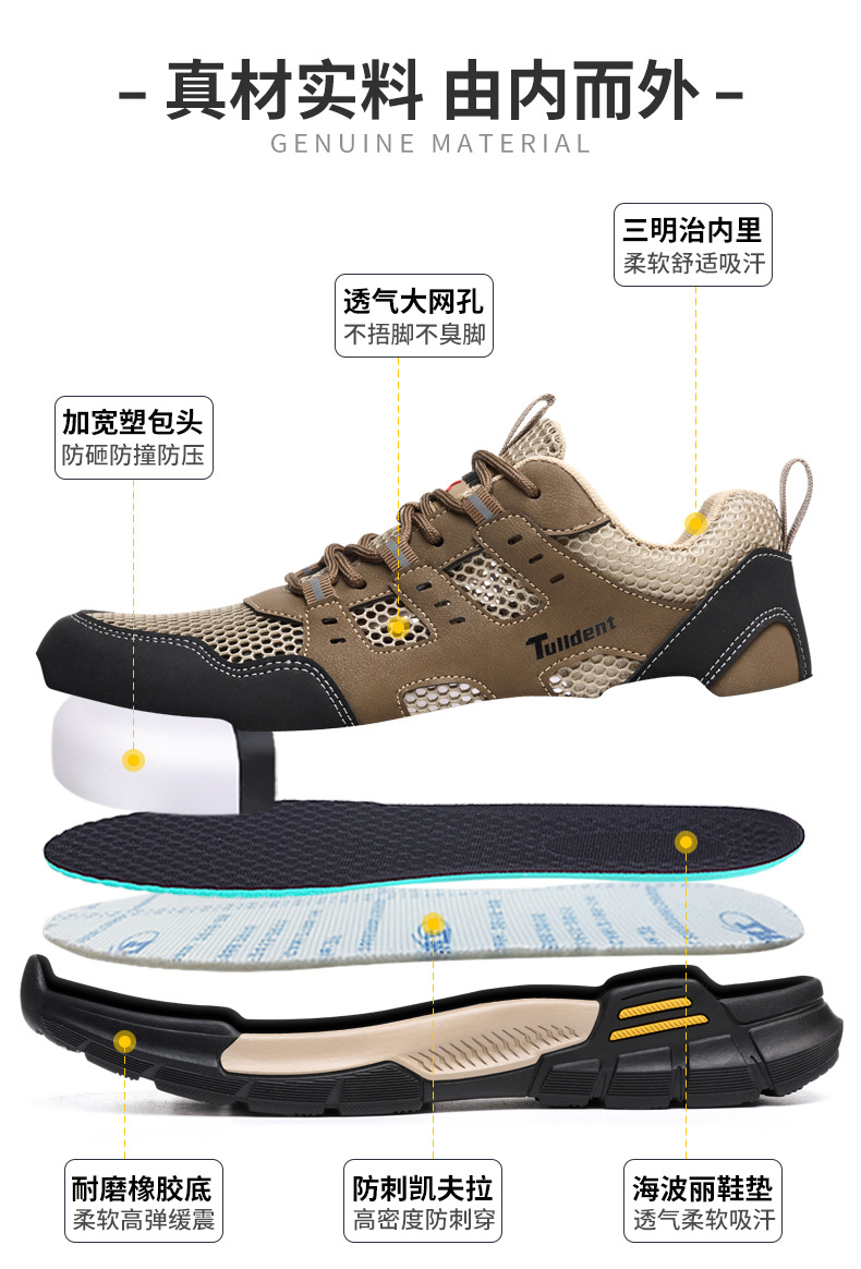 남성용 여름 노동 보호 신발, 충격 방지, 펑크 방지, 냄새 방지, 통기성 작업 신발, 내마모성 안전 건설 현장 전기 절연 신발스토어 가기