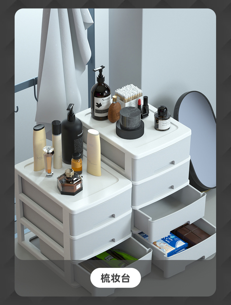 투명 데스크탑 수납함 서랍형 워크스테이션 잔해물 정리 다층 화장품 수납장 데스크 수납선반스토어 가기