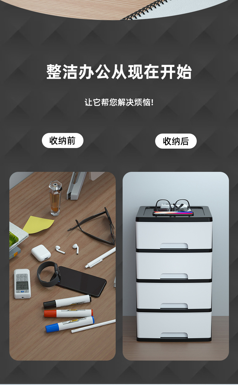 • 대형 4단 [흰색 선반 + 검정색 투명 서랍]으로 A4 용지 수납 가능