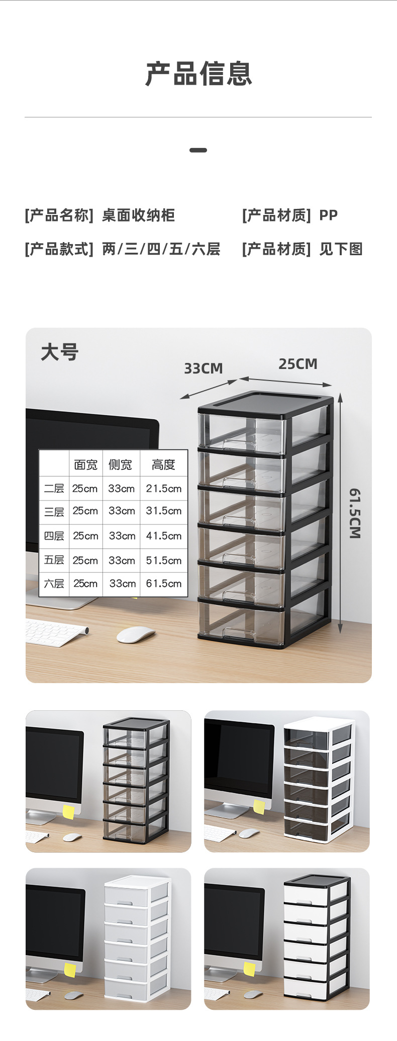 • 소형 4단 [검은색 프레임 + 흰색 투명 서랍]