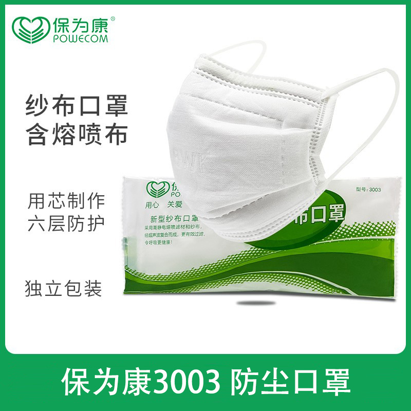 Baoweikang 3003 새로운 거즈 마스크에는 멜트블로운 천이 포함되어 있으며 두껍고 독립적으로 포장되어 있습니다. 방진 및 스모그 방지 노동 보호 마스크