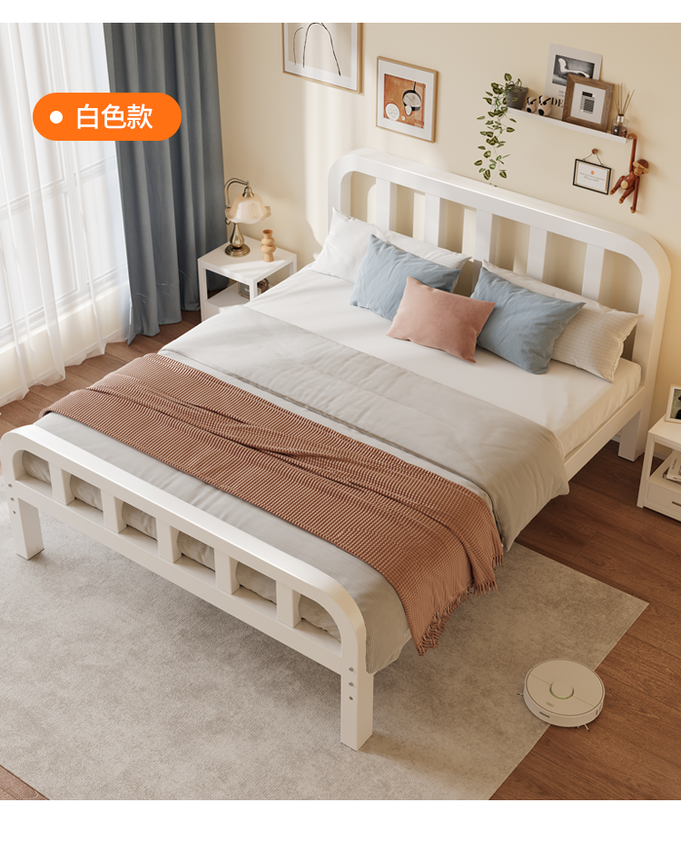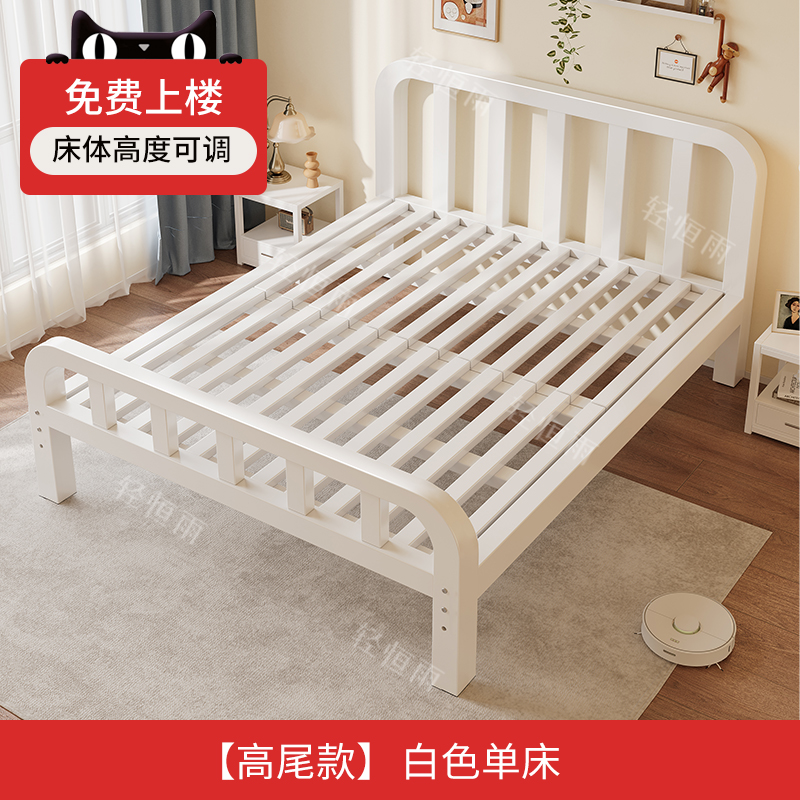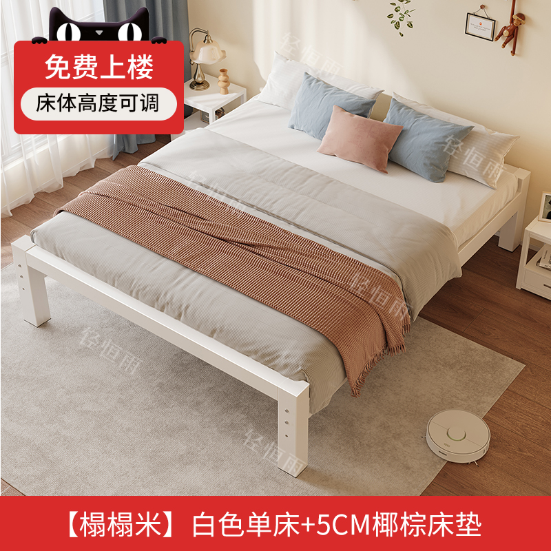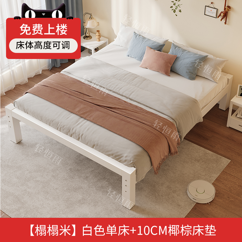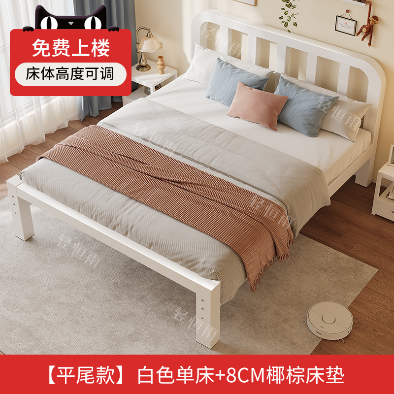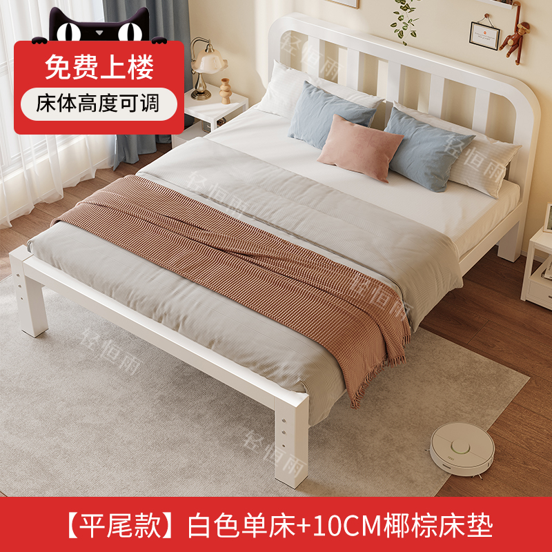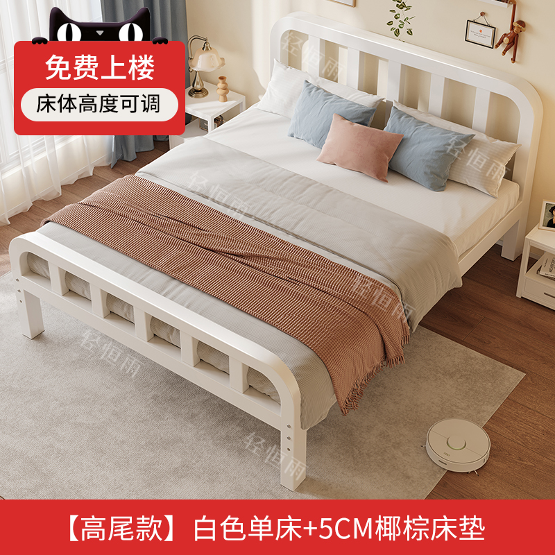 • [하이 헤드 및 플랫 테일 모델] 화이트 침대 + 10cm 코코넛 야자 매트리스(조절 가능)
