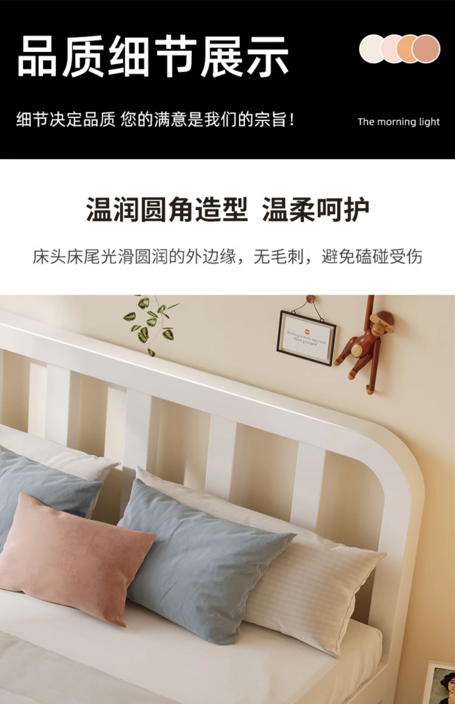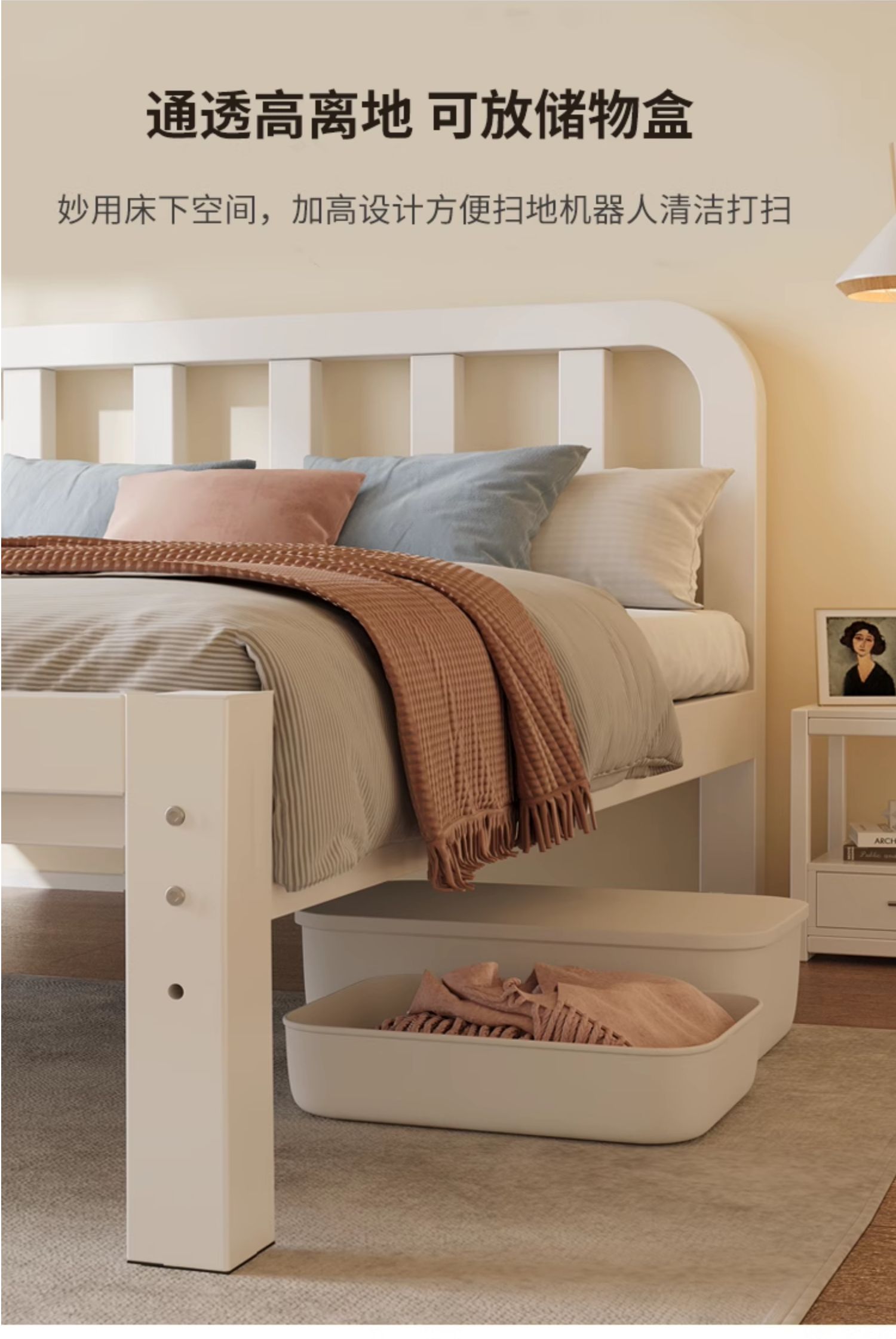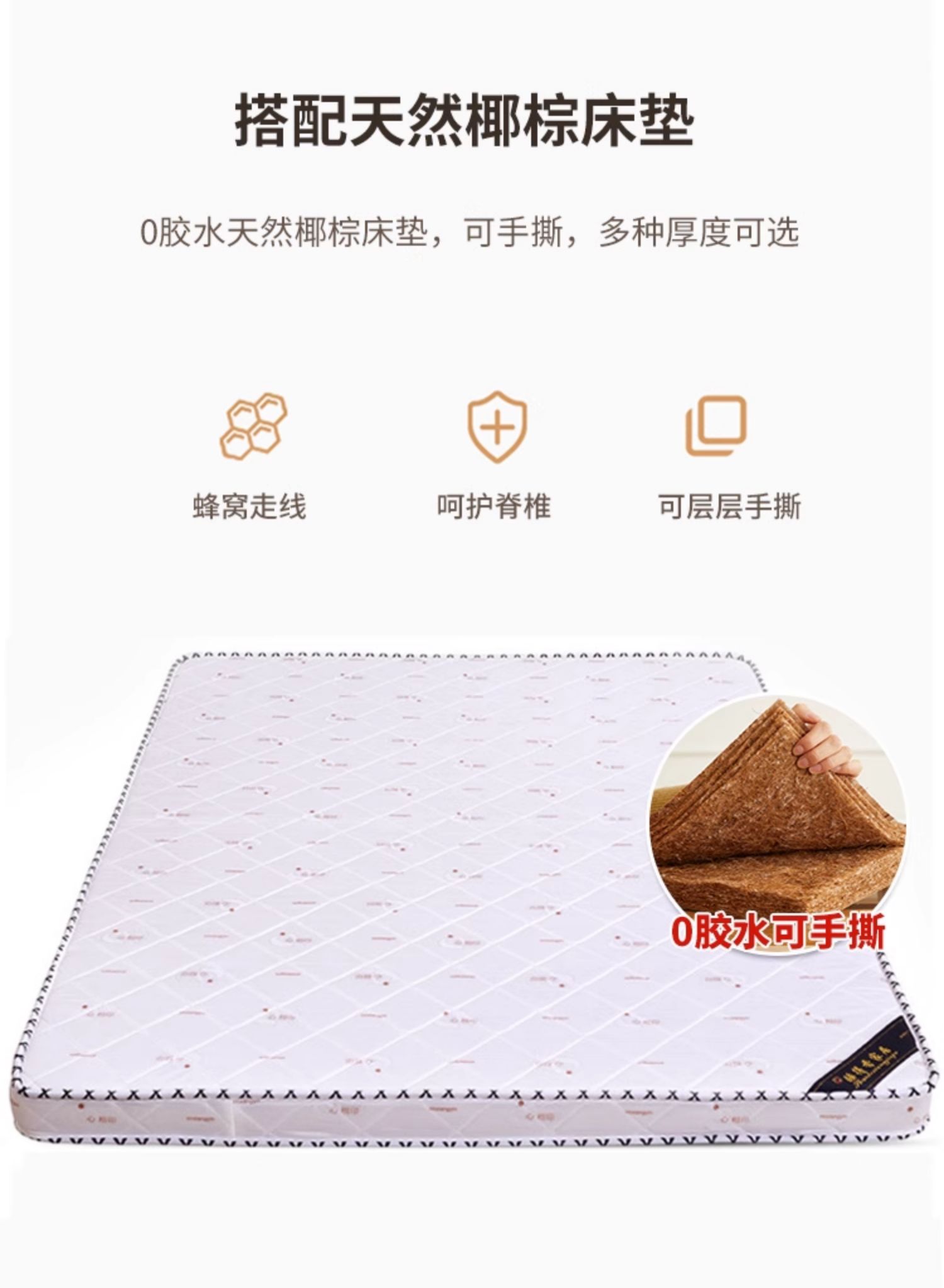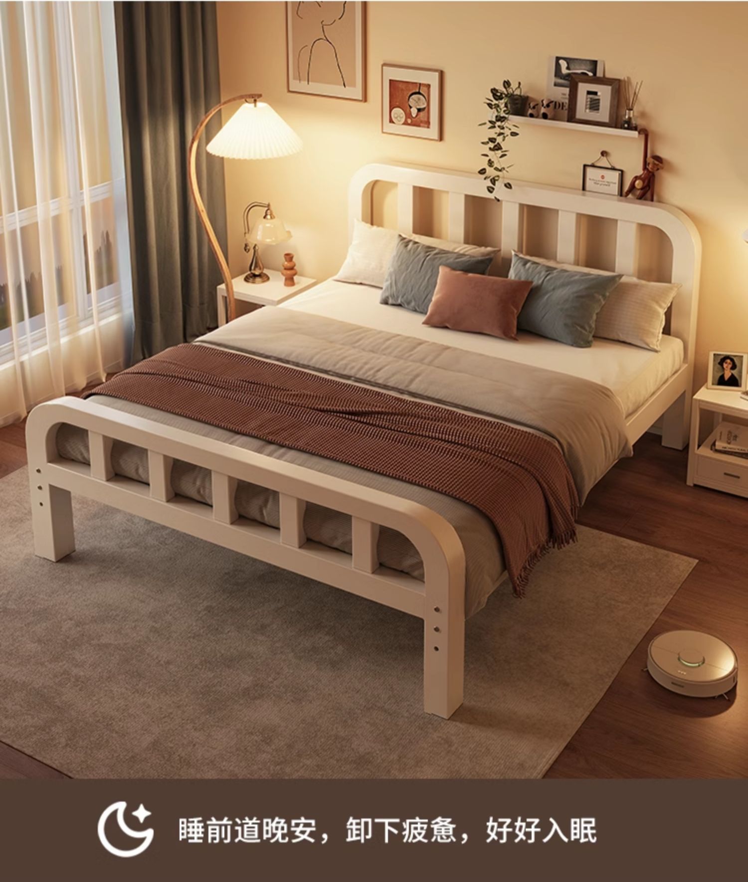 • [하이 헤드 및 플랫 테일 모델] 화이트 침대 + 10cm 코코넛 야자 매트리스(조절 가능)