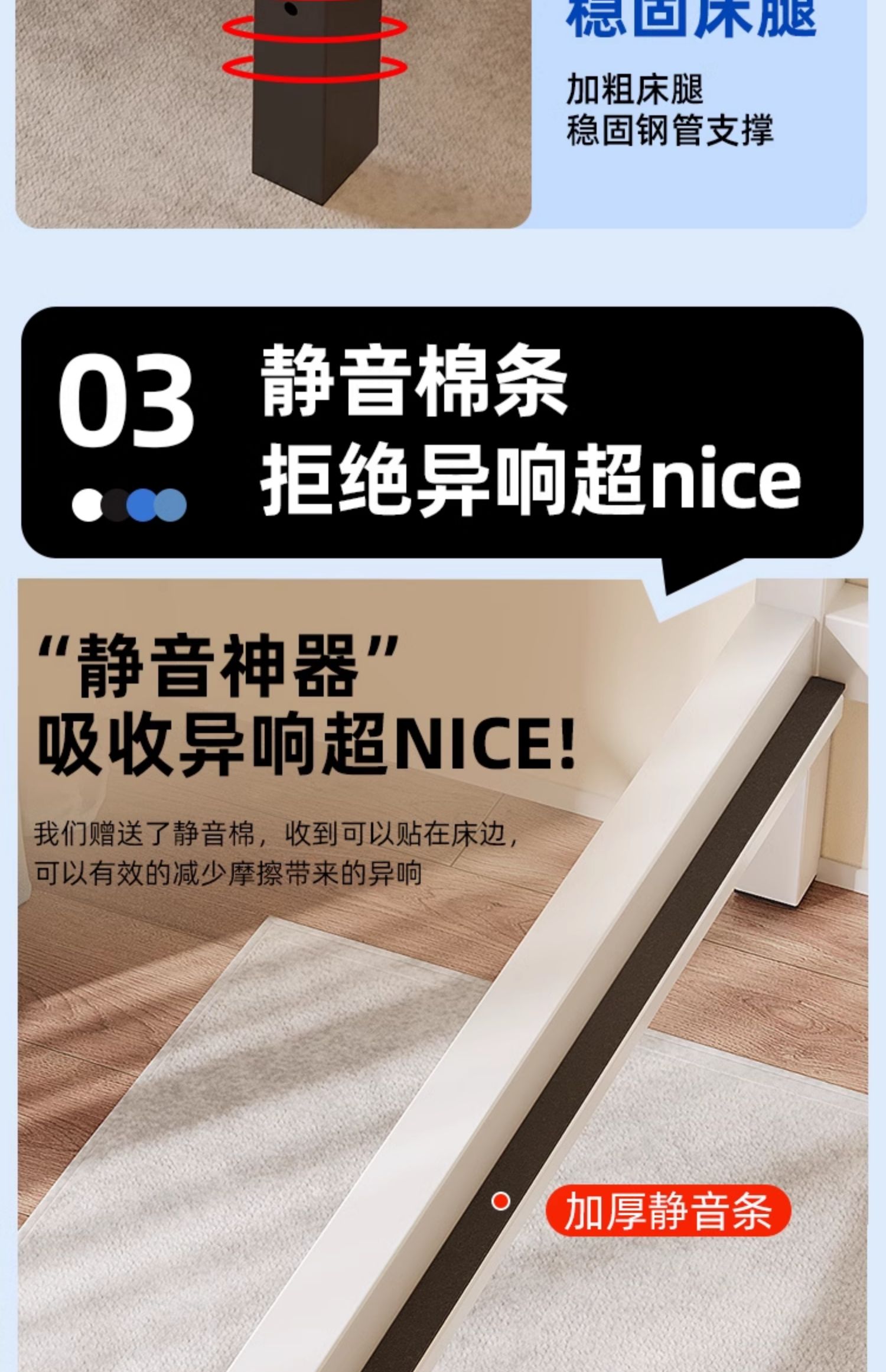 • [하이 헤드 및 플랫 테일 모델] 흰색 침대(조절 가능), 조용하고 안정적이며 붕괴 방지