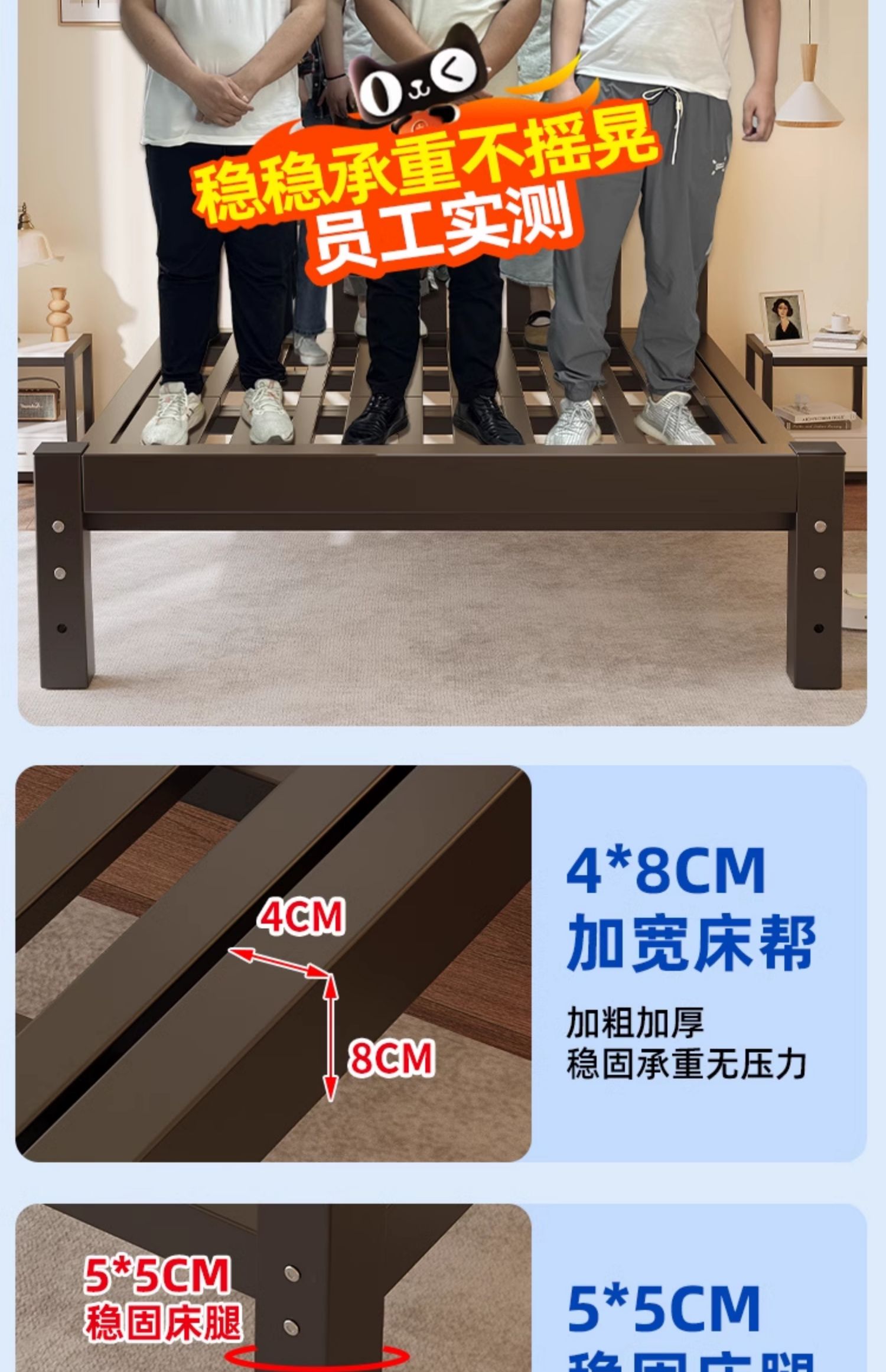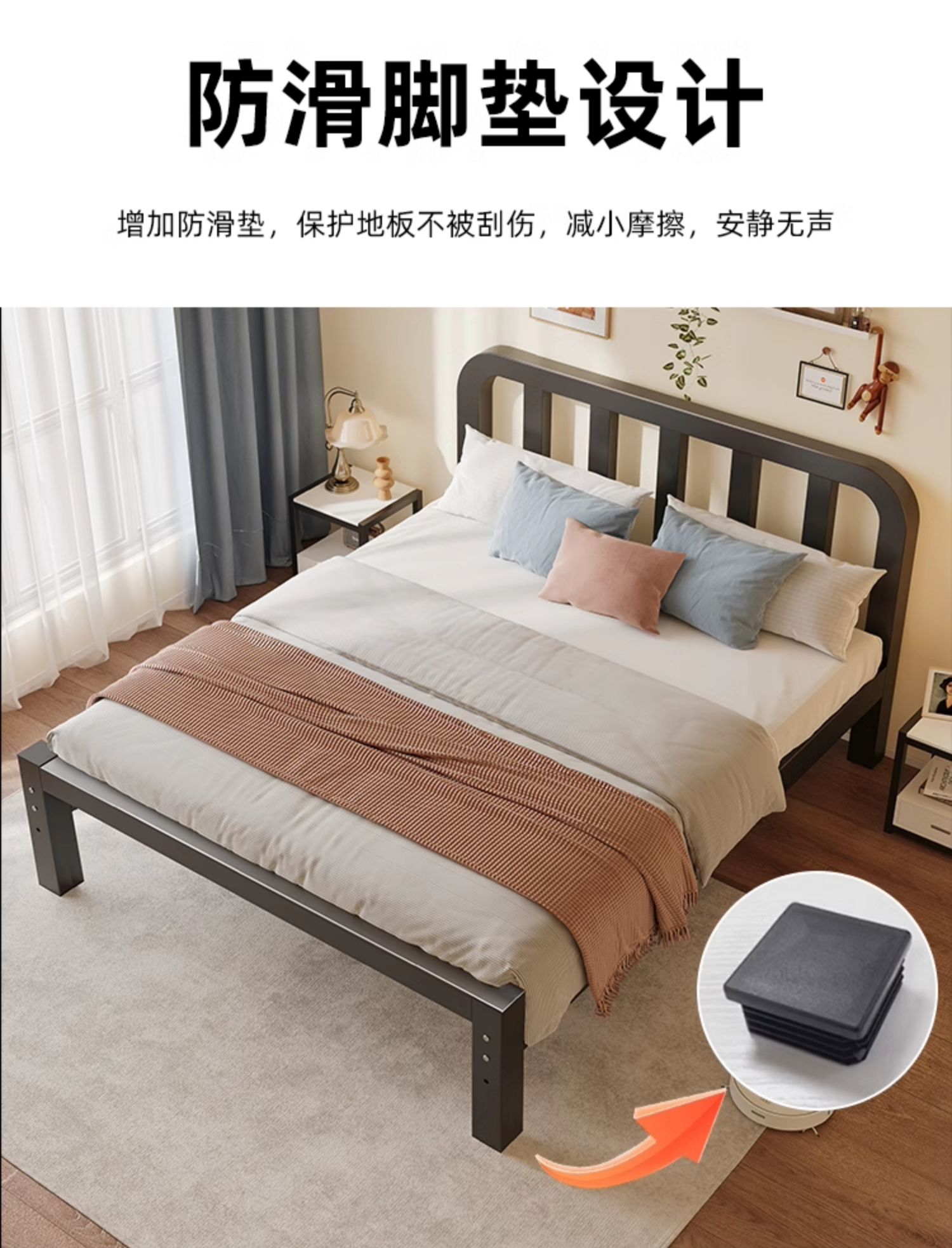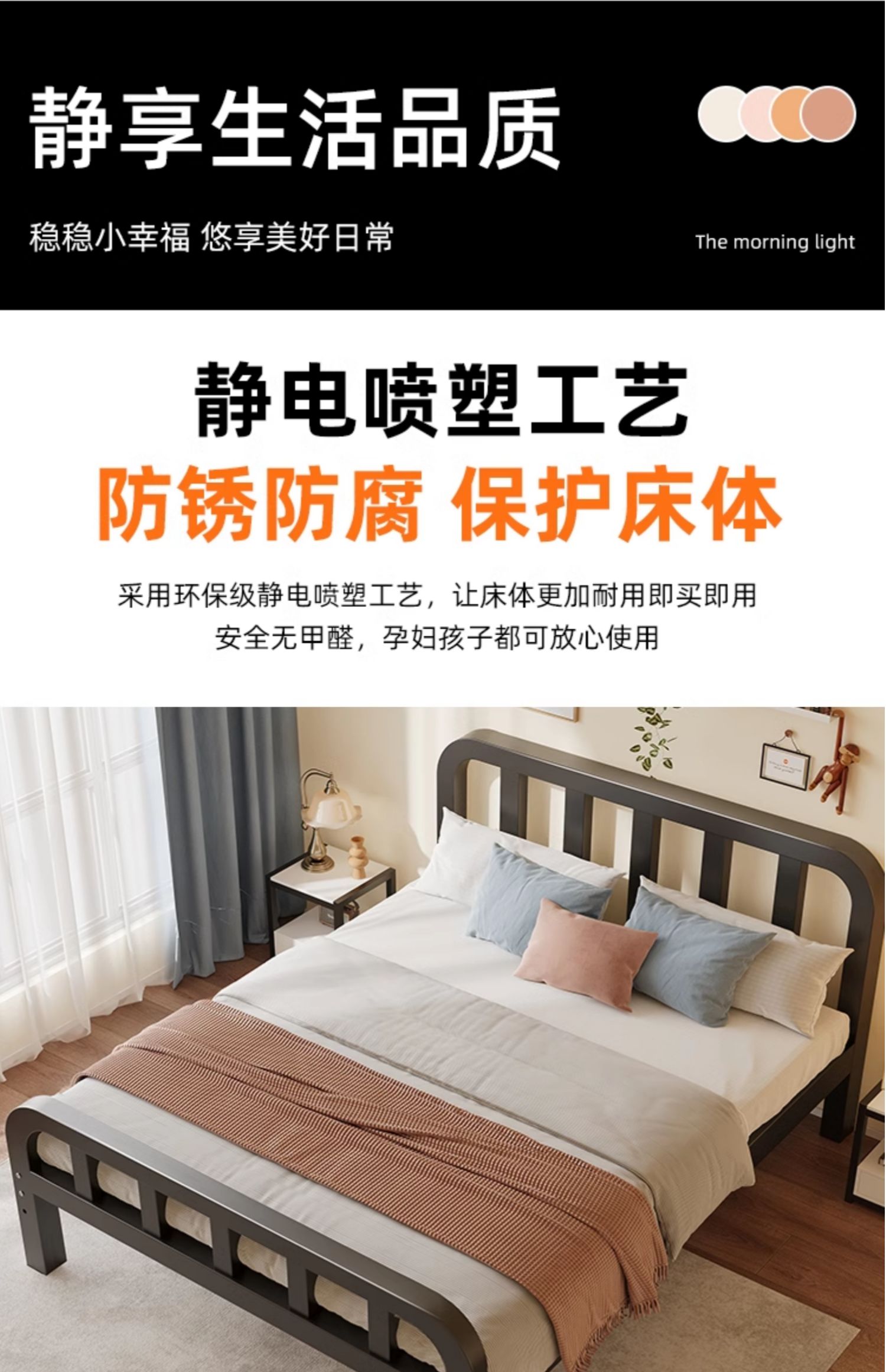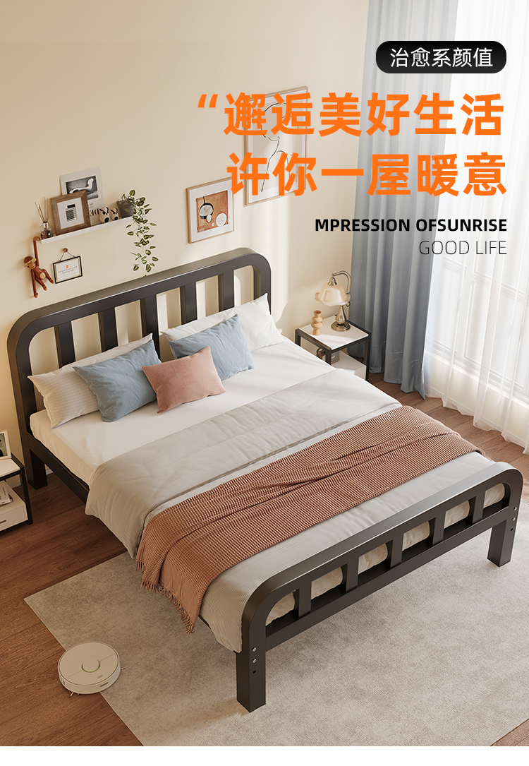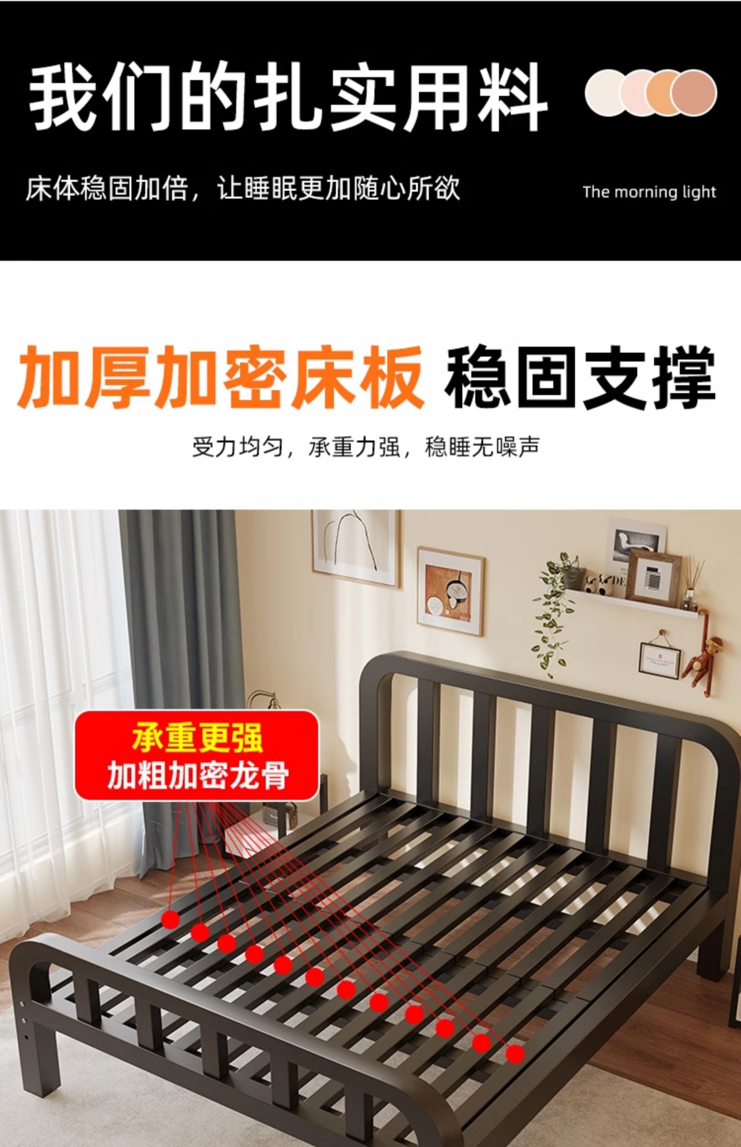 가정용 철제 침대 더블 철제 침대 1.8m 강화 및 두꺼운 1.5m 싱글 스테인레스 스틸 두꺼운 기숙사 철제 프레임 침대스토어 가기