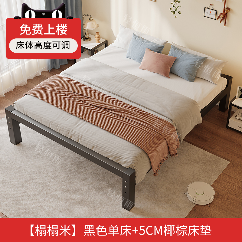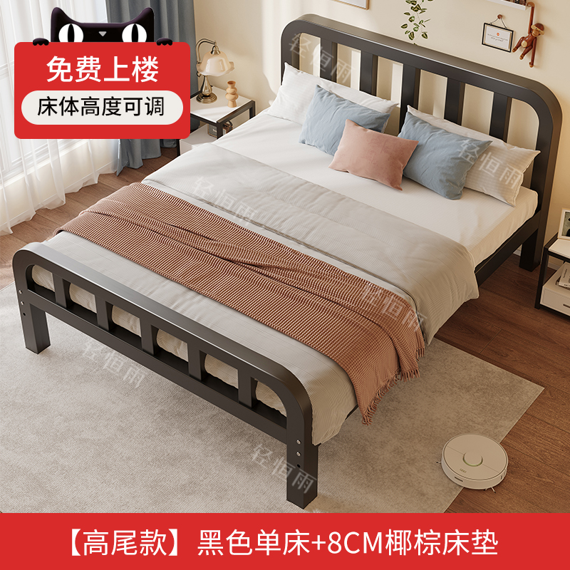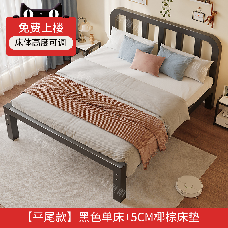 • [하이 헤드 및 플랫 테일 모델] 블랙 침대 + 8cm 코코넛 야자 매트리스(조절 가능)