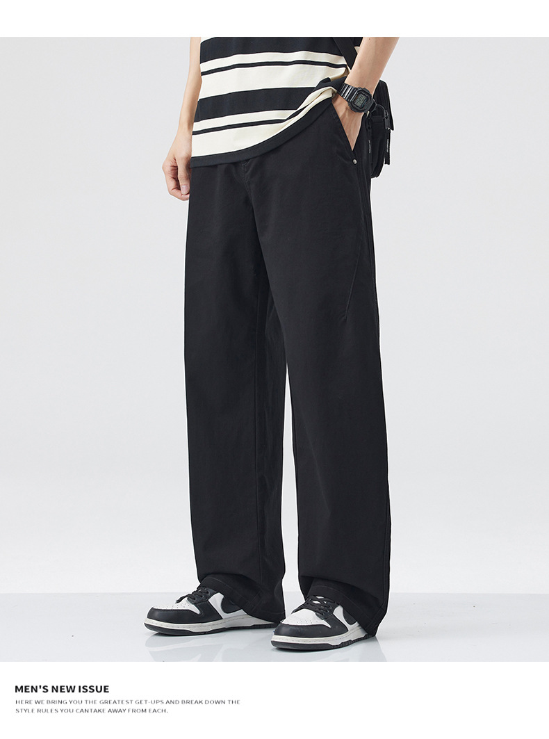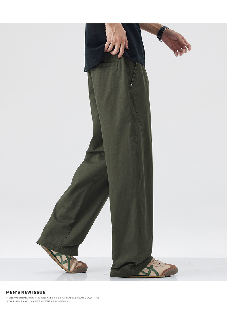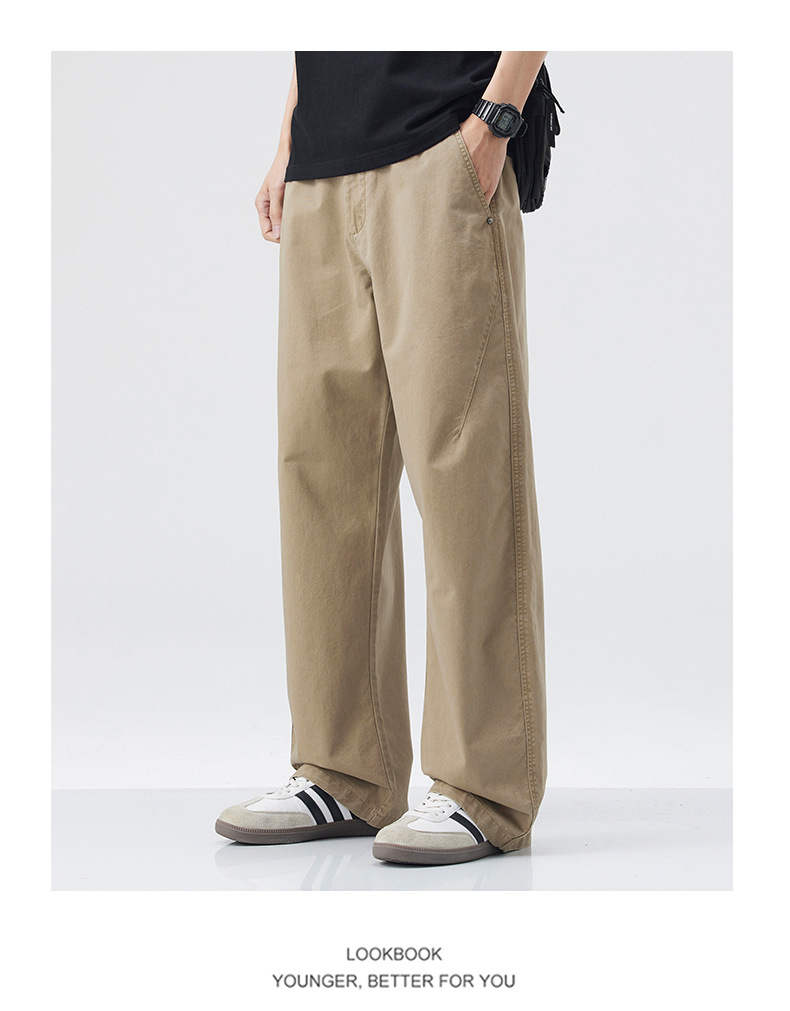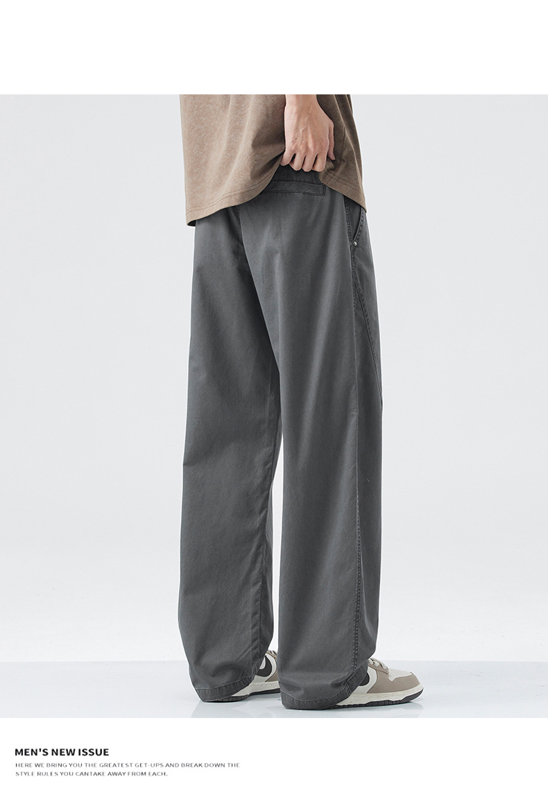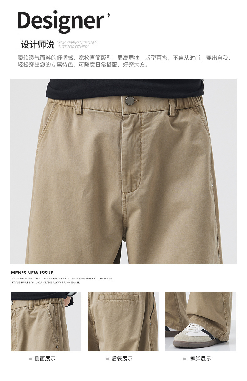 남성용 캐주얼 바지 2025 새로운 루즈 코튼 와이드 레그 바지 작업복 트렌디 브랜드 여름 남성용 얇은 스트레이트 바지스토어 가기