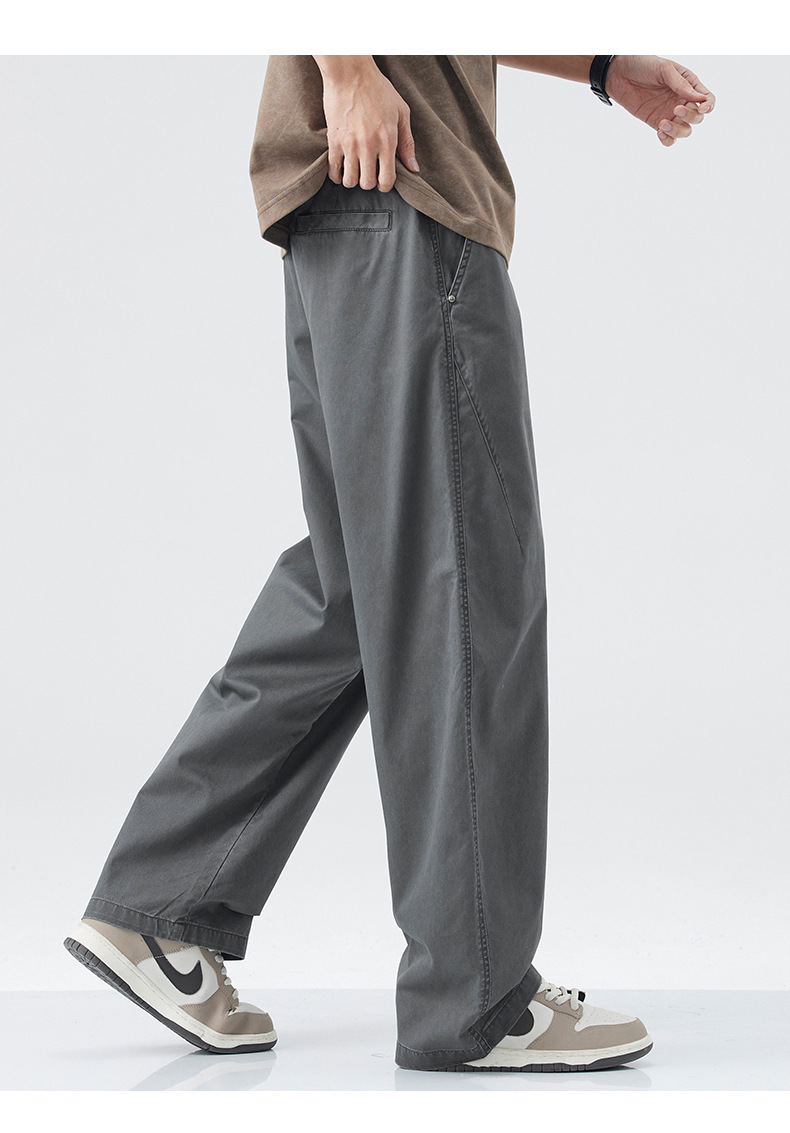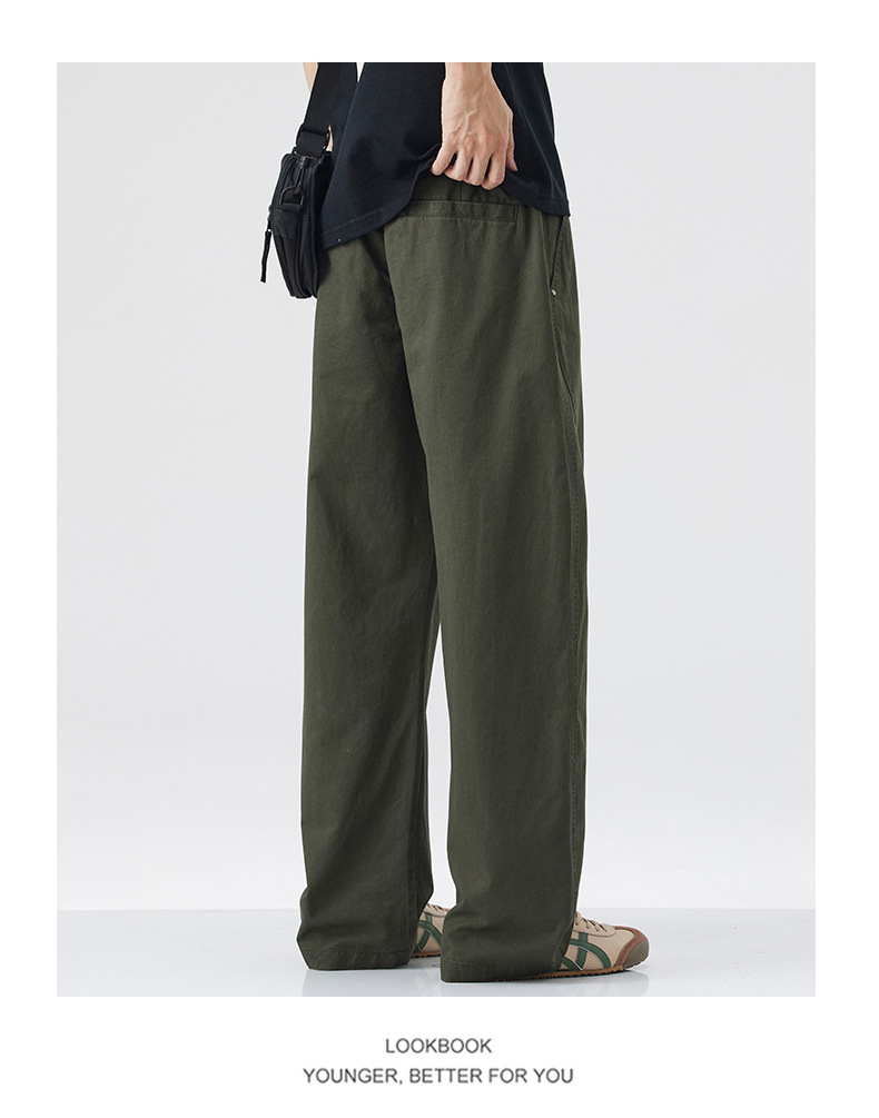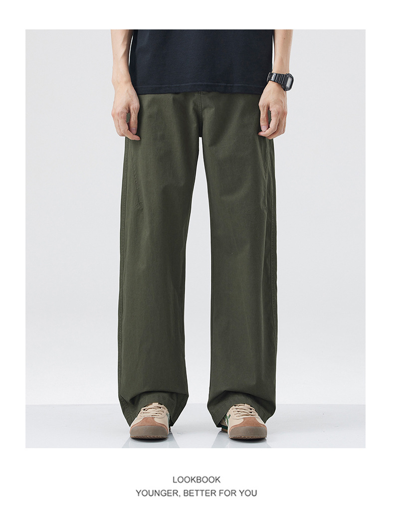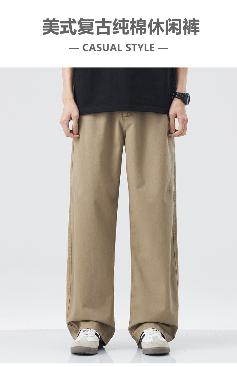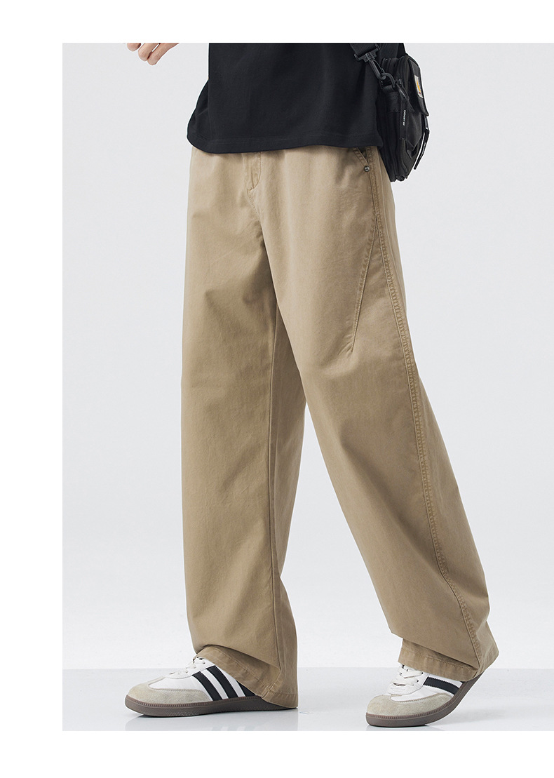 남성용 캐주얼 바지 2025 새로운 루즈 코튼 와이드 레그 바지 작업복 트렌디 브랜드 여름 남성용 얇은 스트레이트 바지스토어 가기