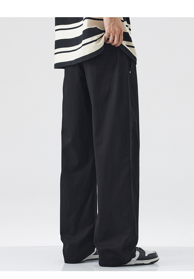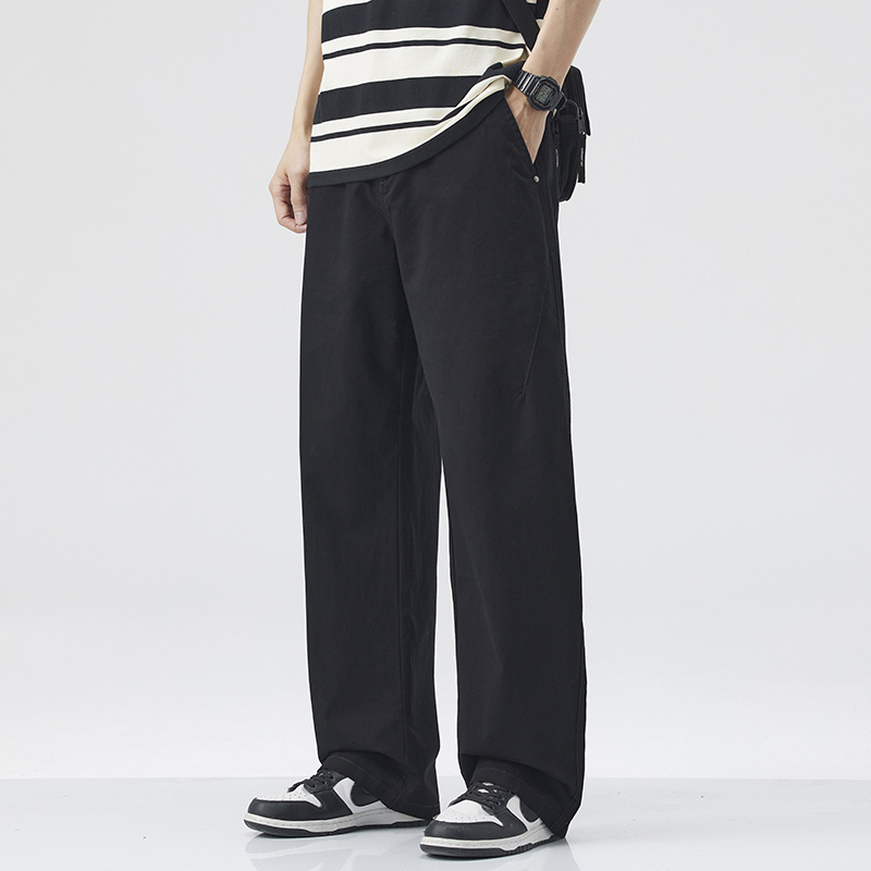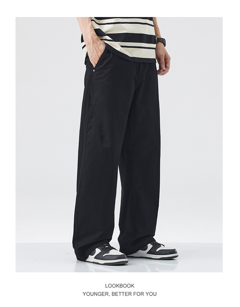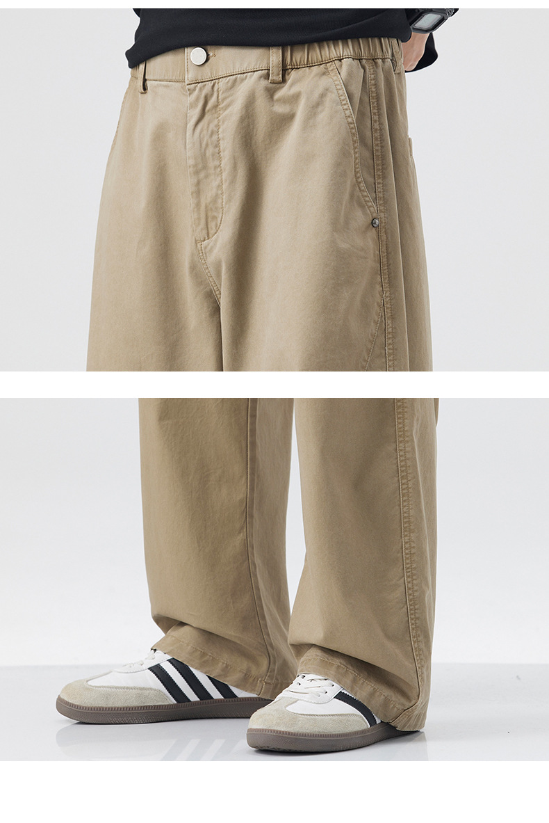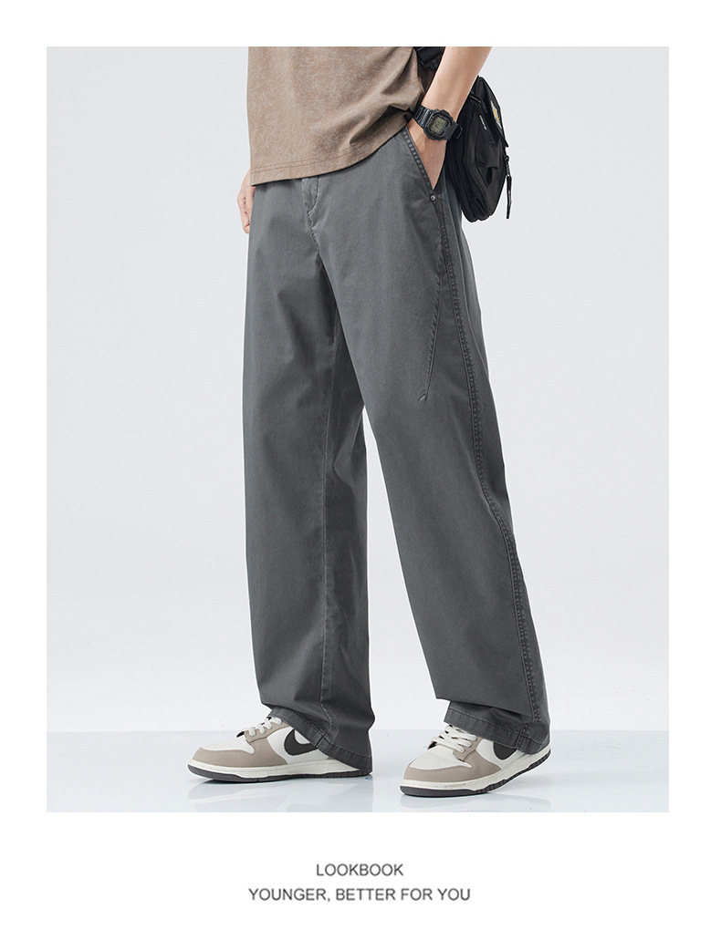 남성용 캐주얼 바지 2025 새로운 루즈 코튼 와이드 레그 바지 작업복 트렌디 브랜드 여름 남성용 얇은 스트레이트 바지스토어 가기