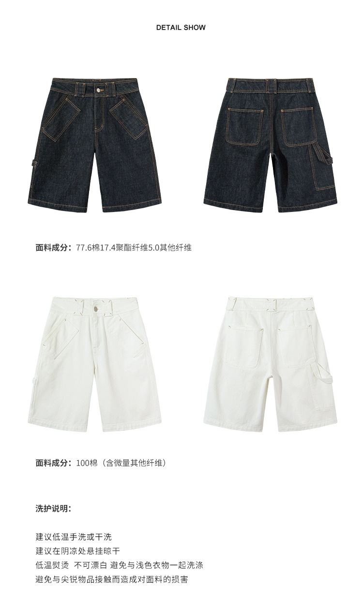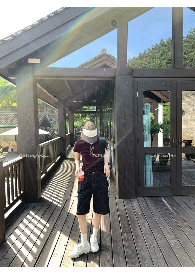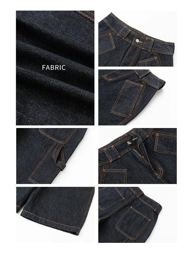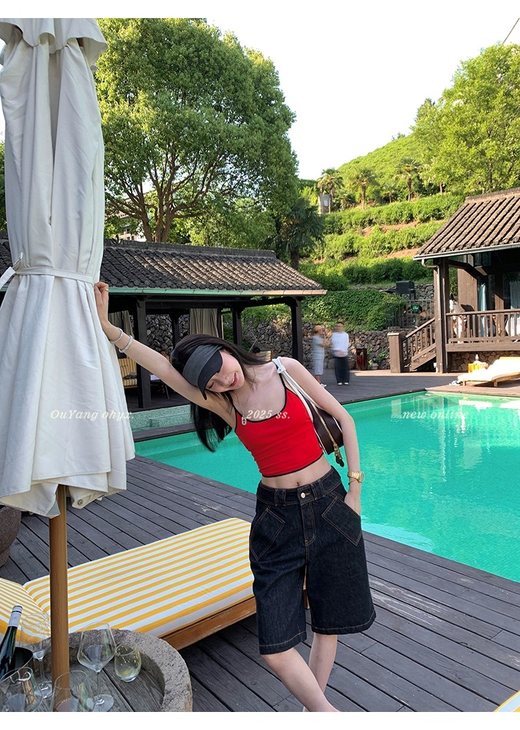 Ouyang 대비 컬러 데님 반바지 여성 여름 얇은 루즈 스트레이트 5부 바지 하이 웨이스트 슬리밍 복고풍 바지스토어 가기