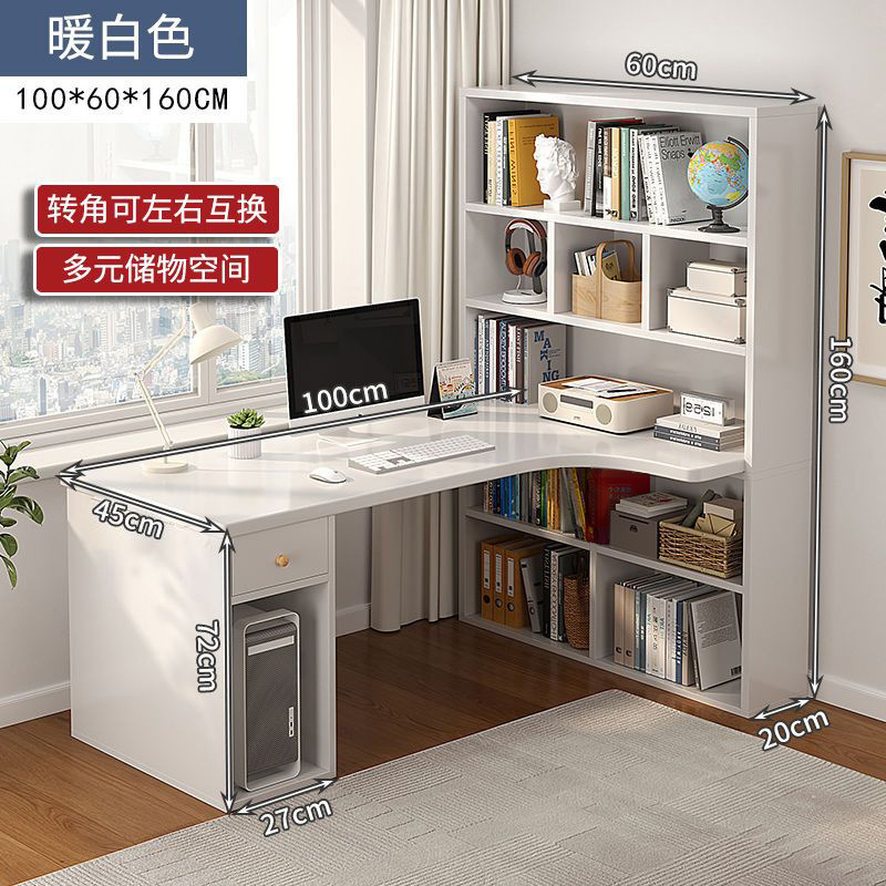 학생 홈 코너 책상 책장 통합 테이블 침실 간단한 학습 책상 책장이있는 더블 컴퓨터 책상스토어 가기