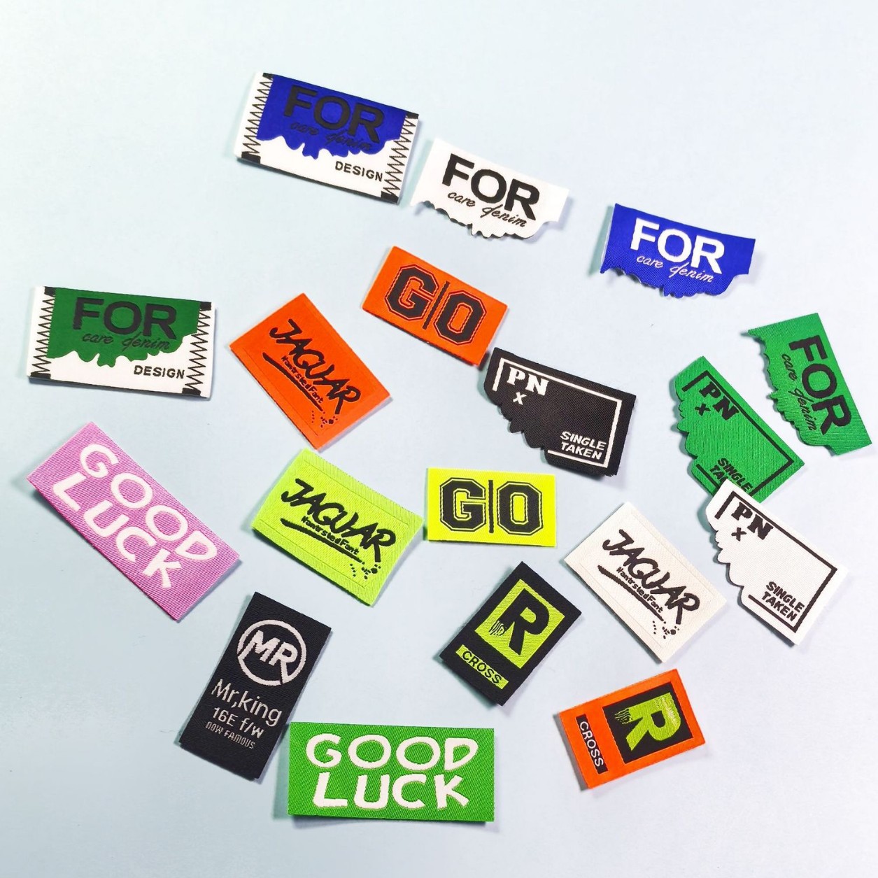 도파민 컬러 원사 염색 라벨, 직조 라벨, 천 라벨, 칼라 라벨, 맞춤형 공장 직조 라벨, 워시 라벨 및 라벨 디자인