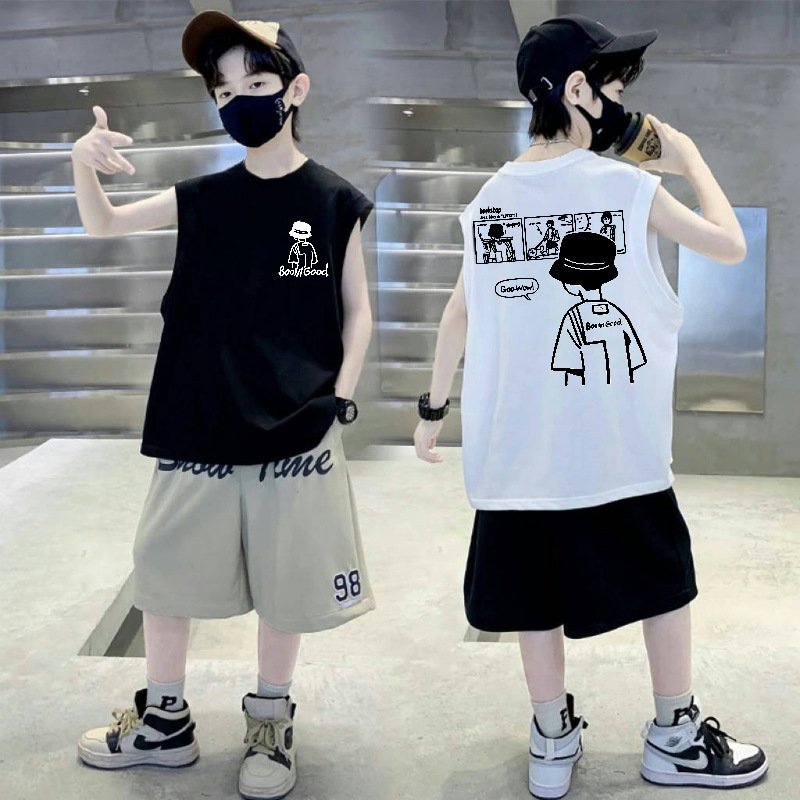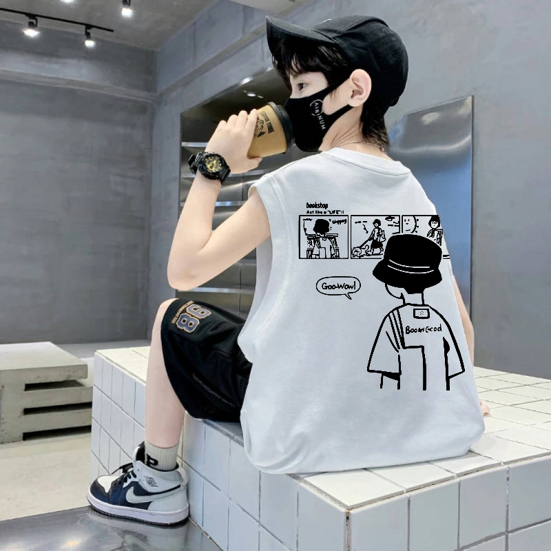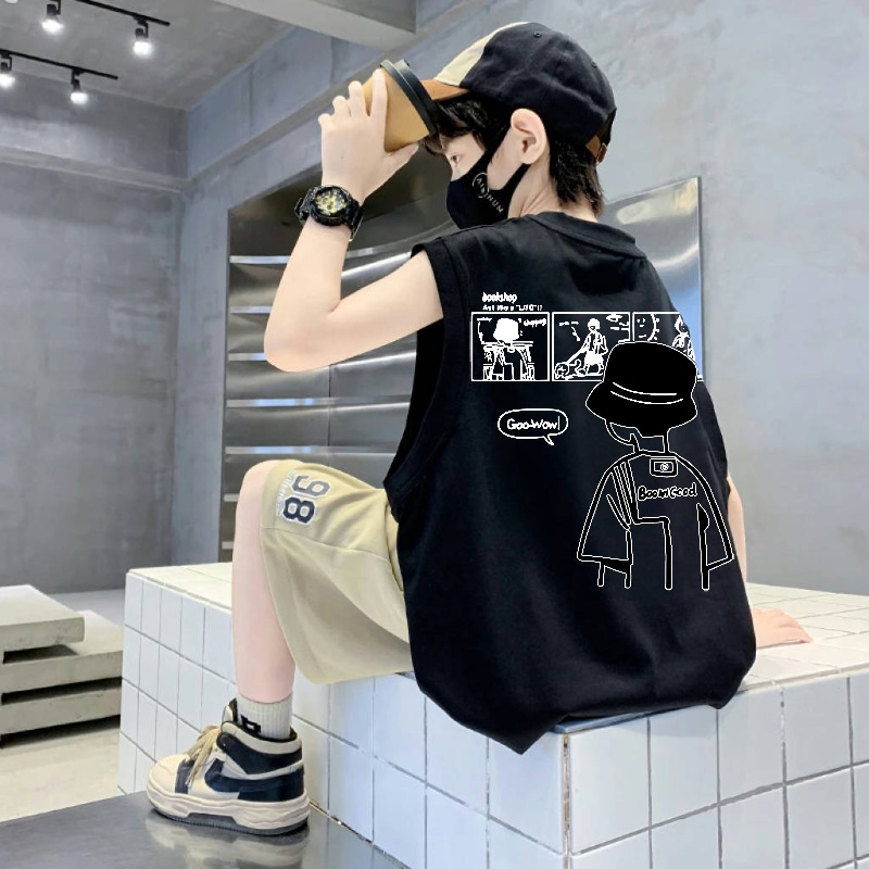 소년 순면 조끼 여름 새로운 스타일 중대형 어린이 유행 멋진 스포츠 소년 민소매 티셔츠 어린이 캐주얼 다목적 유행스토어 가기
