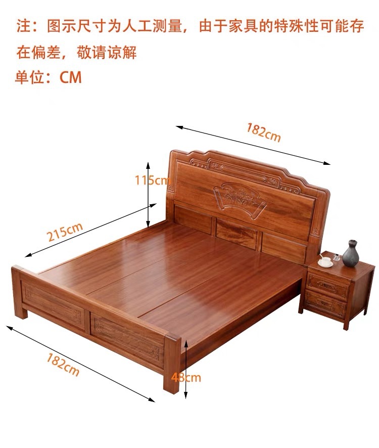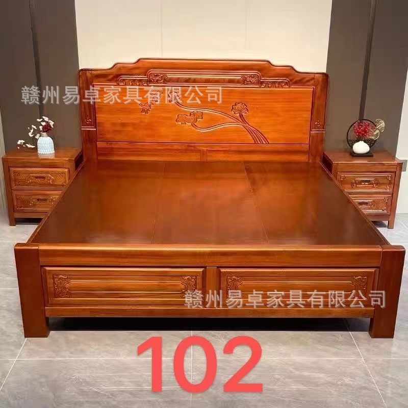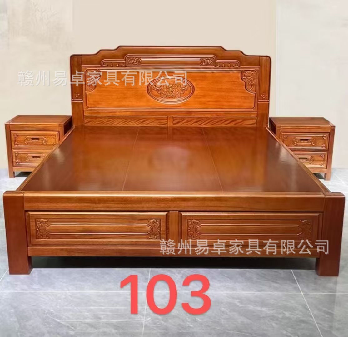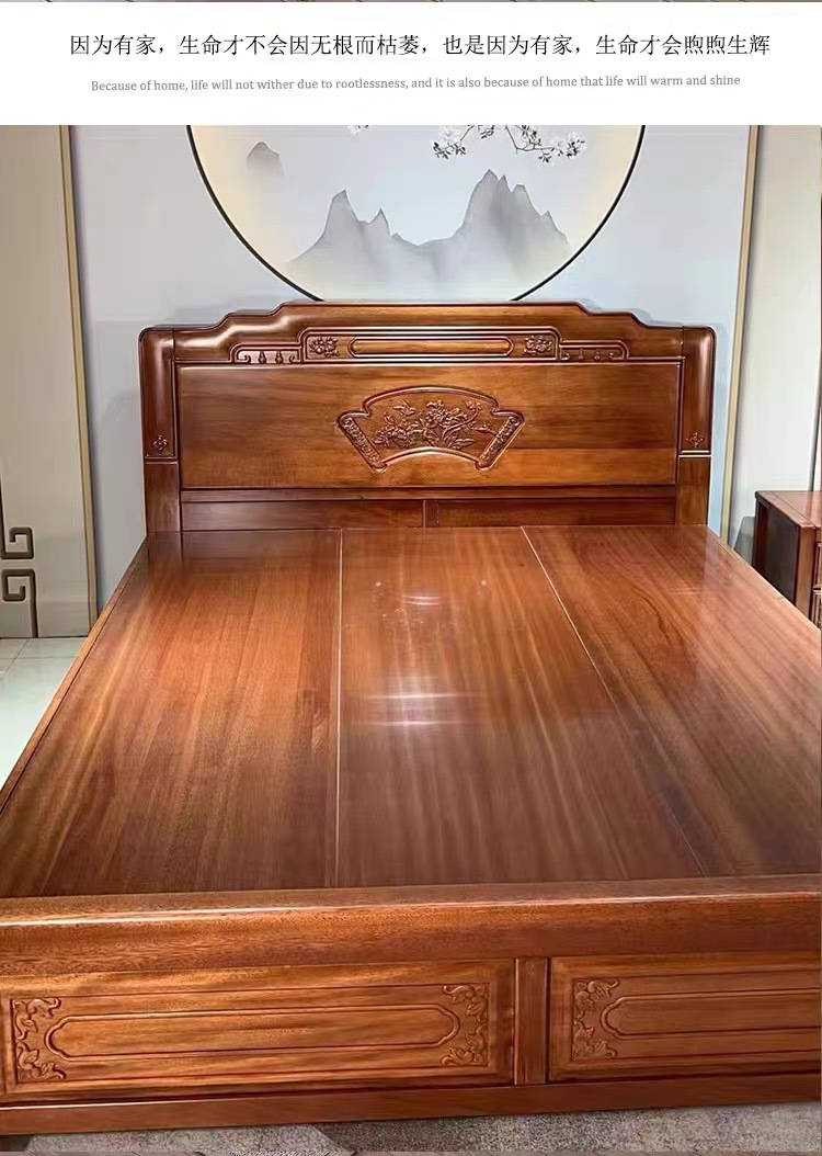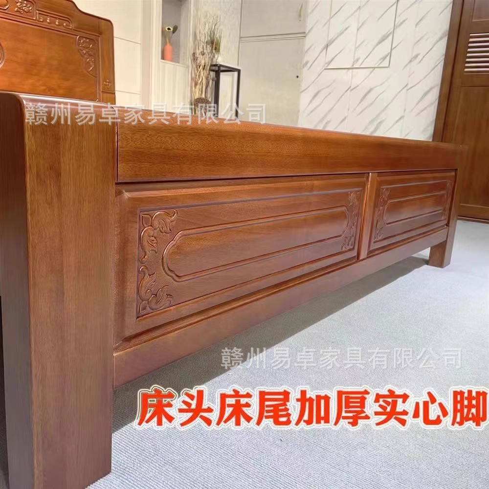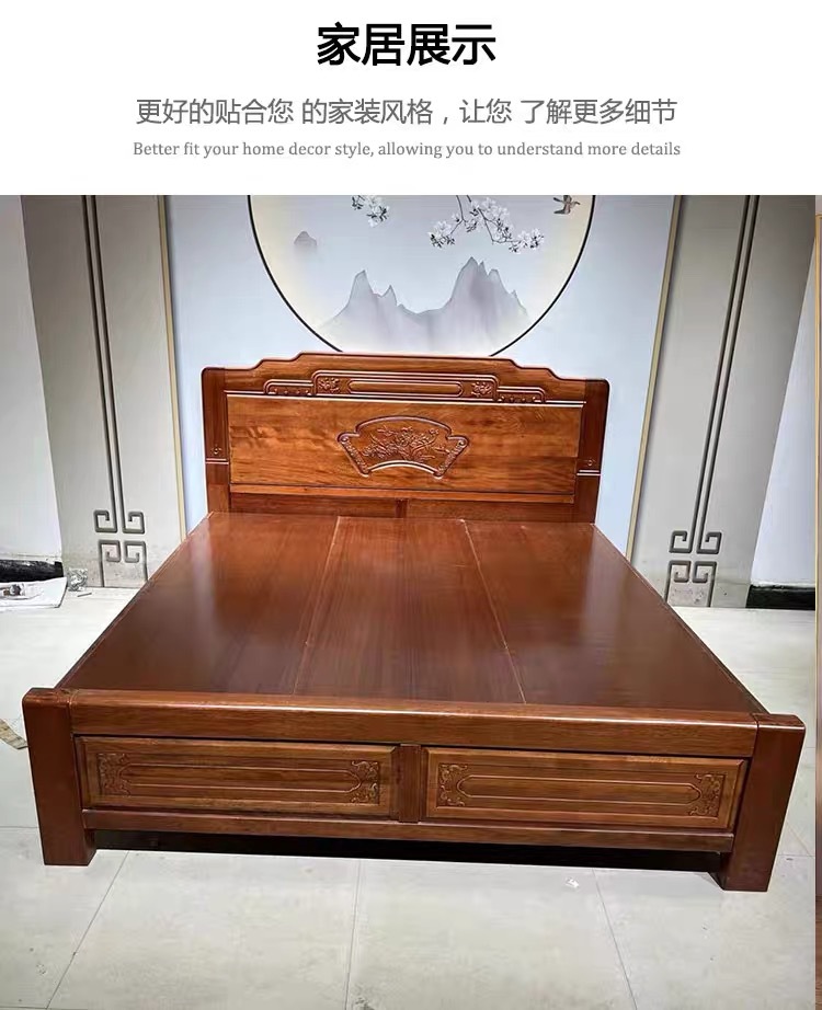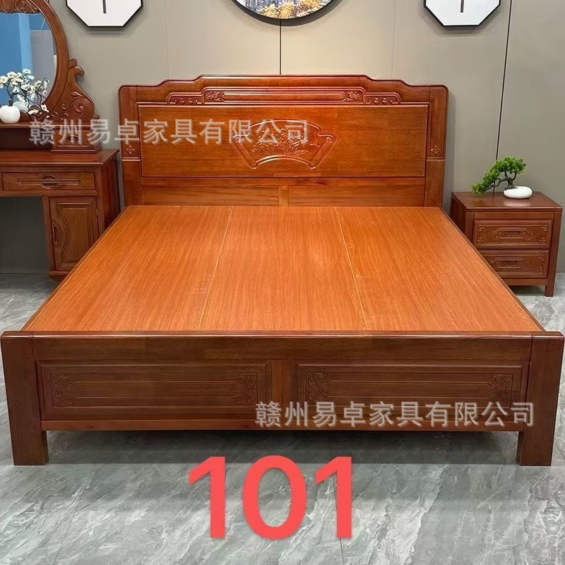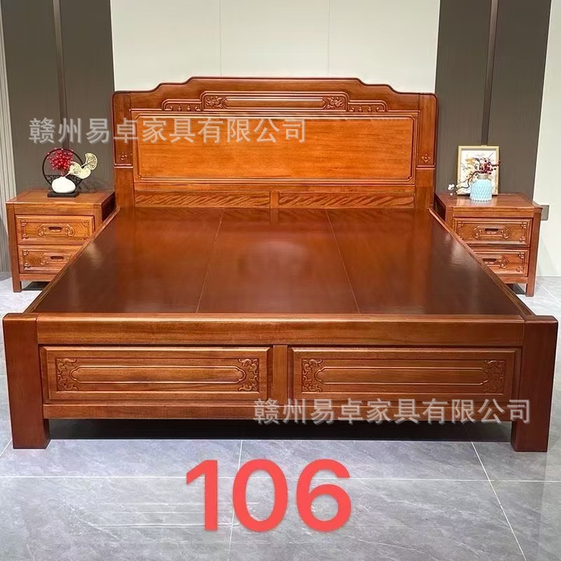 중국식 로즈우드 원목 침대, 마스터 침실 웨딩 침대, 더블 침대, 앤티크 조각, 전체 모따기 공예, 1.8m 대형 침대스토어 가기