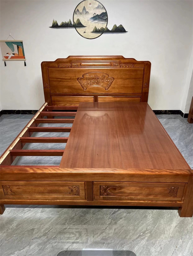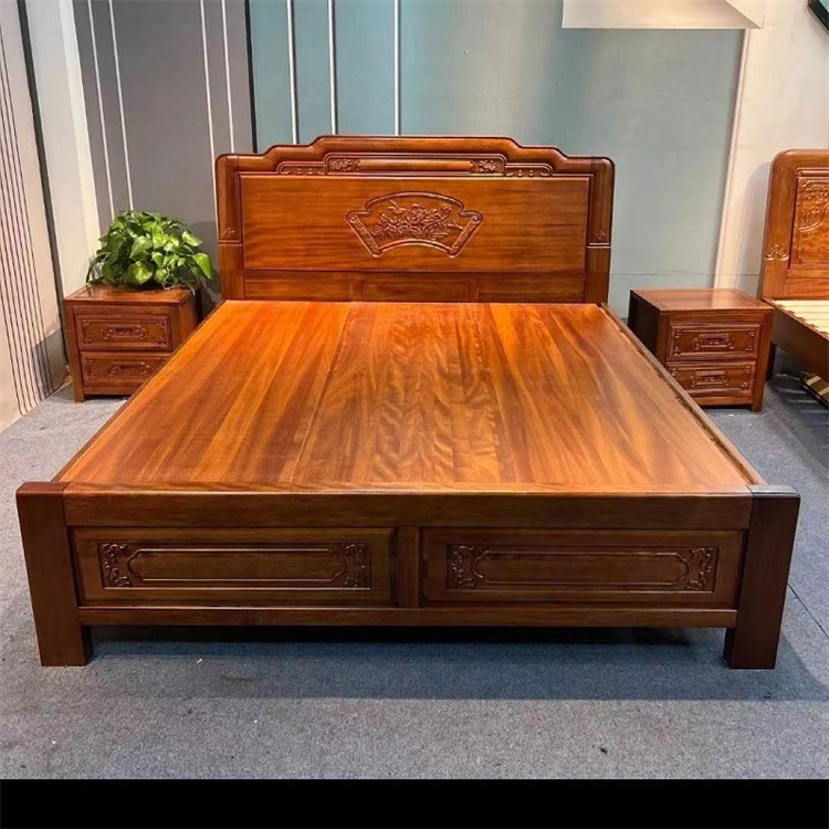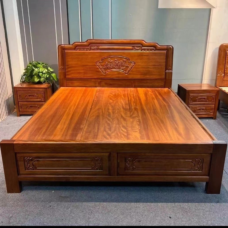 중국식 로즈우드 원목 침대, 마스터 침실 웨딩 침대, 더블 침대, 앤티크 조각, 전체 모따기 공예, 1.8m 대형 침대