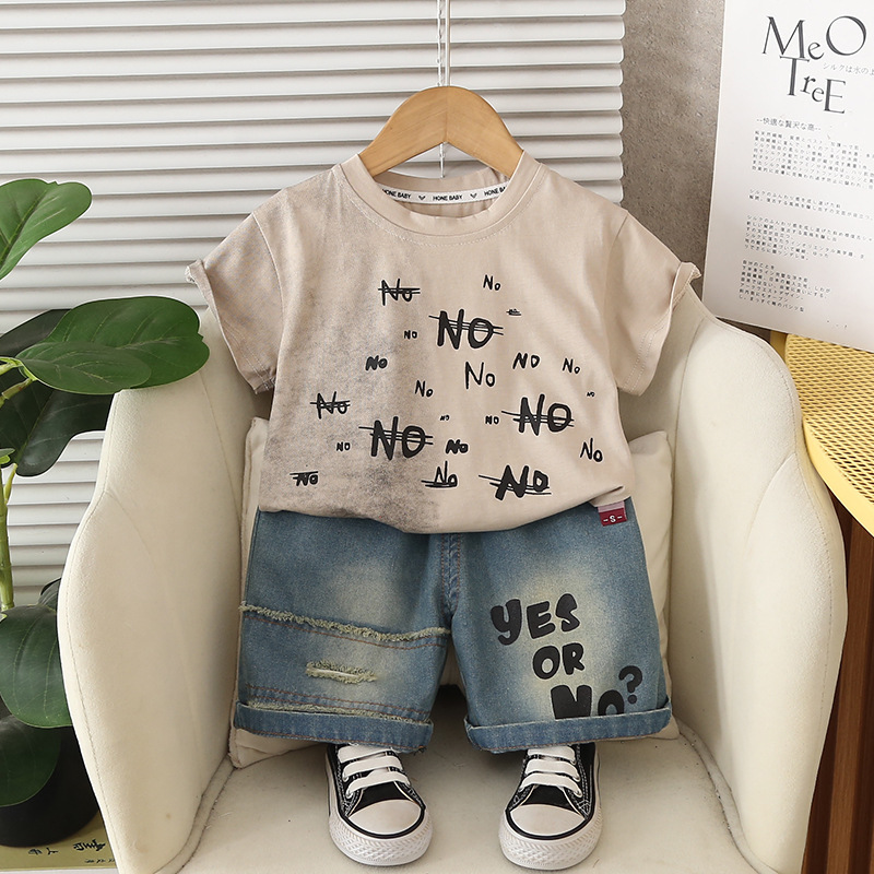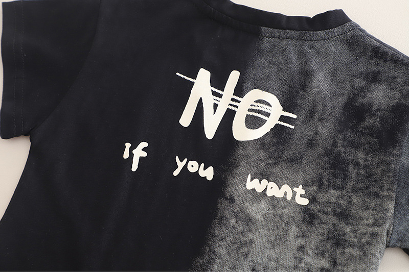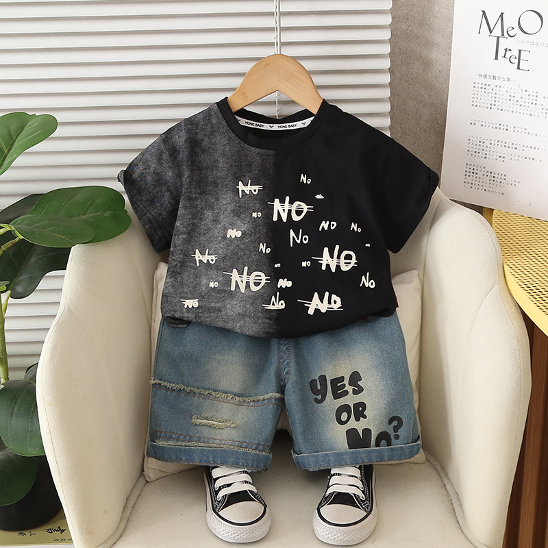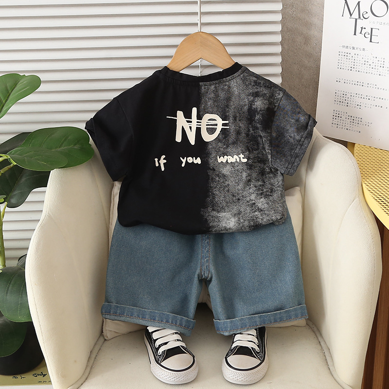 소년 여름 정장 2025 새로운 아기 한국어 스타일 문자 색상 일치하는 반팔 옷 아기 소년 투피스 유행 세트