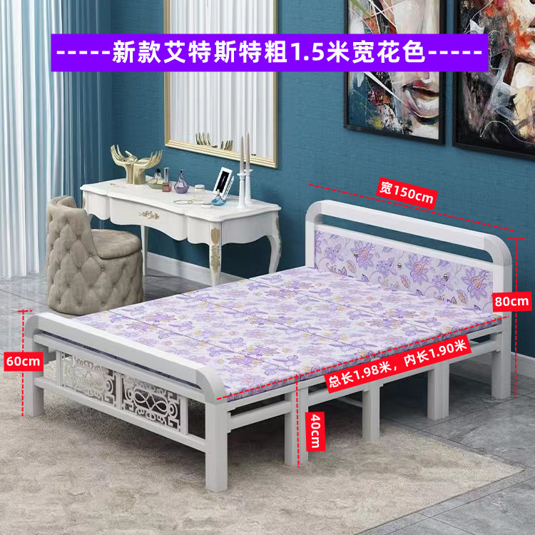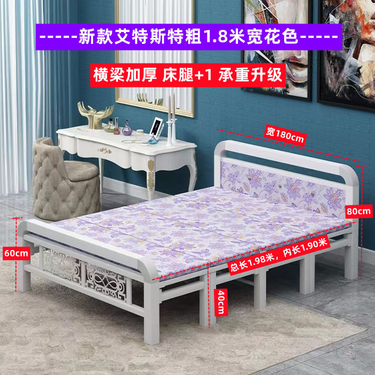 접이식 침대 점심 휴식 싱글 침대 1.5m 더블 침대 임대 주택 간이 침대 성인 가정용 철제 침대 낮잠 단단한 침대
