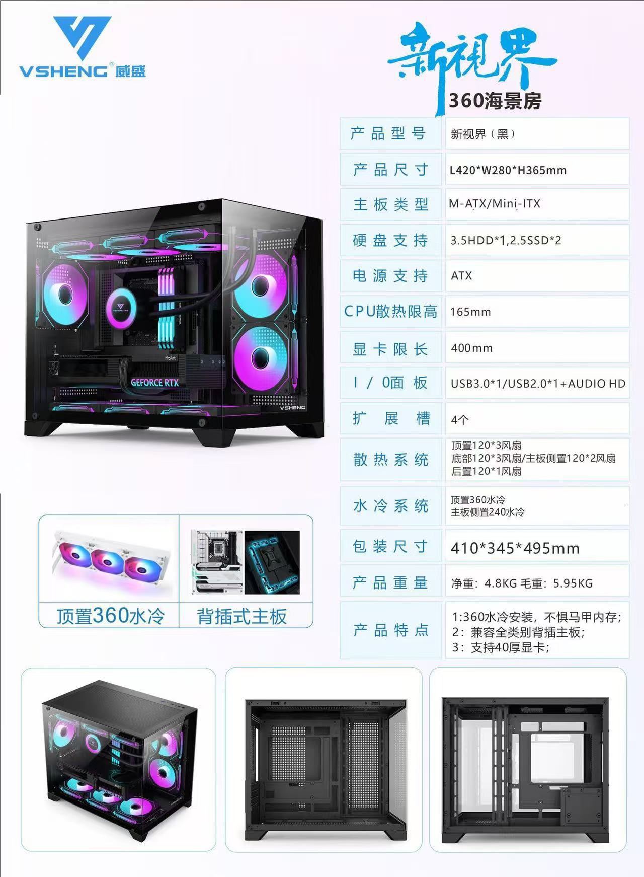 기둥 없는 파노라마 바다 전망 룸 M-ATX 컴퓨터 케이스 데스크탑 240 케이스 완전 투명 케이스 수냉 케이스스토어 가기