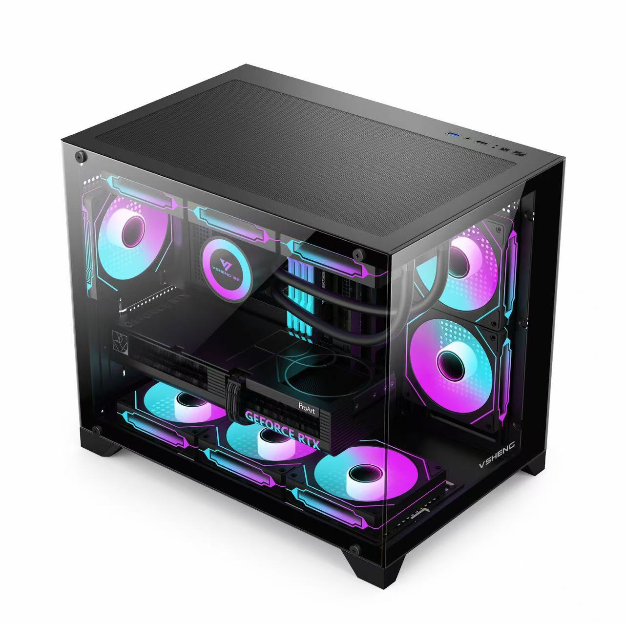 기둥 없는 파노라마 바다 전망 룸 M-ATX 컴퓨터 케이스 데스크탑 240 케이스 완전 투명 케이스 수냉 케이스