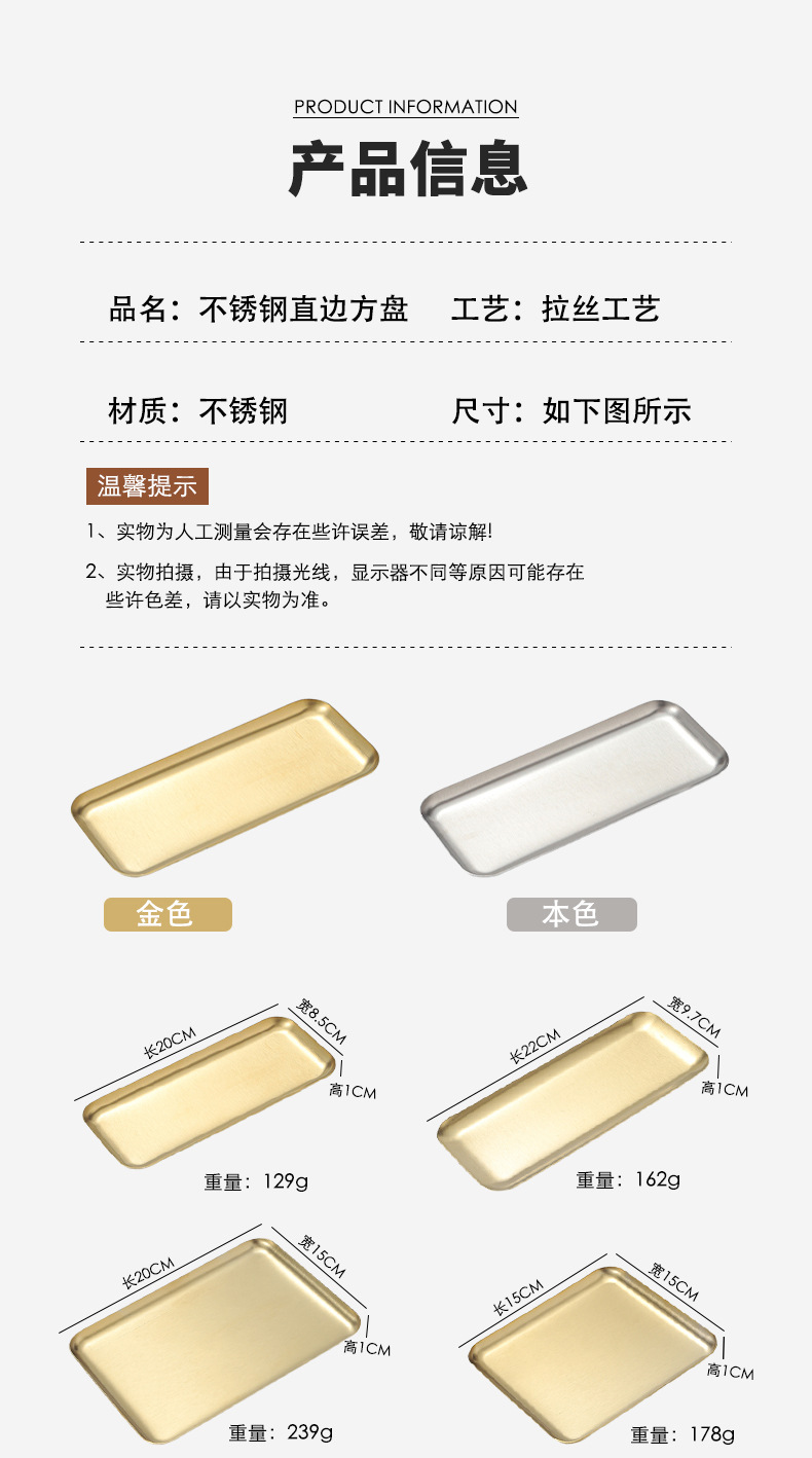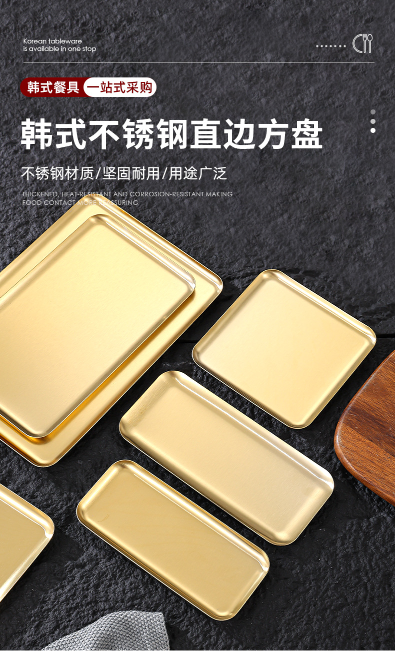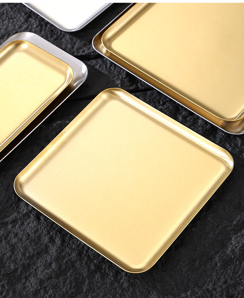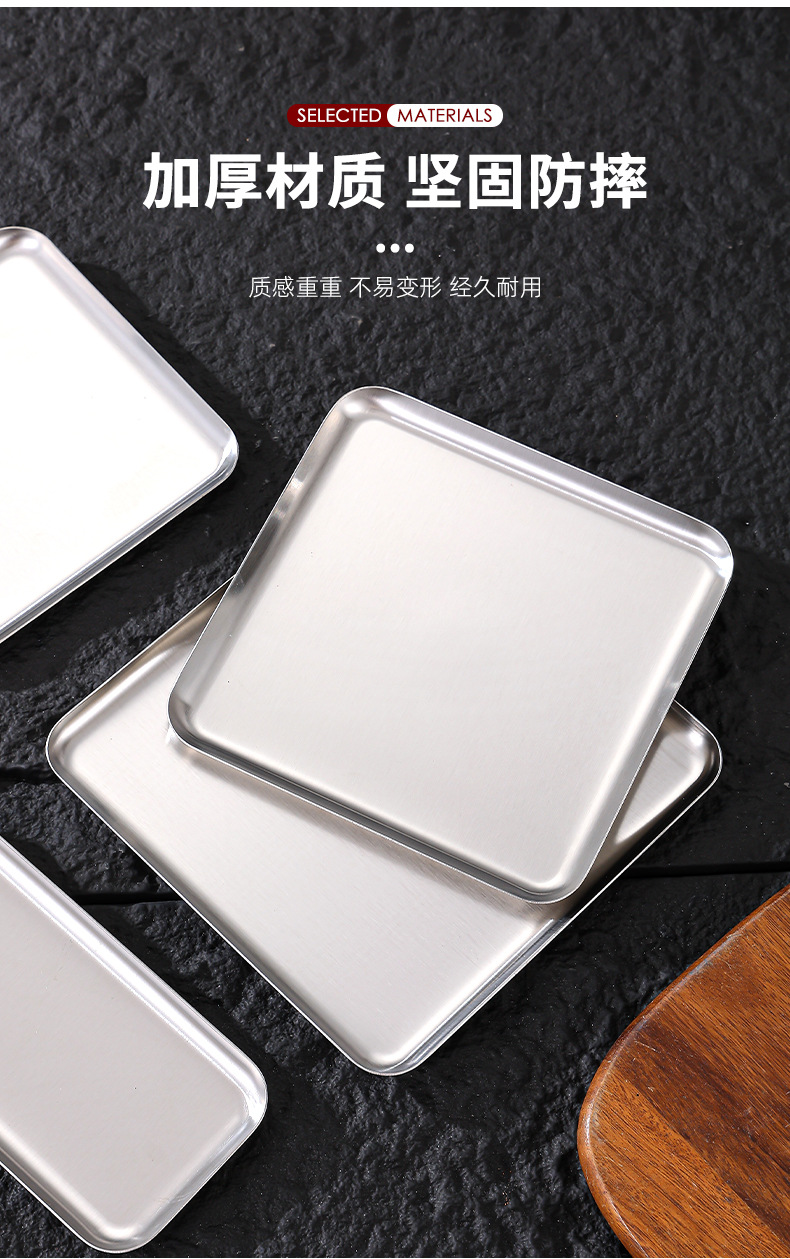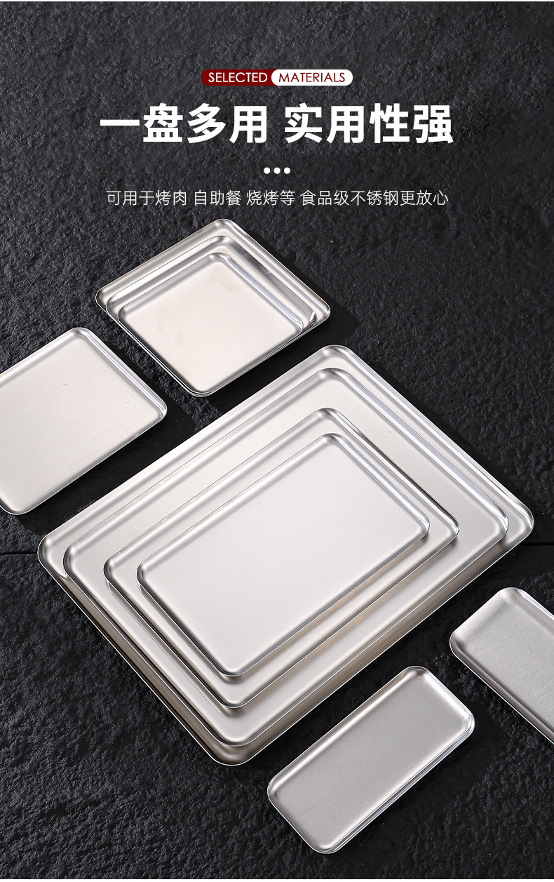 스테인레스 스틸 직사각형 접시 커피 트레이 스낵 케이크 디저트 접시 바베큐 서빙 접시 바베큐 얕은 접시 사용자 정의 패턴스토어 가기