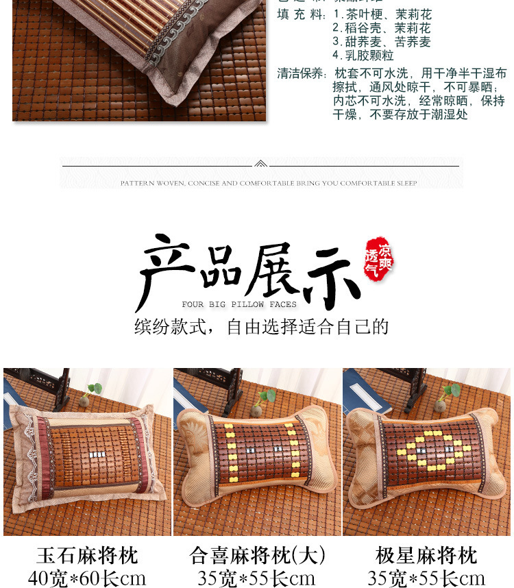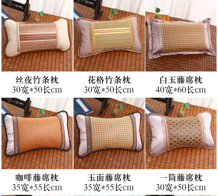 여름 차 대나무 매트 베개 싱글 하드 베개 여름 성인 마작 얼음 실크 등나무 멋진 기숙사 학생 베개스토어 가기