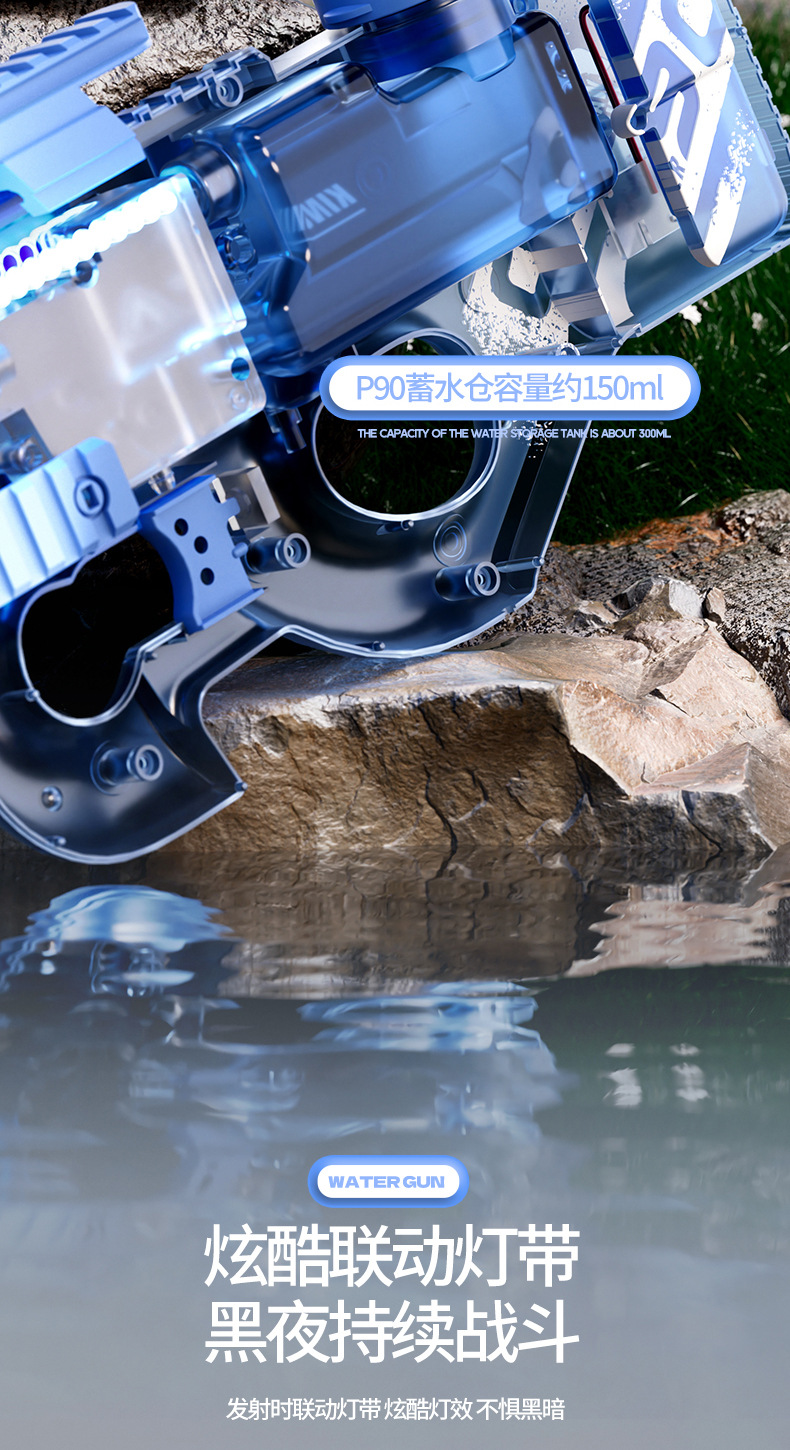 고속 P90 전기 물총 연속 AUG 물총 대용량 물총 빛 소년 여름 물 장난감